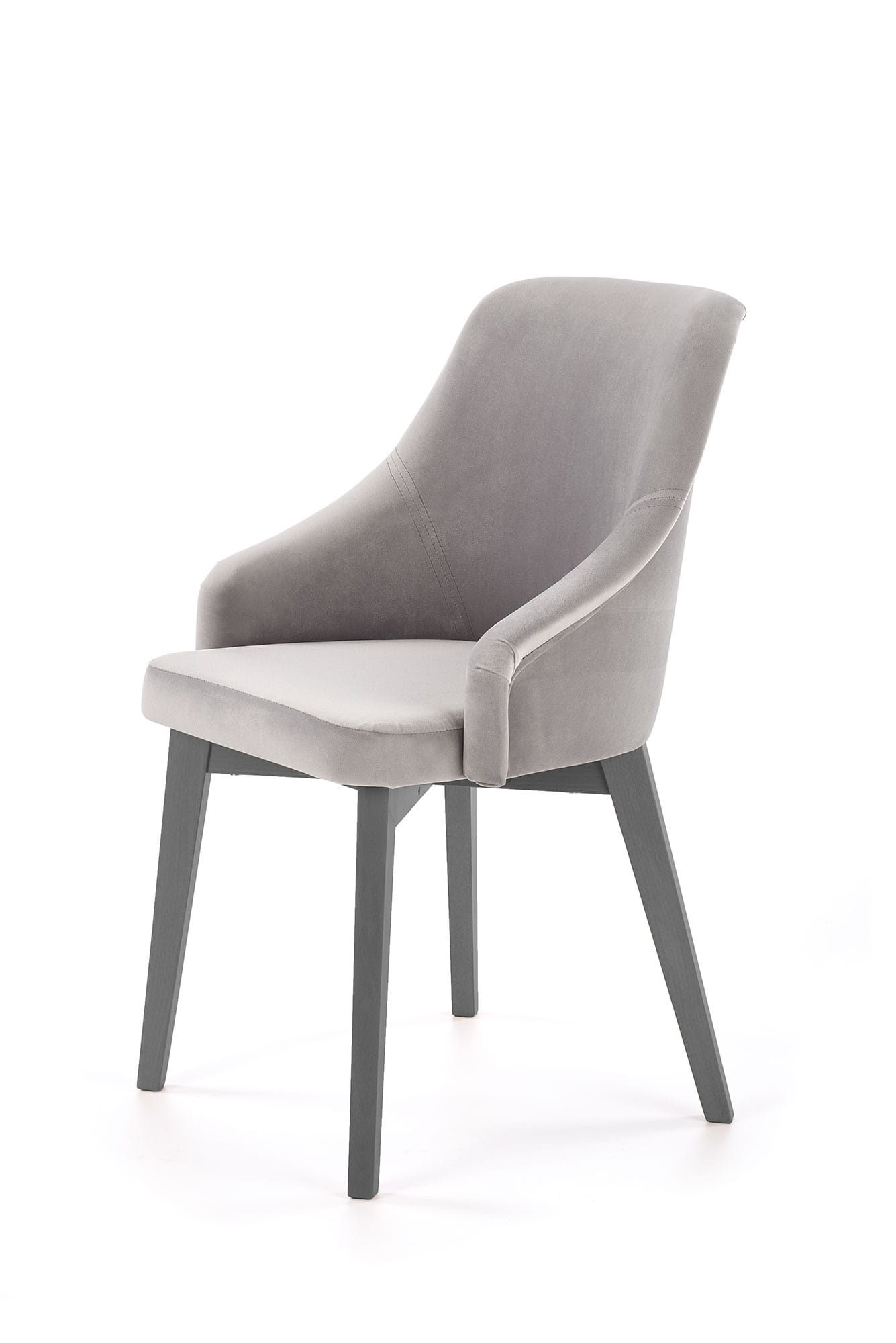 Krzesło tapicerowane TOLEDO 2 to elegancki wybór dla osób ceniących komfort, trwałość i ponadczasowy wygląd. Klasyczna forma połączona z nowoczesną tapicerką z miękkiej tkaniny velvet tworzy stylowy mebel, który idealnie wpasuje się w wiele aranżacji. Solidna drewniana konstrukcja w odcieniu grafitowym nadaje mu stabilności i szyku.