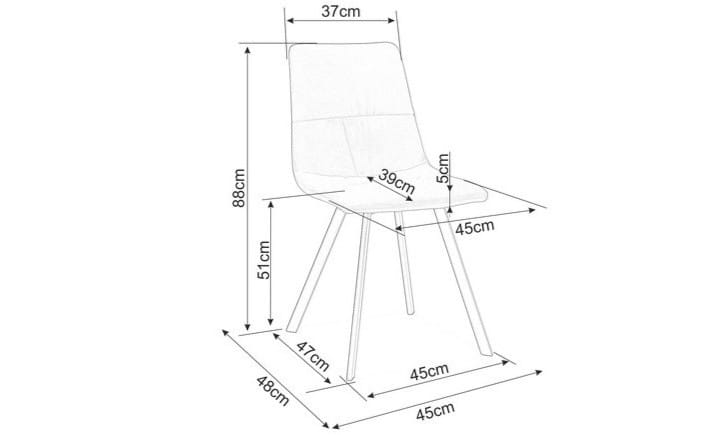 TOLEDO to kompaktowe krzesło welurowe w modnym, brązowym odcieniu. Miękka tkanina velvet Bluvel 48 łączy się tu z lekkim, a zarazem stabilnym metalowym stelażem w kolorze czarnym, a ergonomiczne wymiary zapewniają wygodę przy codziennym użytkowaniu. Neutralna, ciepła kolorystyka ułatwia stylizację przy stołach drewnianych i laminowanych, a smukła forma sprawia, że to idealne krzesło do małej jadalni i kuchni.