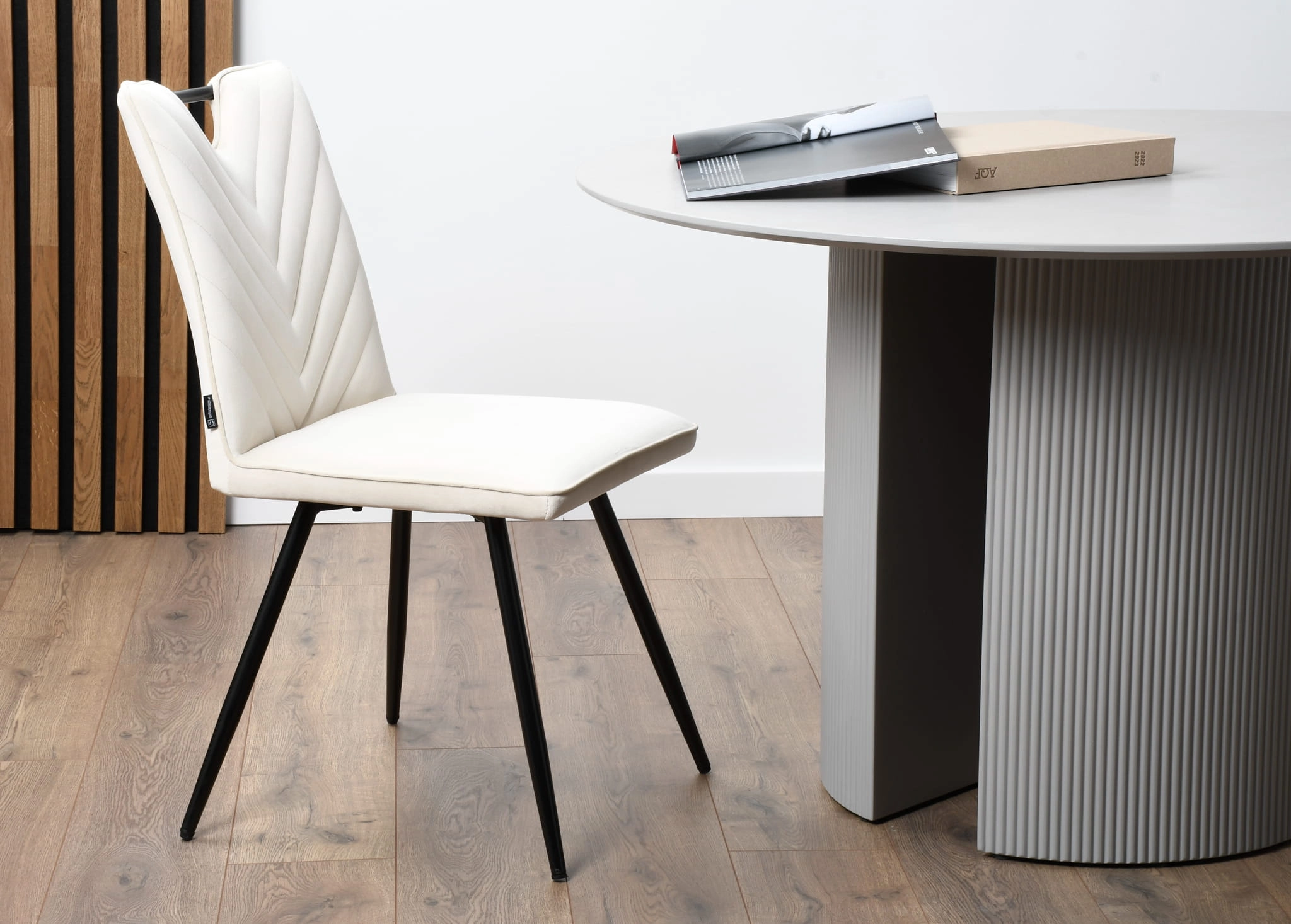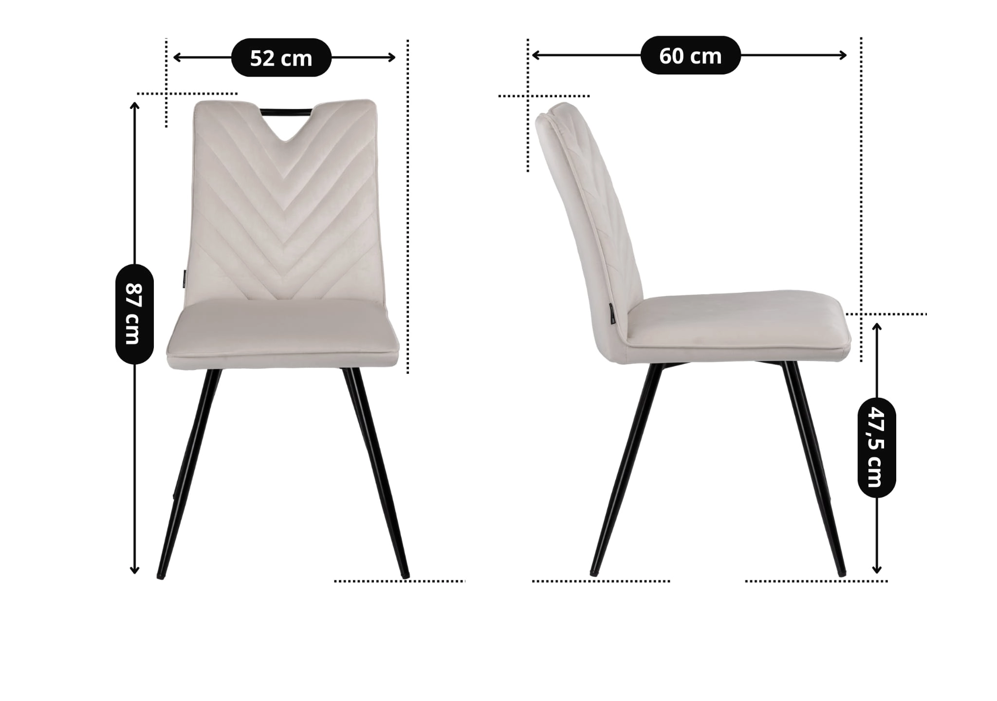 Dzięki uniwersalnemu beżowemu kolorowi oraz prostym, a zarazem eleganckim liniom, krzesło z łatwością wkomponuje się zarówno w nowoczesne, jak i glamour czy minimalistyczne aranżacje. Solidny metalowy stelaż w czarnym kolorze gwarantuje stabilność, a przemyślane detale – takie jak uchwyt w oparciu – zwiększają codzienną funkcjonalność.
