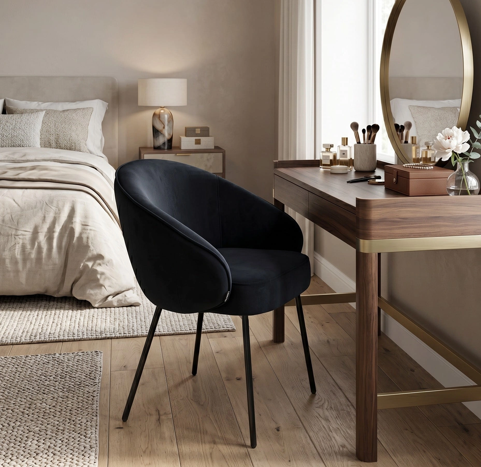 Krzesło tapicerowane OTILO to doskonałe połączenie nowoczesnej estetyki, komfortu i jakości wykonania. Czarny welur w połączeniu z czarnymi, metalowymi nogami tworzy ponadczasowy mebel, który wzbogaci każde wnętrze. To nie tylko piękny dodatek, ale przede wszystkim wygodne i funkcjonalne krzesło, idealne zarówno do codziennego użytku, jak i do eleganckich aranżacji przestrzeni.