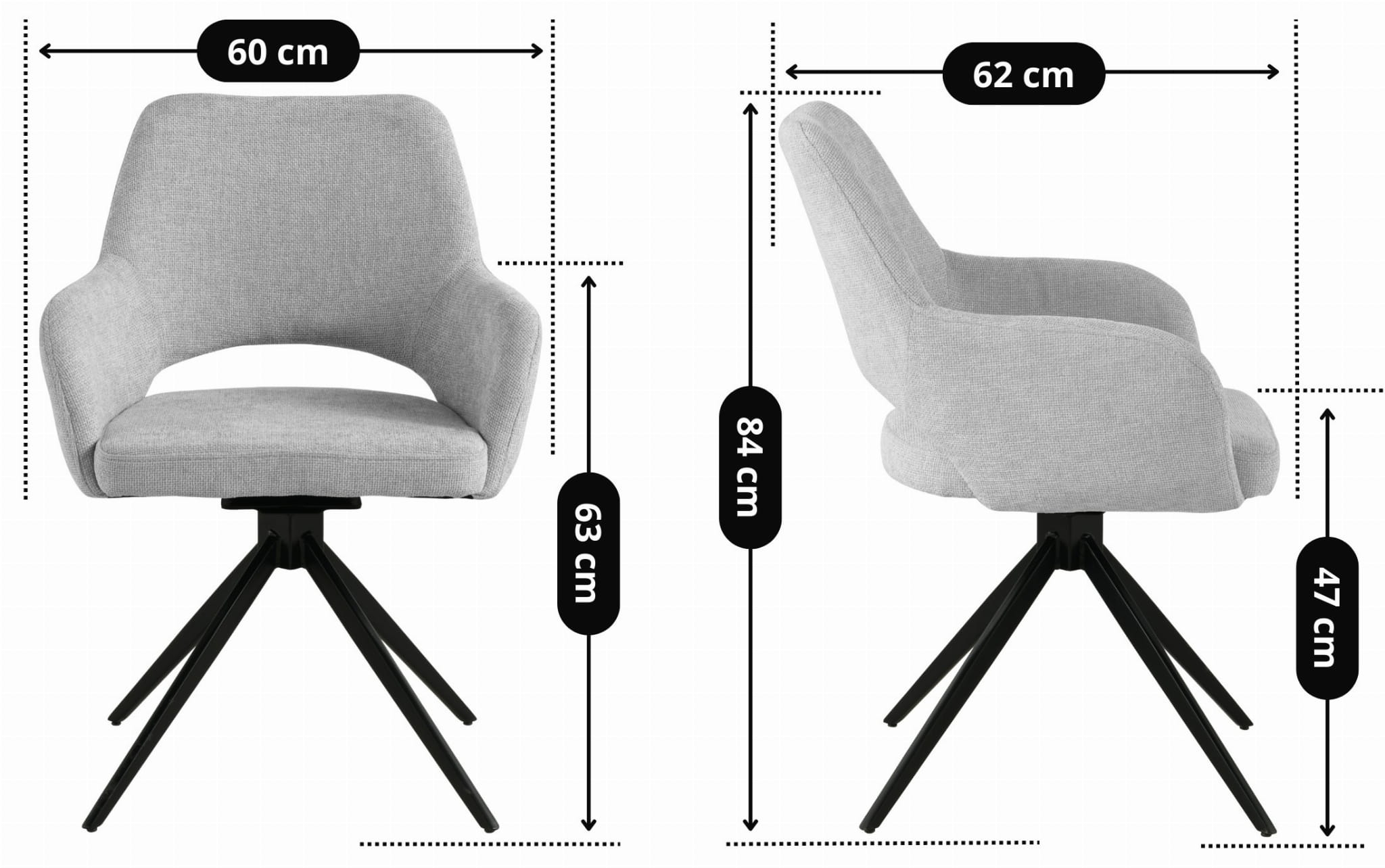 Stylowe krzesło tapicerowane ERIM to propozycja dla osób, które cenią sobie wygodę, estetykę i funkcjonalność. Tapicerowane miękką tkaniną i osadzone na stabilnym metalowym stelażu w kolorze czarnym, doskonale sprawdzi się zarówno w nowoczesnym salonie, jak i w eleganckim biurze. Dzięki mechanizmowi obrotowemu 360° możesz swobodnie się przemieszczać bez konieczności przesuwania mebla. To doskonałe rozwiązanie dla osób, które chcą łączyć komfort z nowoczesnym designem.