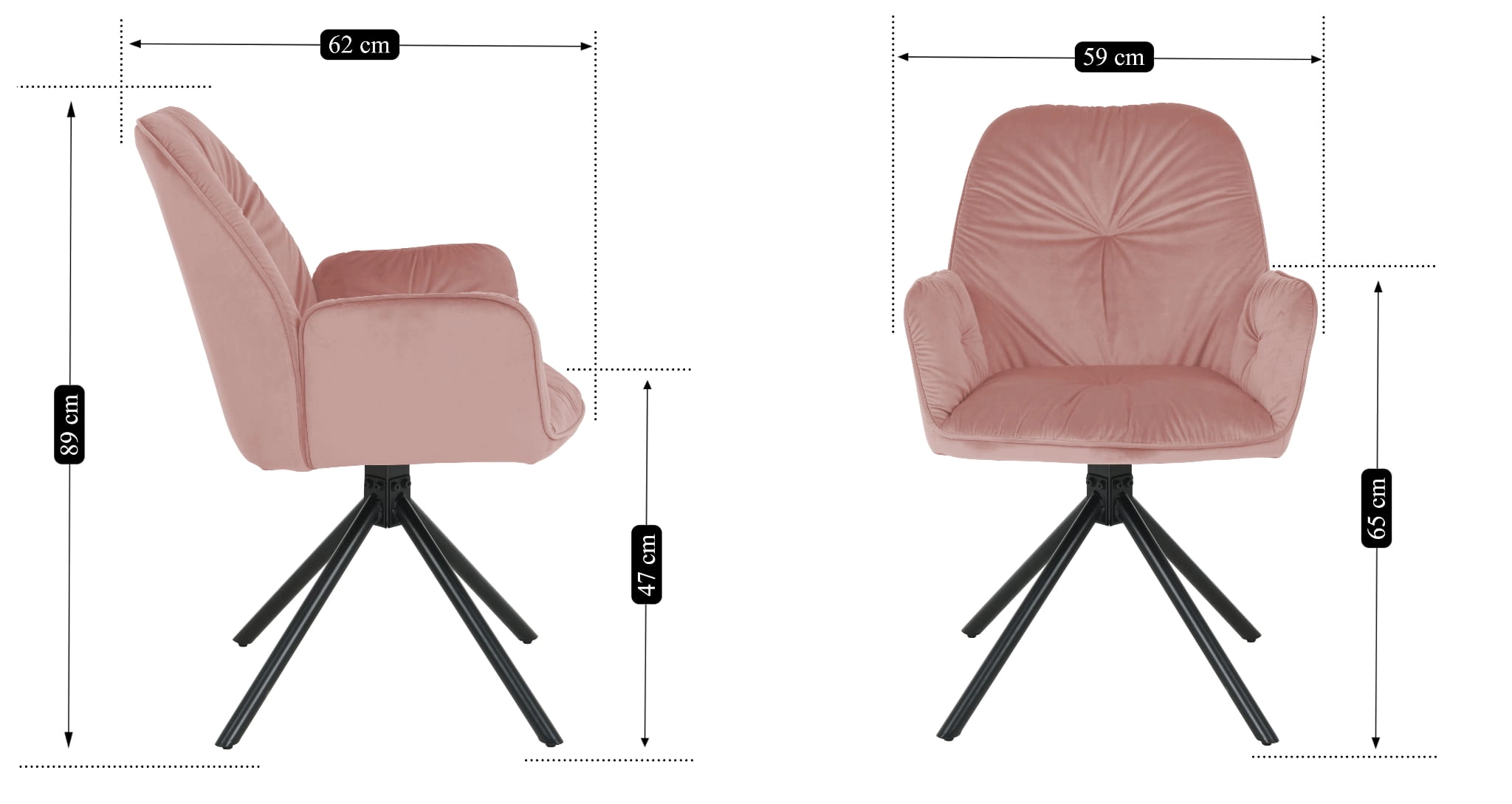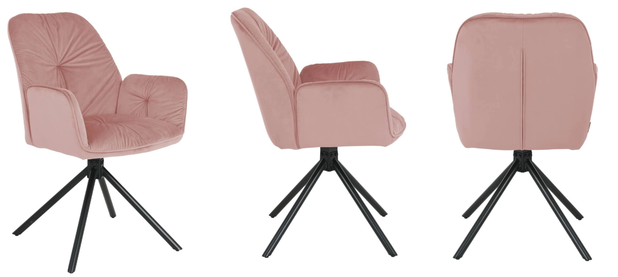 Krzesło tapicerowane KOEN to idealna propozycja dla tych, którzy poszukują wygodnego, a jednocześnie stylowego krzesła do nowoczesnego wnętrza. Różowa welurowa tapicerka wnosi do aranżacji nutę luksusu i subtelnej elegancji, a czarne metalowe nogi dodają mu charakteru.
