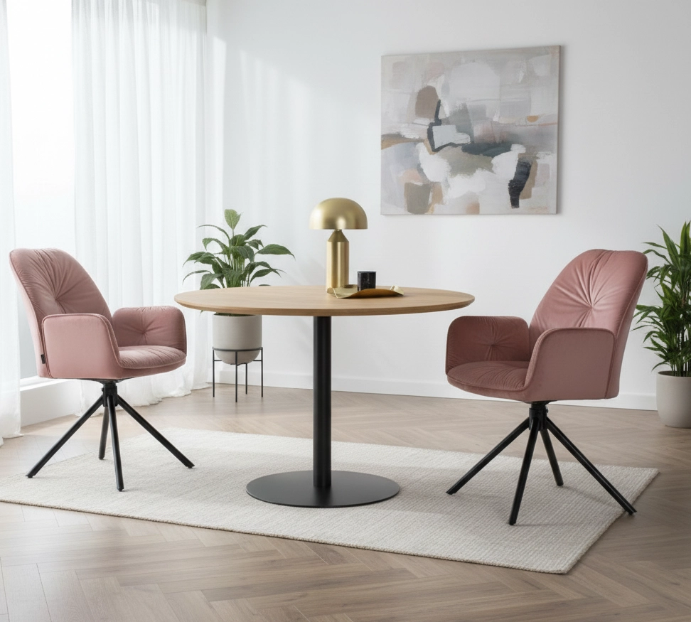 Dzięki mechanizmowi obrotowemu 360° możesz swobodnie obracać się w każdą stronę – to idealna funkcjonalność nie tylko przy stole, ale też przy toaletce czy w biurze. Miękkie siedzisko i ergonomicznie wyprofilowane oparcie zapewniają wygodę nawet przy wielogodzinnym użytkowaniu. Podłokietniki wspierają ramiona, a solidna konstrukcja z metalu gwarantuje stabilność i bezpieczeństwo.