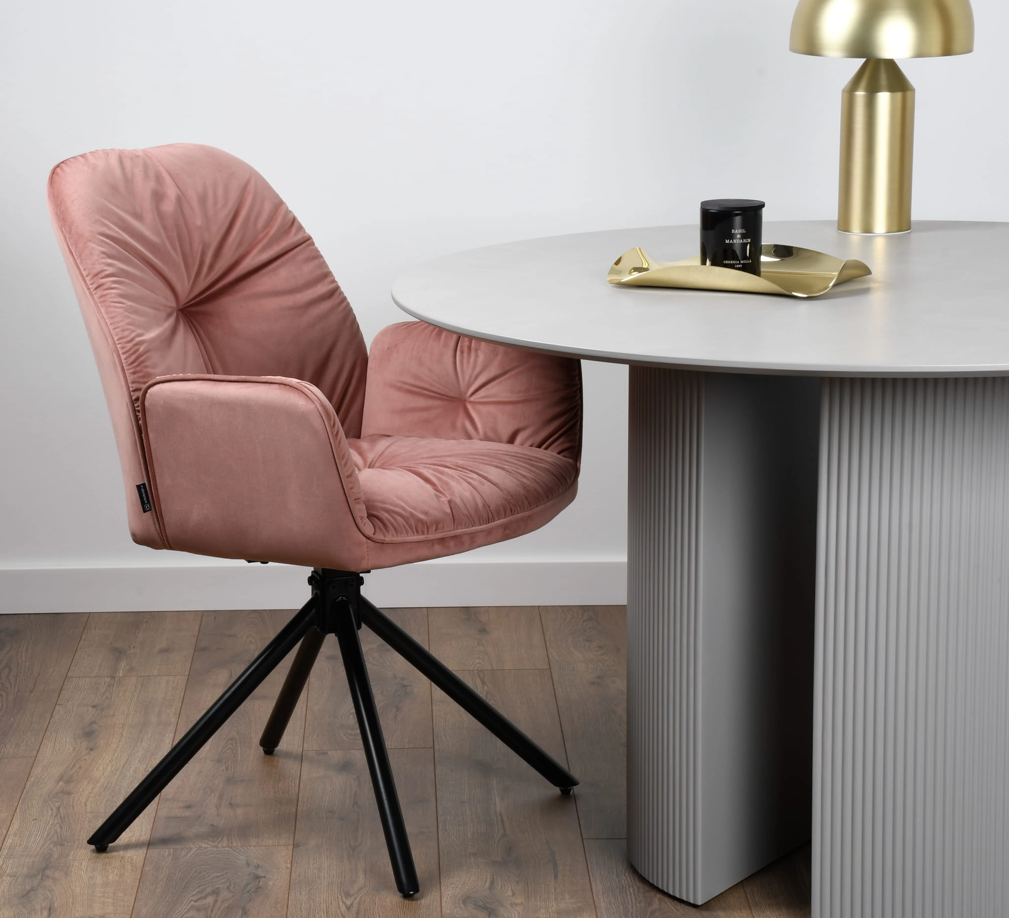 Krzesło tapicerowane obrotowe KOEN z podłokietnikami velvet różowe G-16