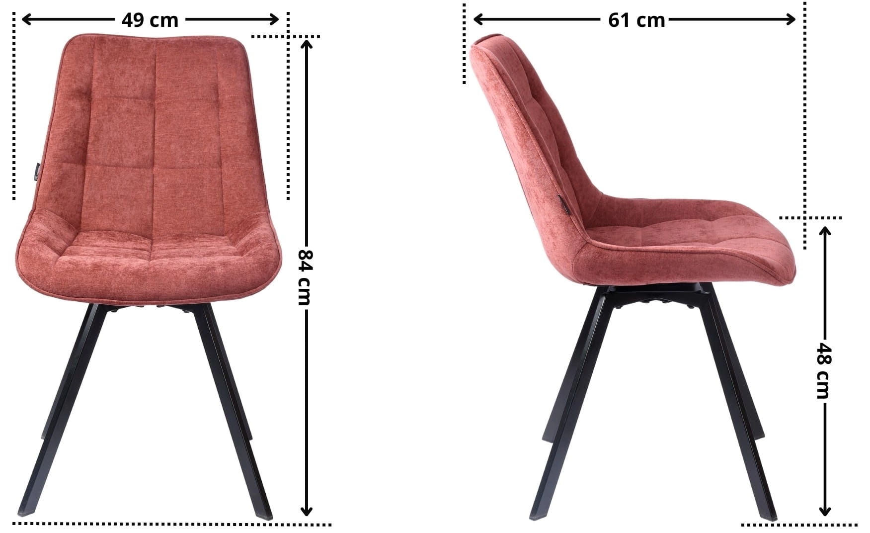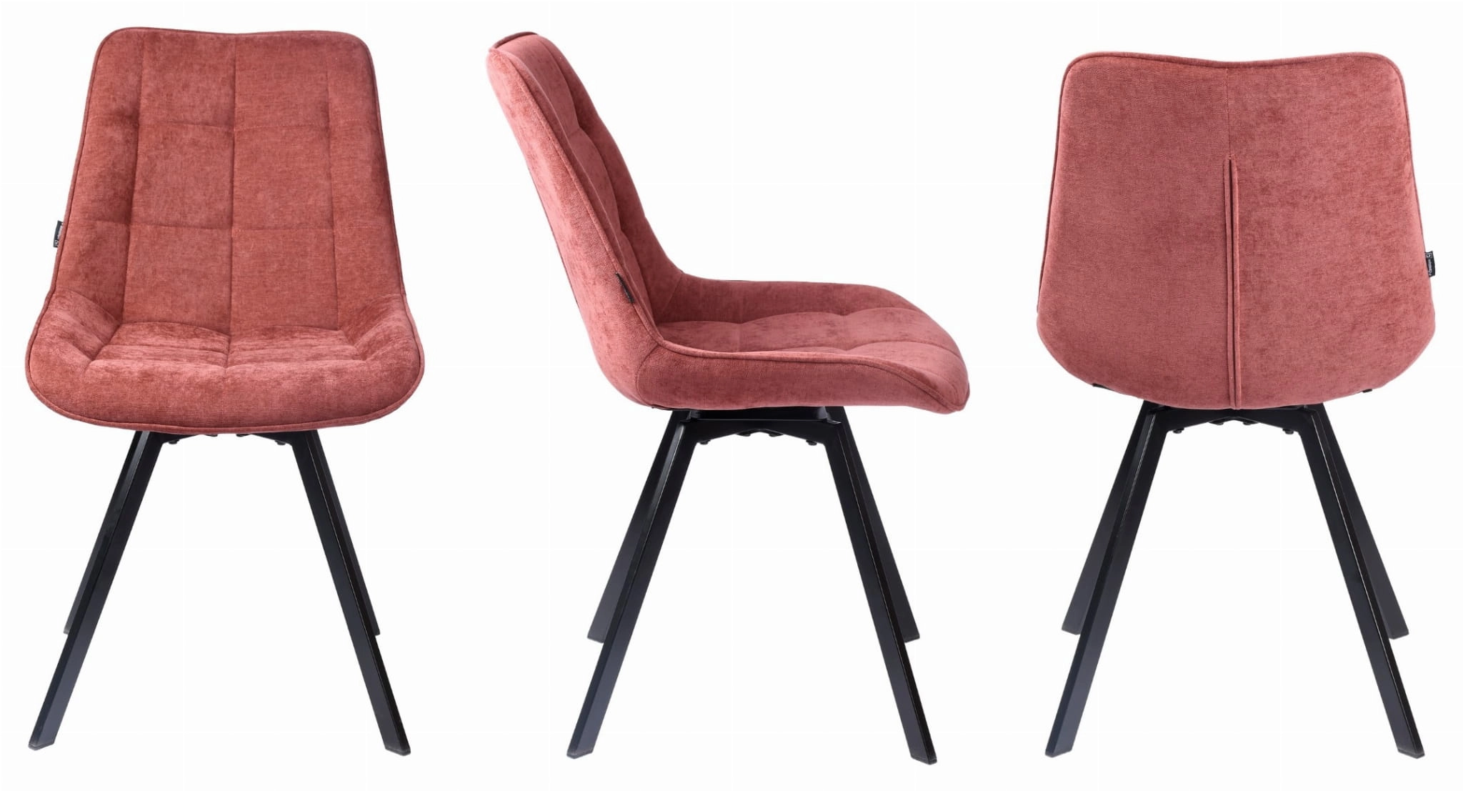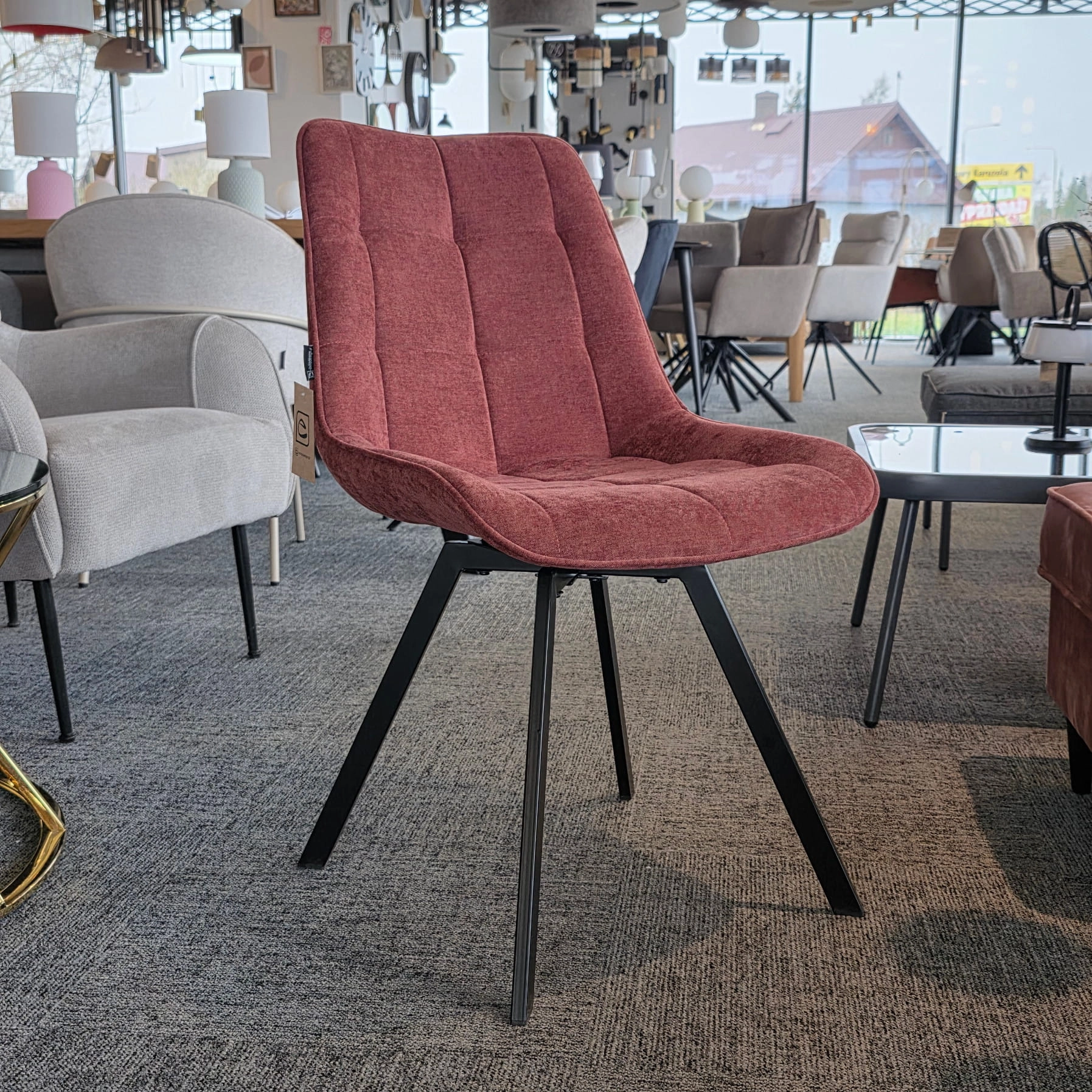 Tapicerka w kolorze bordowym doda wnętrzu świeżości i unikalnego charakteru, a czarny metalowy stelaż zapewni stabilność i trwałość na lata. Kompaktowe wymiary sprawiają, że to krzesło sprawdzi się nawet w niewielkich pomieszczeniach, nie tracąc przy tym nic ze swojego wyjątkowego wyglądu.