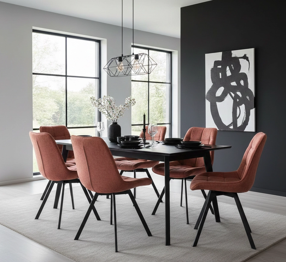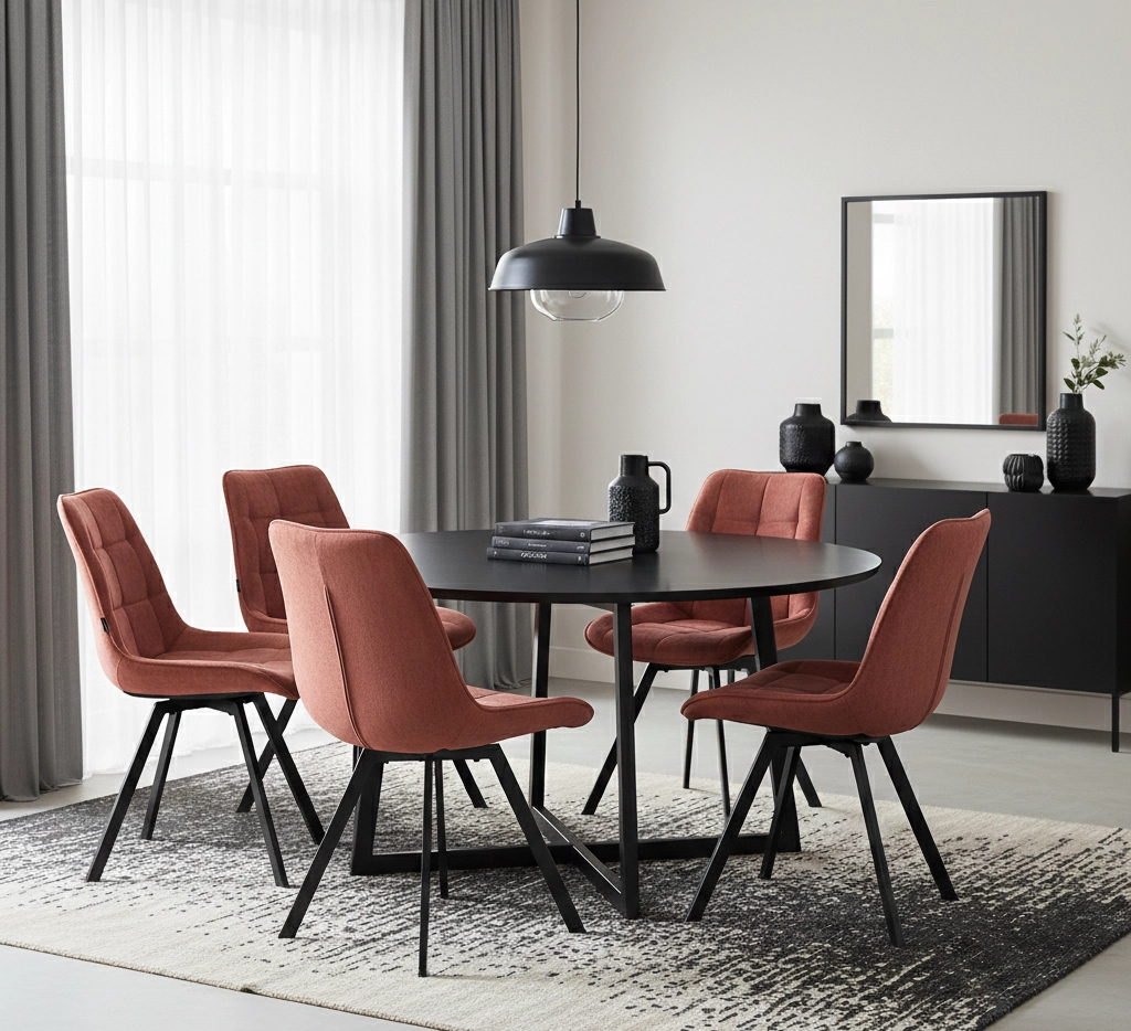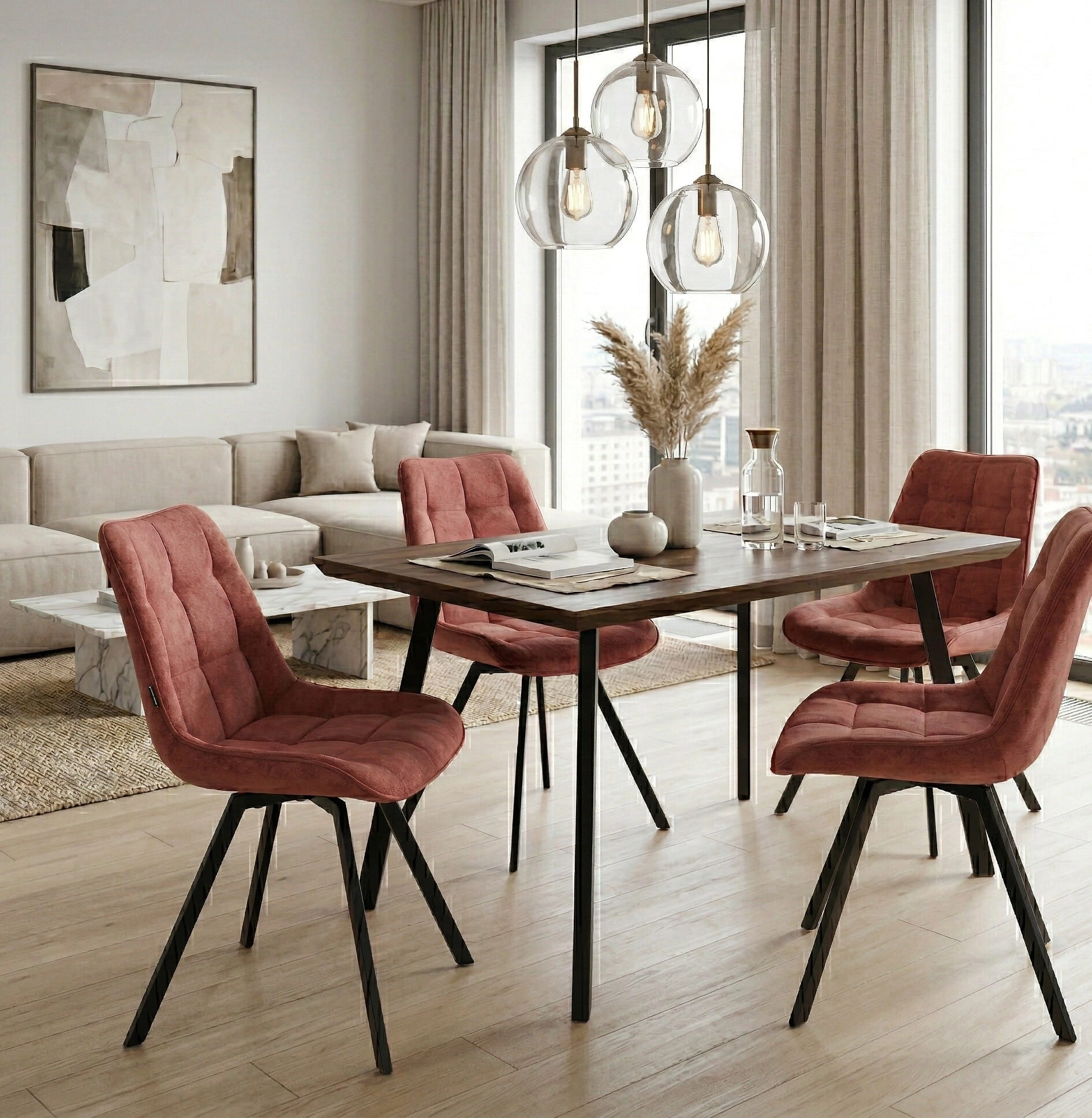 Krzesło LAPO to propozycja dla tych, którzy szukają kompromisu między nowoczesnym stylem a funkcjonalnością. Doskonale odnajdzie się zarówno w eleganckim salonie, stylowej jadalni, jak i nowoczesnym biurze czy przy toaletce. Dzięki mechanizmowi obrotowemu 360° oferuje swobodę, jakiej potrzebujesz na co dzień.