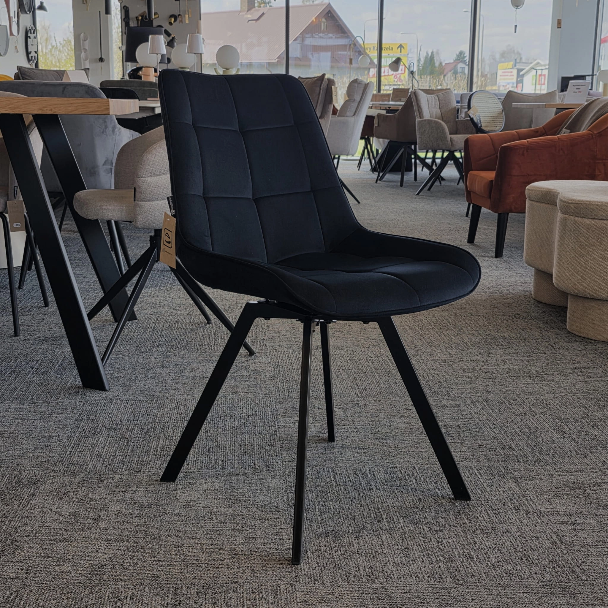 Krzesło obrotowe welurowe LAPO to idealne połączenie stylu, komfortu i nowoczesnych rozwiązań. Czarna tapicerka z miękkiego weluru nadaje mu eleganckiego charakteru, a solidny metalowy stelaż zapewnia stabilność i trwałość. Dzięki mechanizmowi 360° krzesło świetnie sprawdzi się zarówno przy stole w jadalni, biurku w domowym gabinecie, jak i przy toaletce w sypialni.