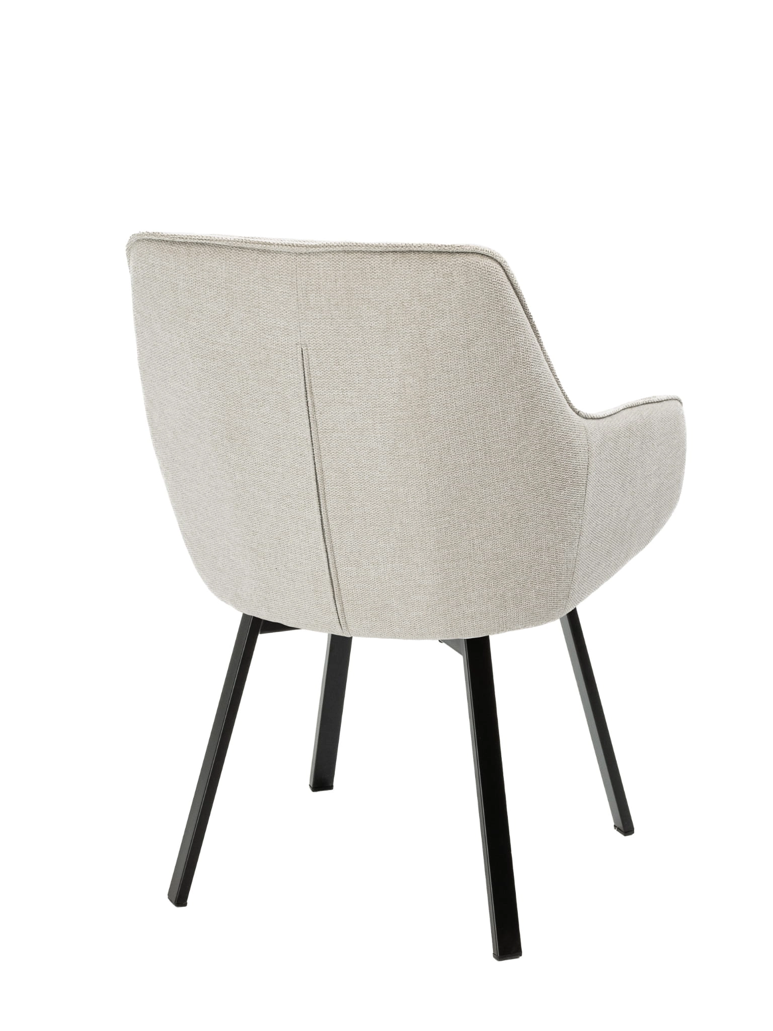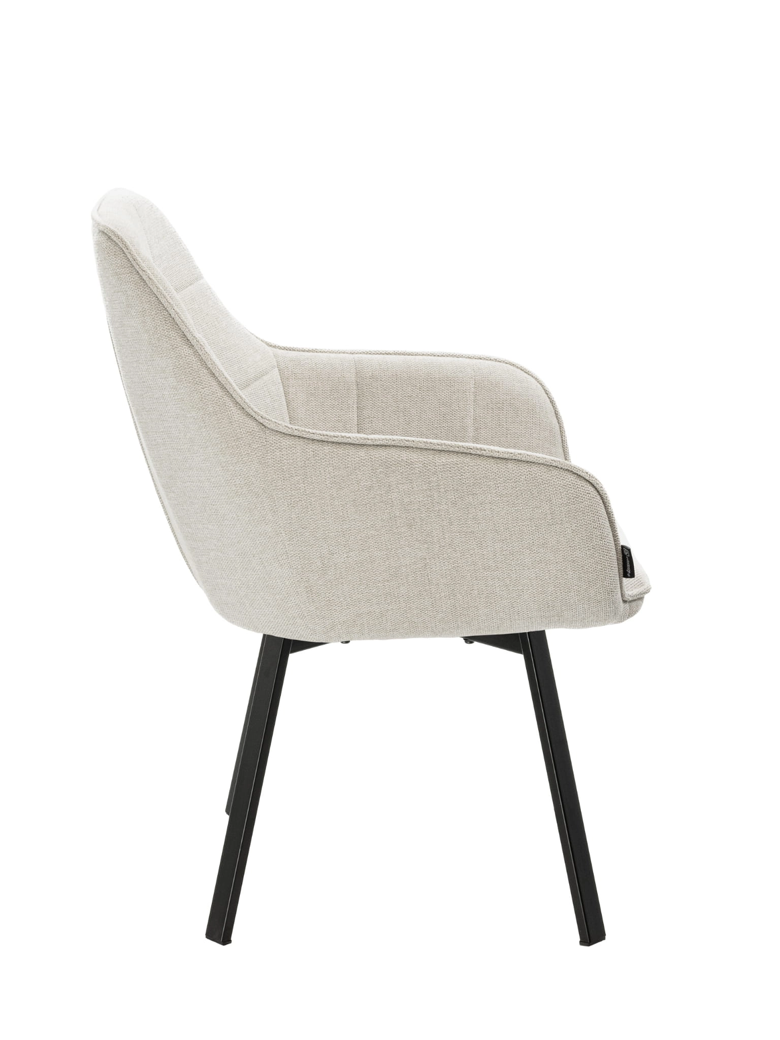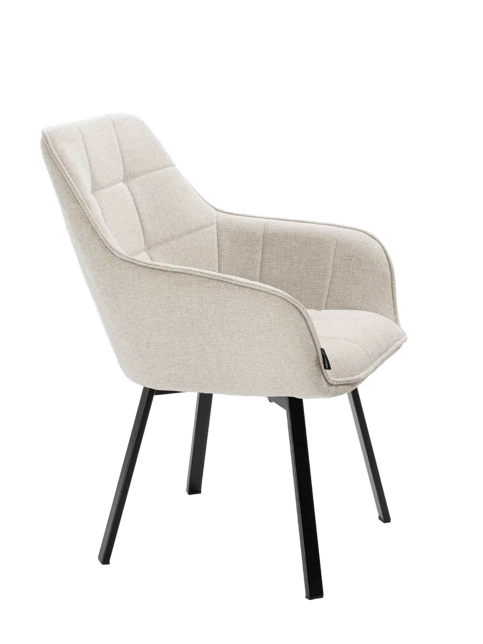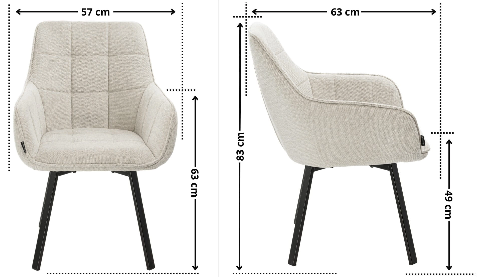 Model TOGO wyróżnia się elegancką tapicerką w beżowym kolorze, która ociepla wnętrze i nadaje mu przytulny charakter. Solidny stelaż z metalu i stabilne czarne nogi zapewniają niezawodność oraz trwałość przez lata. Krzesło doskonale pasuje do nowoczesnych, klasycznych i minimalistycznych aranżacji.