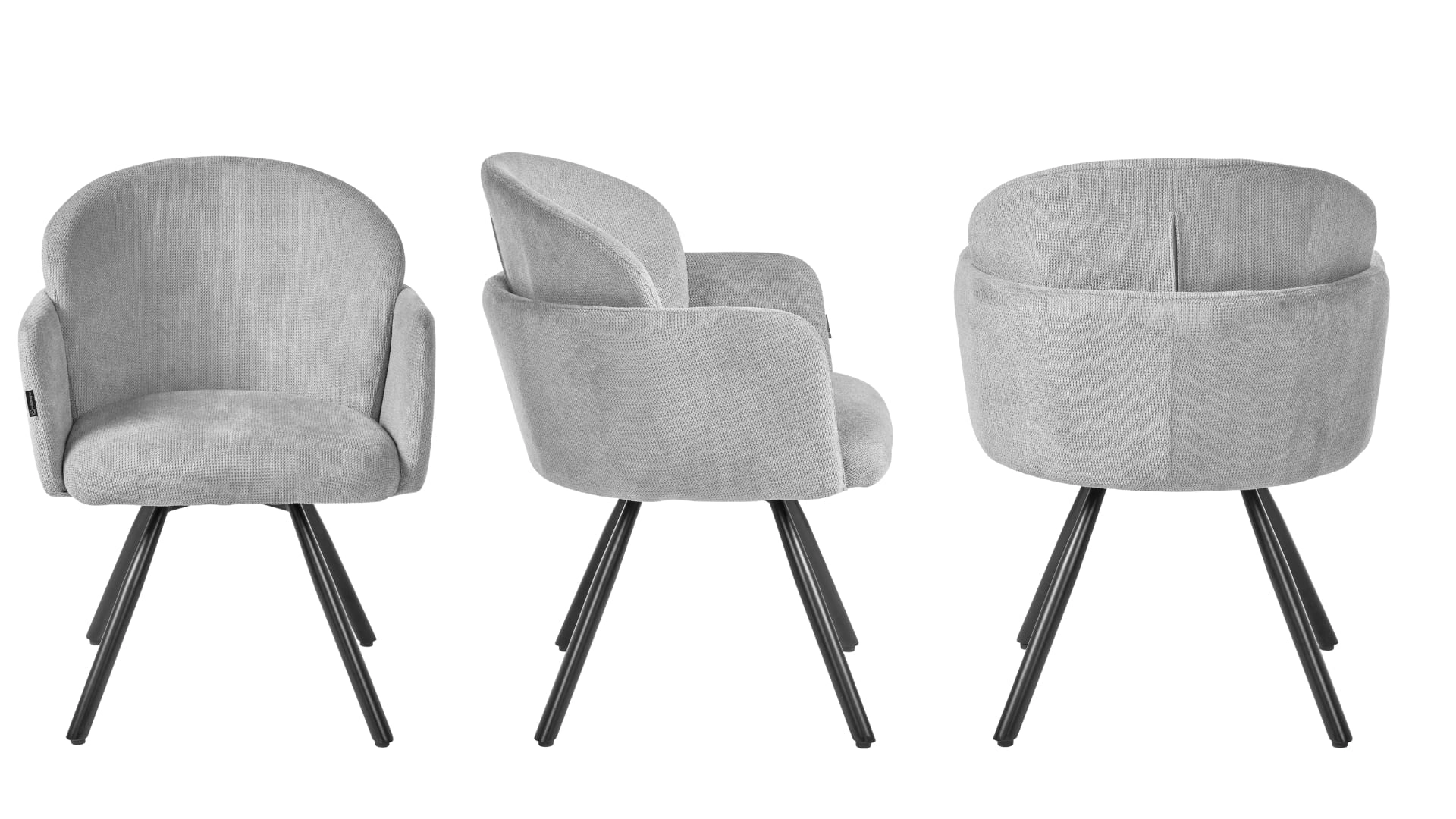 ✨ Krzesło tapicerowane szare z podłokietnikami – nowoczesny styl i komfort 180°