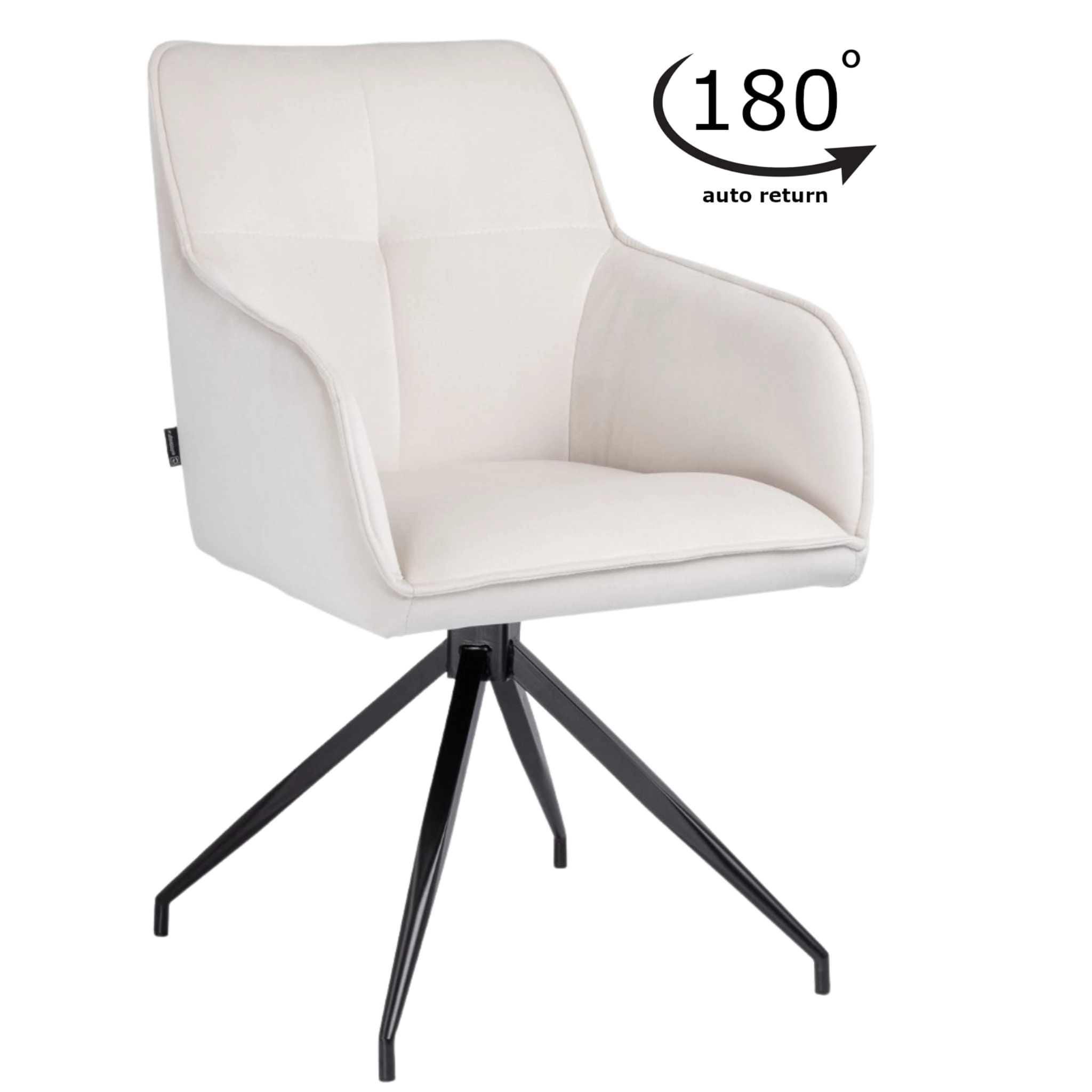 Dzięki metalowemu stelażowi i solidnym czarnym nogom, ASTER gwarantuje stabilność i trwałość. Zastosowany mechanizm obrotowy 180° z funkcją powrotu zwiększa komfort, zwłaszcza w przestrzeniach użytkowych. To także doskonały wybór do wnętrz w stylu nowoczesnym, glamour i minimalistycznym.
