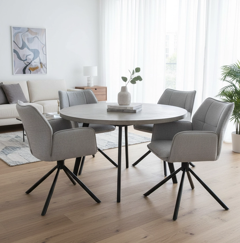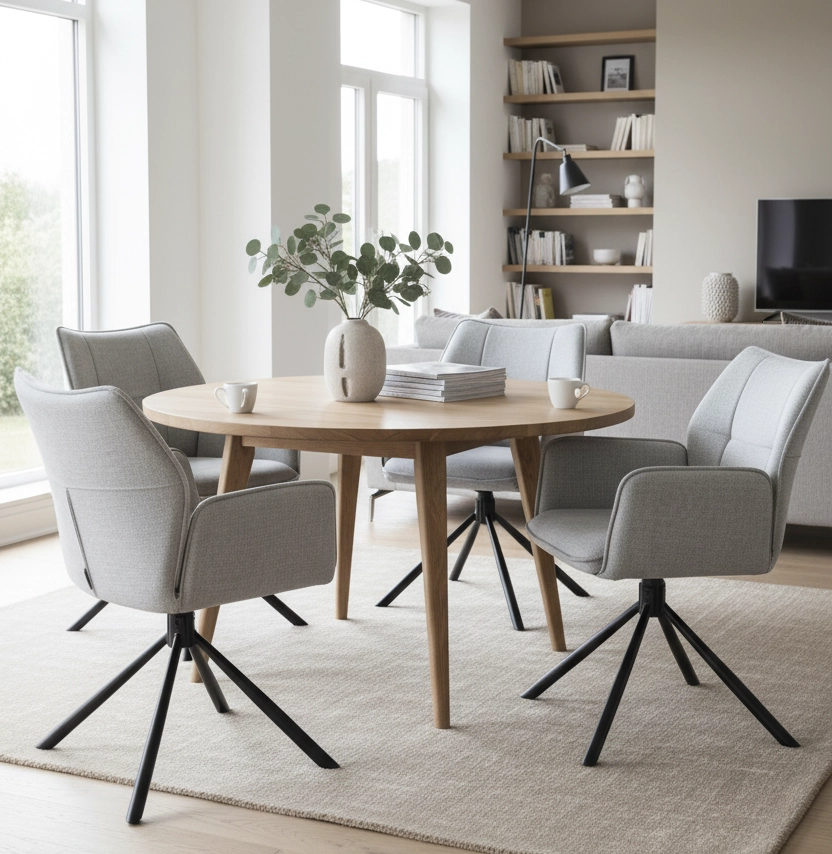 ✨Stylowe krzesło tapicerowane do salonu i biura – EDEN szare z funkcją obrotu 180°