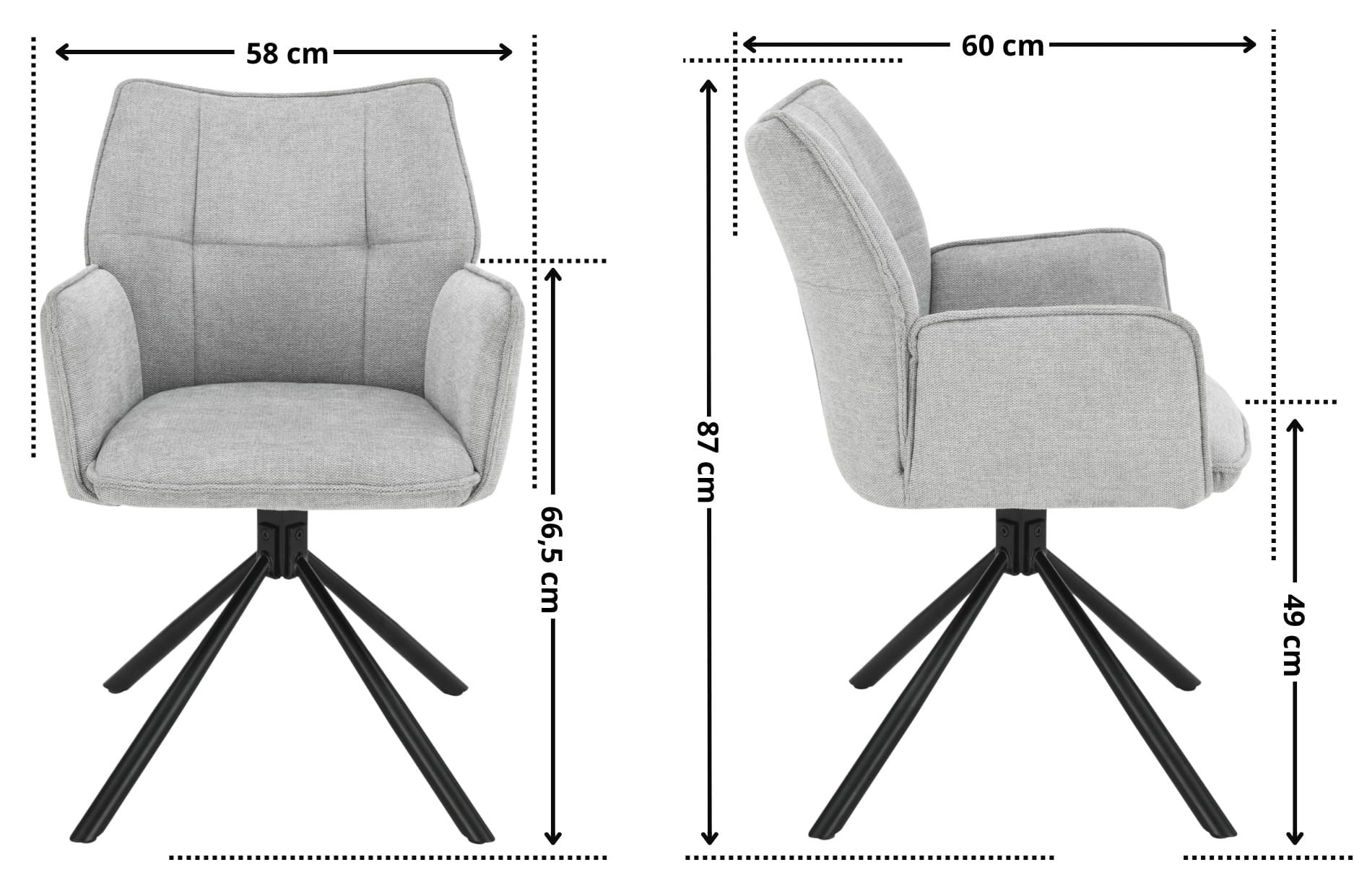 Krzesło tapicerowane obrotowe z podłokietnikami EDEN tkanina szare 920-10