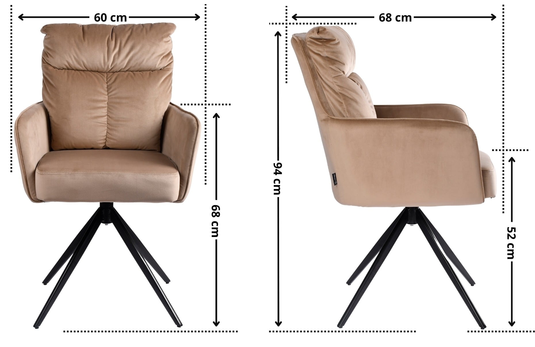 - Wysokość do siedziska: 52 cm