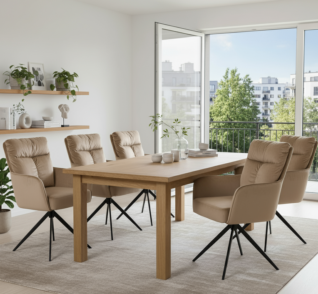 Miękka pianka i ergonomiczny kształt sprawiają, że nawet długie godziny przy biurku czy stole nie będą męczące. To idealne krzesło do salonu, gabinetu, a nawet nowoczesnej toaletki. Jego uniwersalna stylistyka wpisuje się w różne trendy wnętrzarskie – od skandynawskiego minimalizmu po klasyczną elegancję.