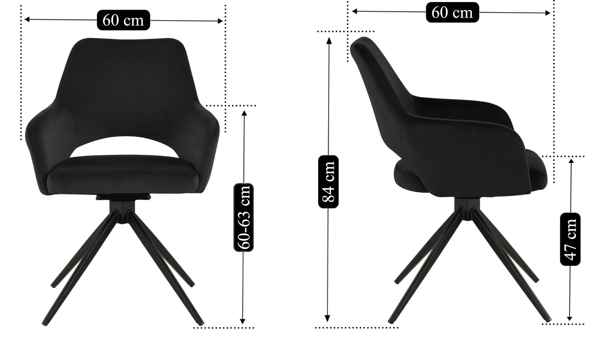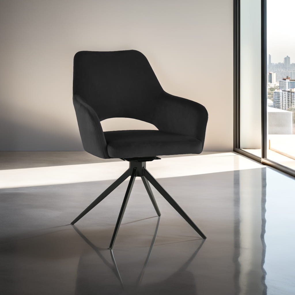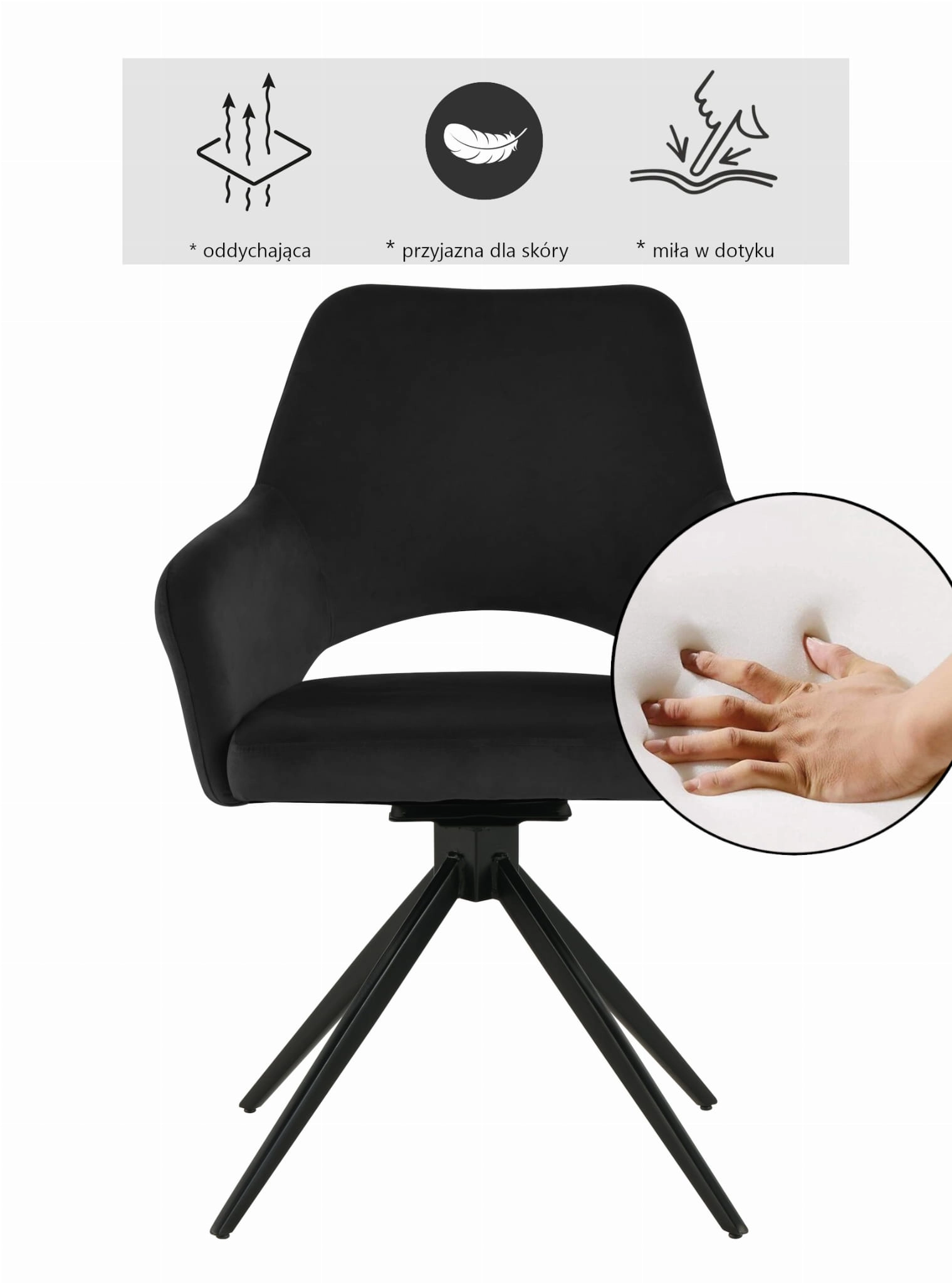 Krzesło tapicerowane obrotowe z podłokietnikami ERIM velvet czarne G-77