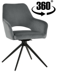 Nowoczesny design łączy się tu z praktycznym mechanizmem obrotowym 360°, który daje pełną swobodę ruchu, bez konieczności przesuwania mebla. Stabilny stelaż z metalu w czarnym wykończeniu idealnie komponuje się z szarością tapicerki, tworząc ponadczasowy duet kolorystyczny.