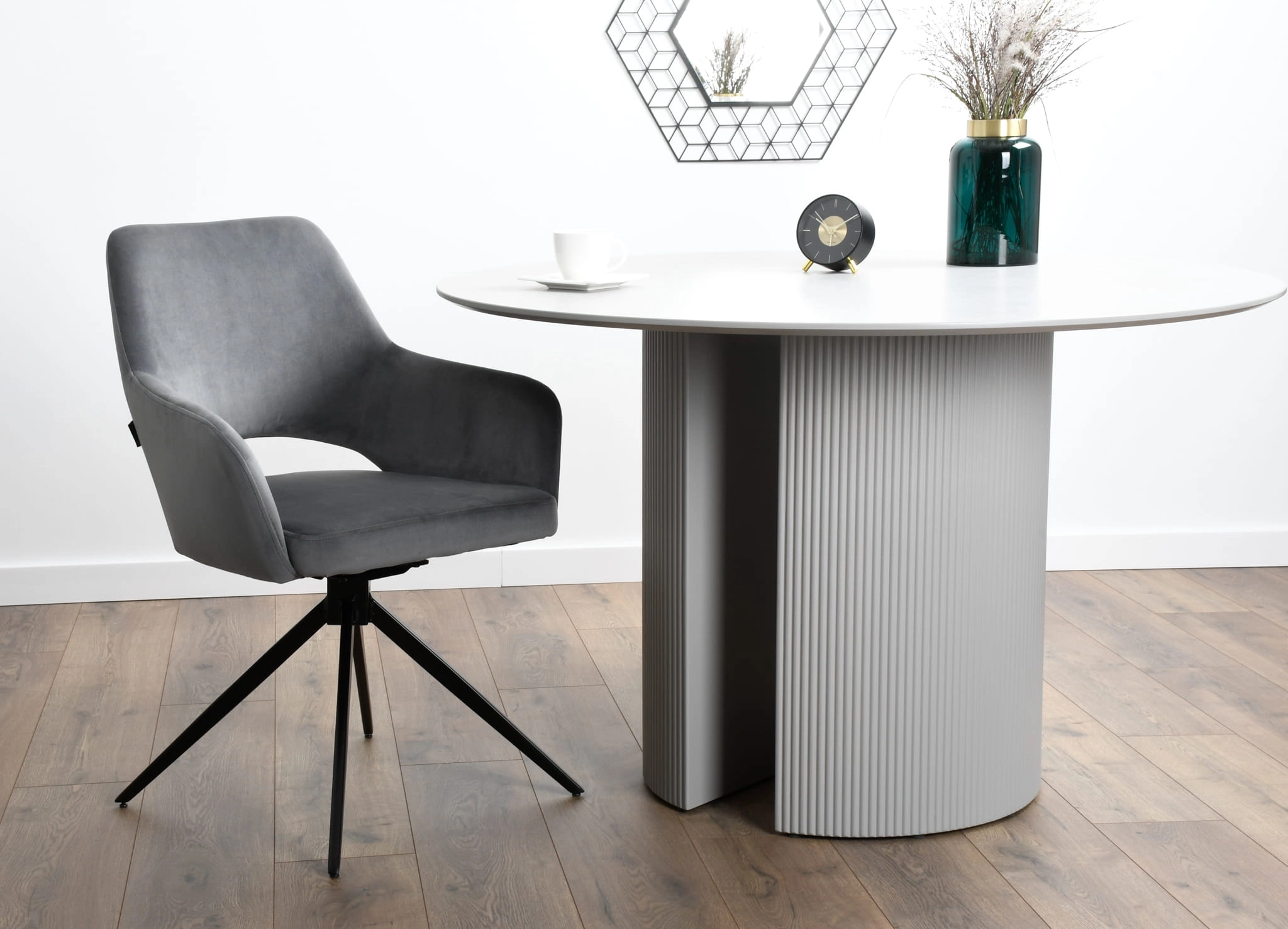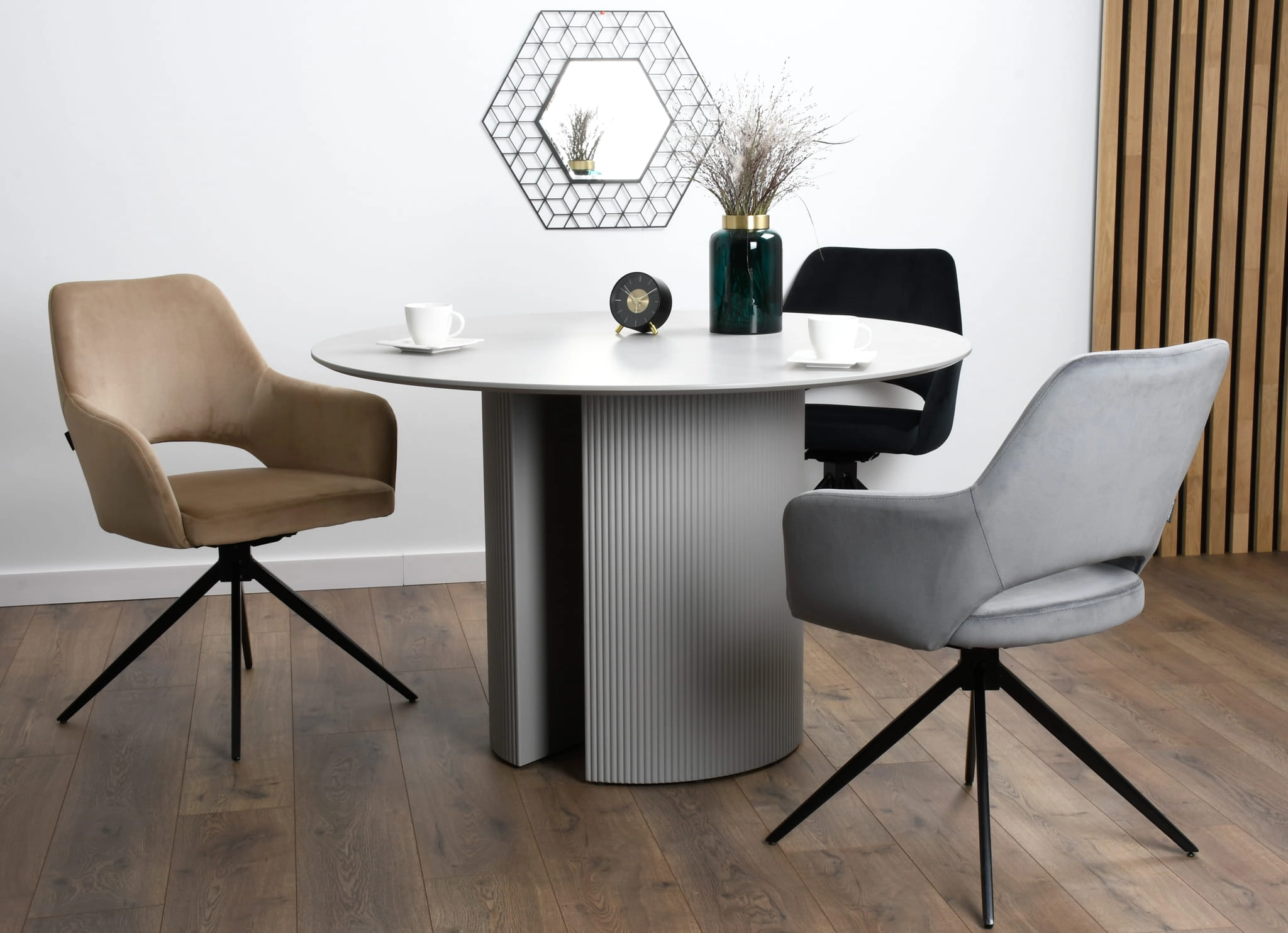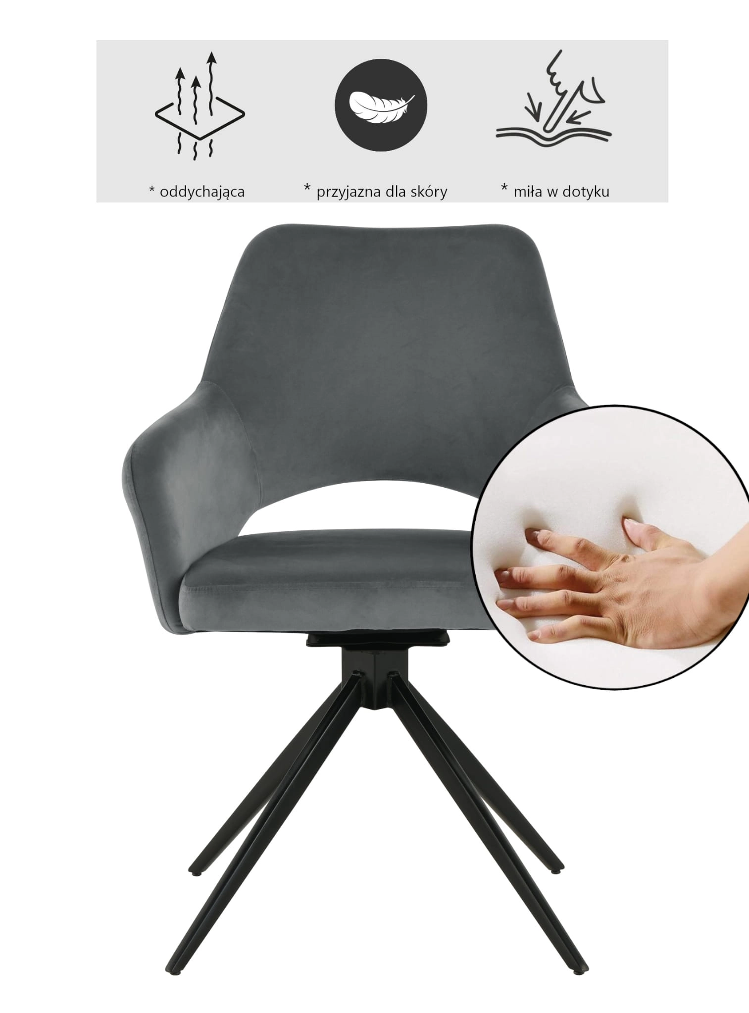 ✨Krzesło tapicerowane szare ERIM – nowoczesny design, welur i obrót 360°