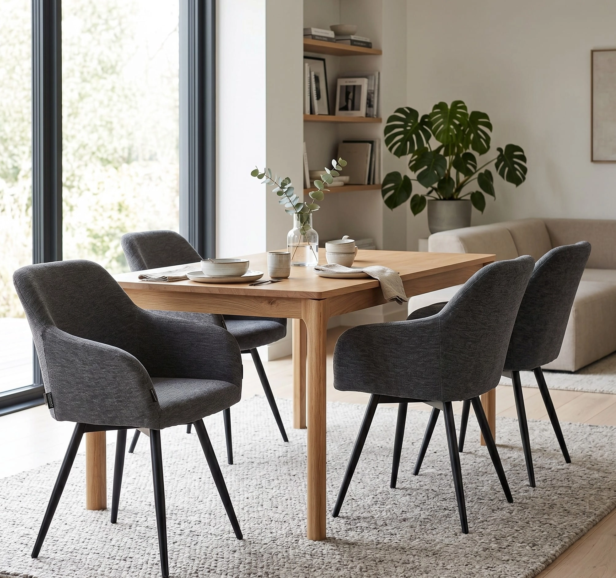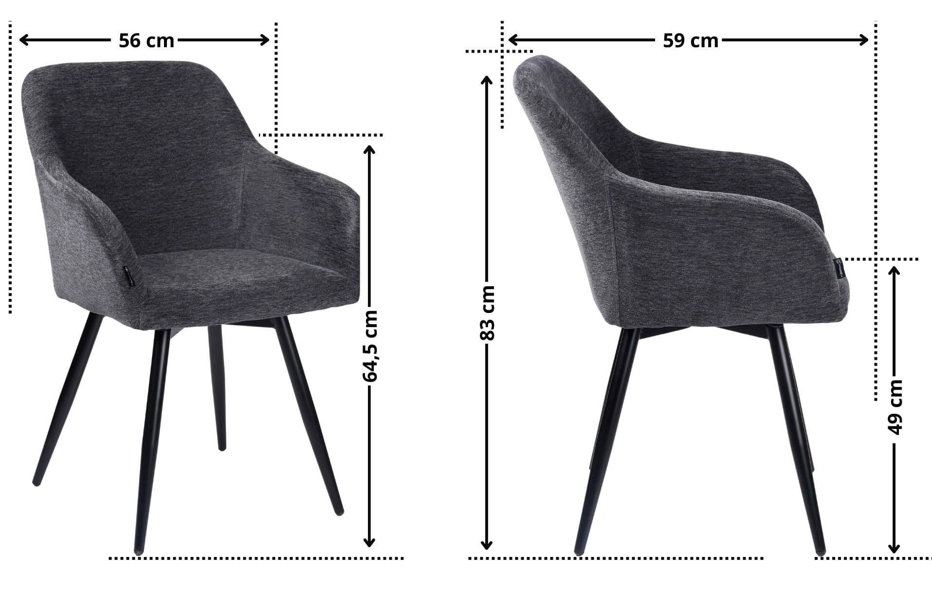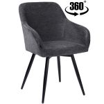 Dzięki mechanizmowi obrotowemu 360° i regulowanym nóżkom, krzesło dopasuje się do każdego miejsca. Miękka tkanina w kolorze grafitowym dodaje elegancji, a czarny metalowy stelaż zapewnia trwałość i stabilność. To designerskie krzesło tapicerowane nie tylko dobrze wygląda, ale też zwiększa komfort codziennego życia.