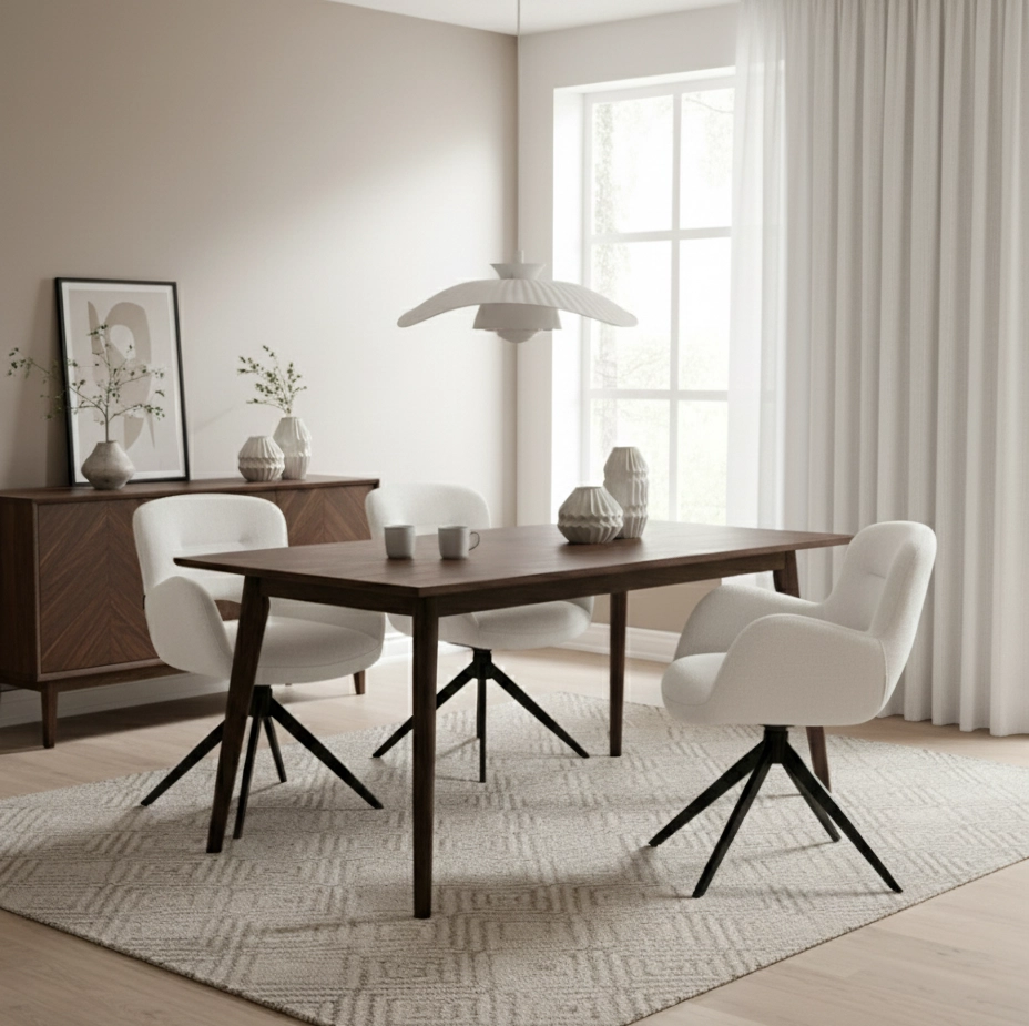 To idealny wybór do nowoczesnych domów i mieszkań – doskonale sprawdzi się jako krzesło do salonu, jadalni, biura czy toaletki. Zastosowany mechanizm obrotowy 180° to praktyczne udogodnienie, dzięki któremu możesz cieszyć się swobodą ruchu bez konieczności przesuwania mebla.