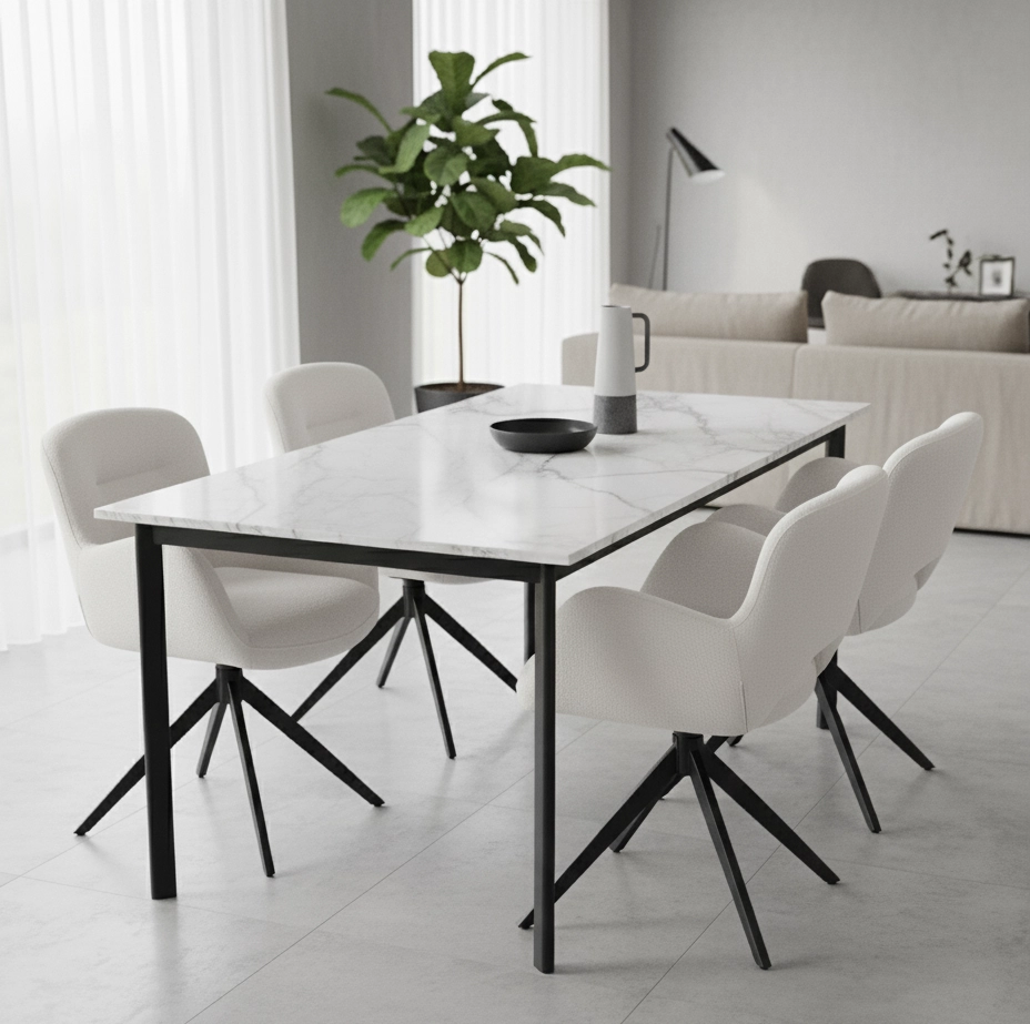 Krzesło tapicerowane FILO to połączenie funkcjonalności, elegancji i nowoczesnego designu. Tapicerka w odcieniu ecru subtelnie ociepla wnętrze, a czarne metalowe nogi dodają charakteru. Dzięki mechanizmowi obrotowemu 180°, krzesło zapewnia swobodę ruchu i wyjątkową wygodę na co dzień. Doskonale sprawdzi się zarówno w salonie, jak i przy biurku czy toaletce. To propozycja dla osób, które cenią nie tylko styl, ale i praktyczne rozwiązania.
