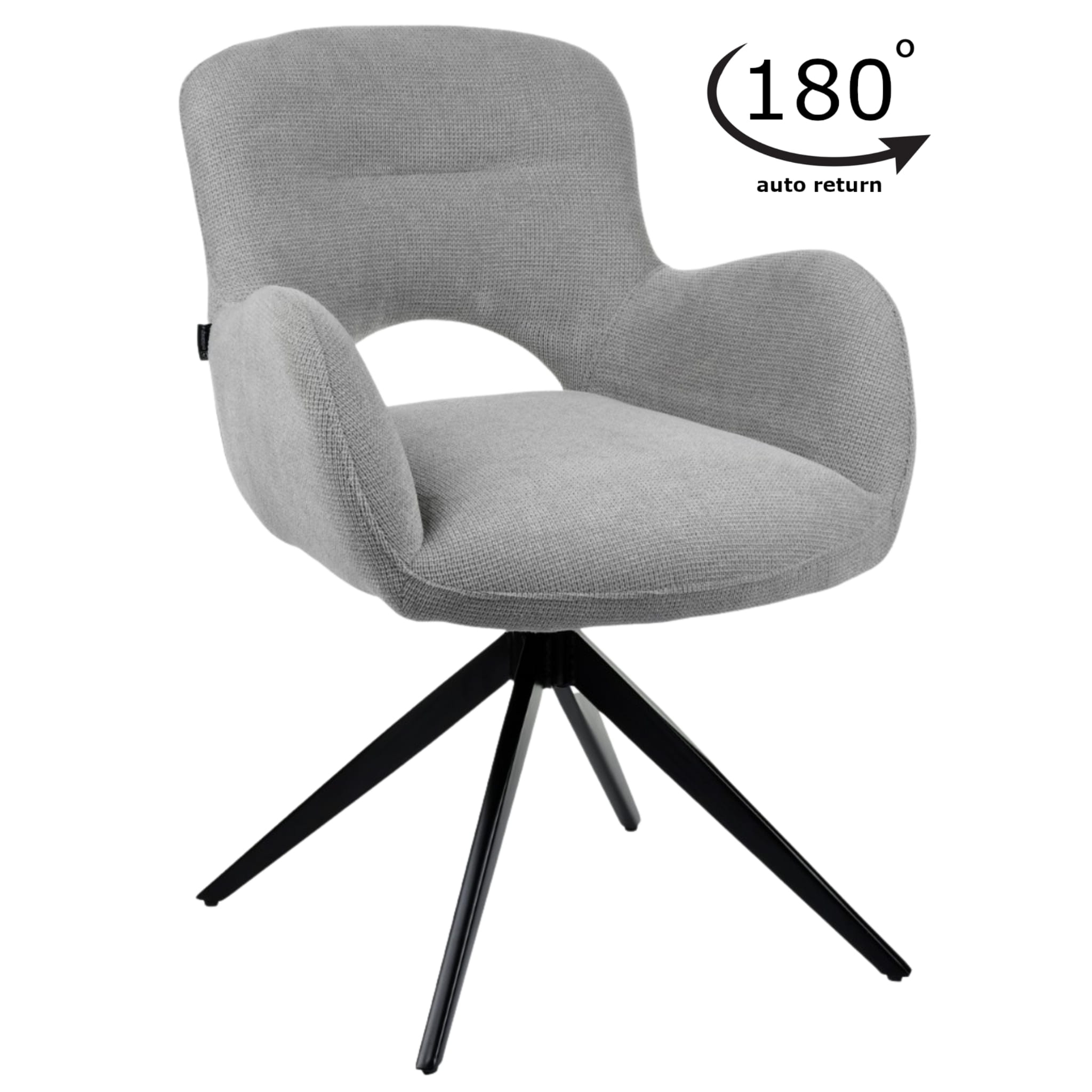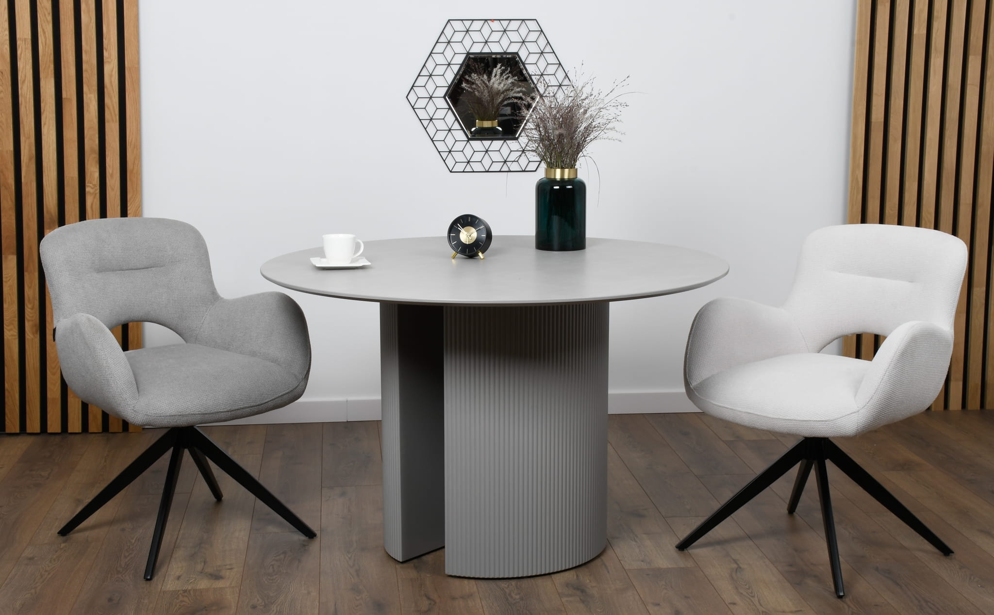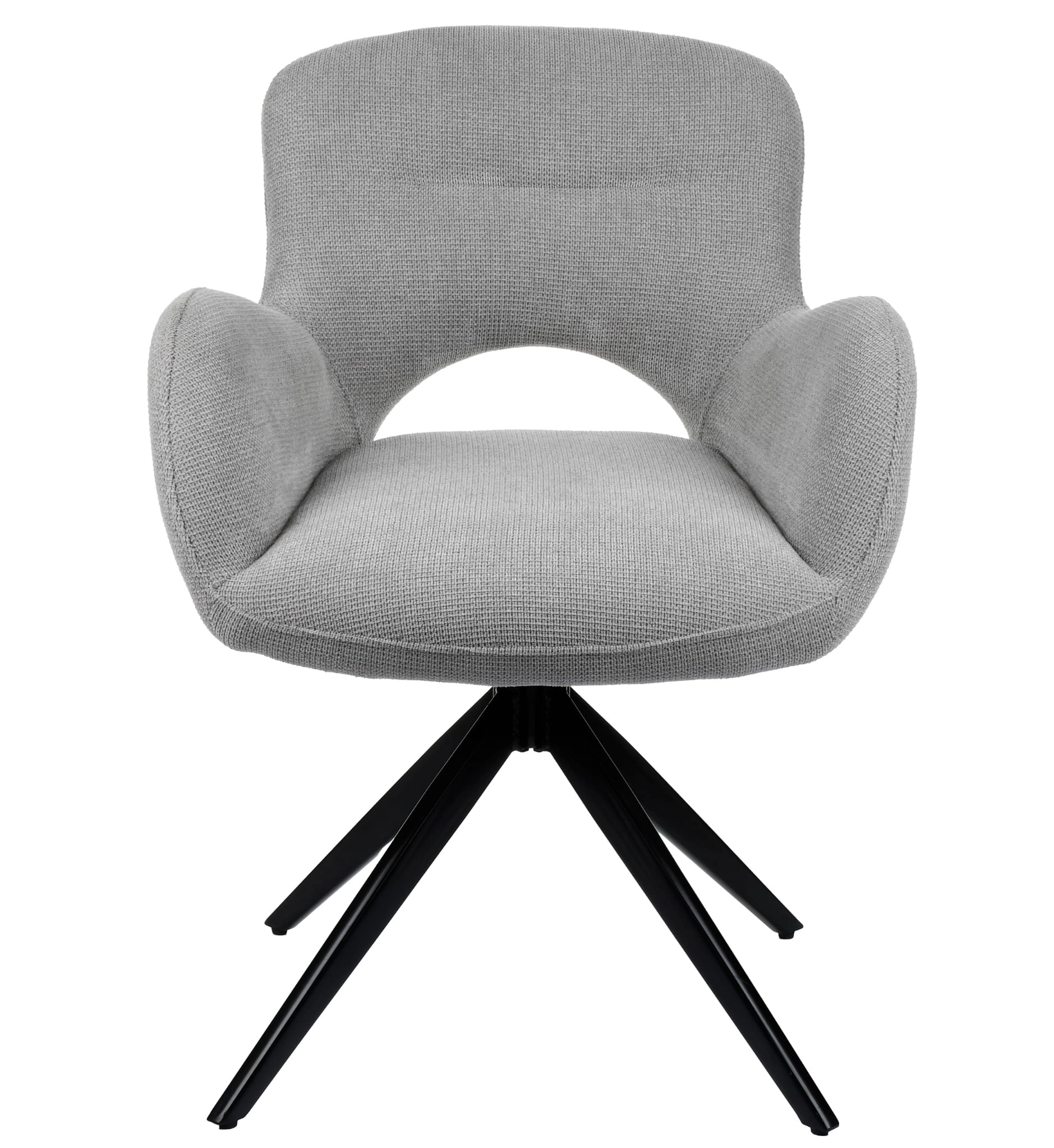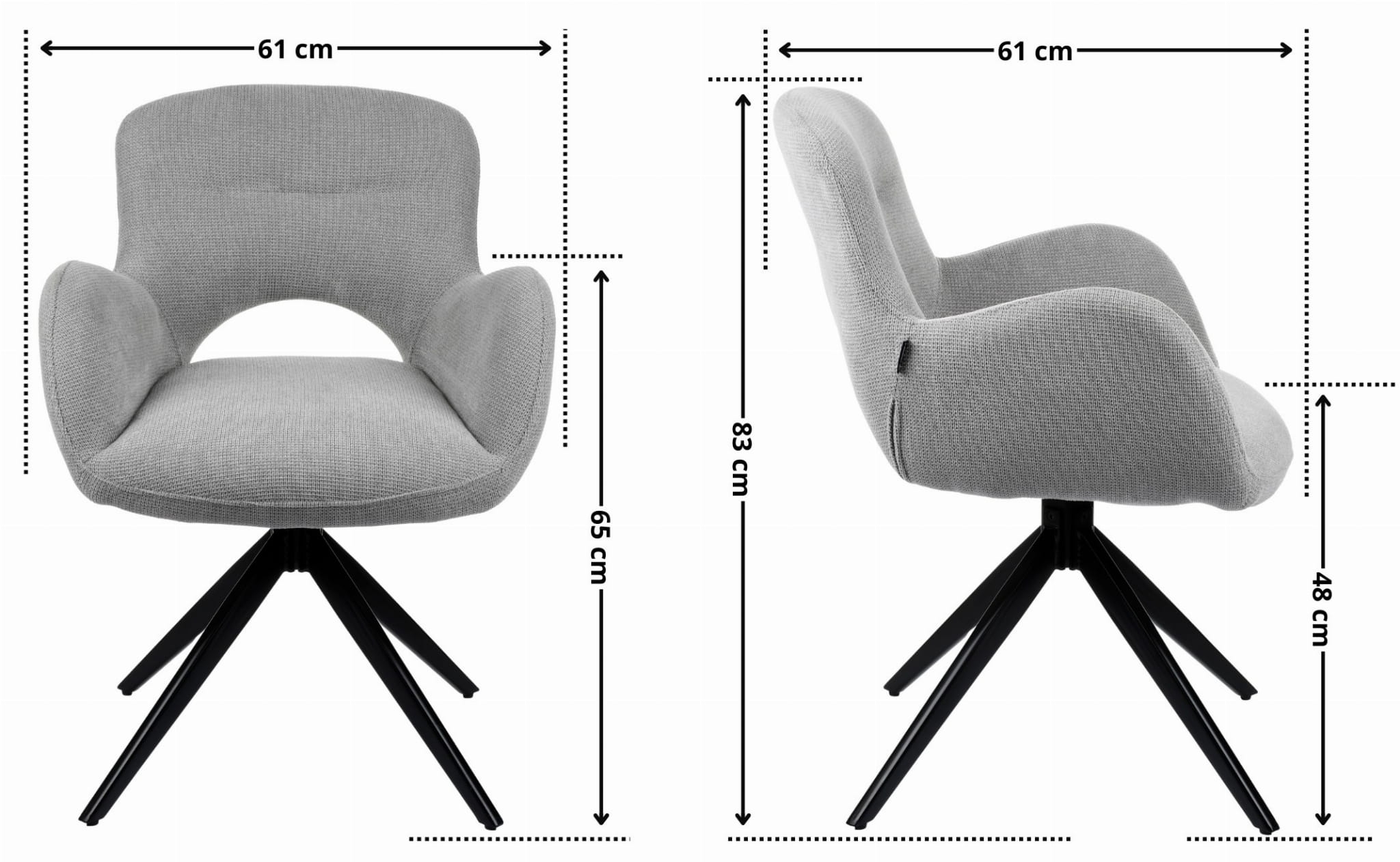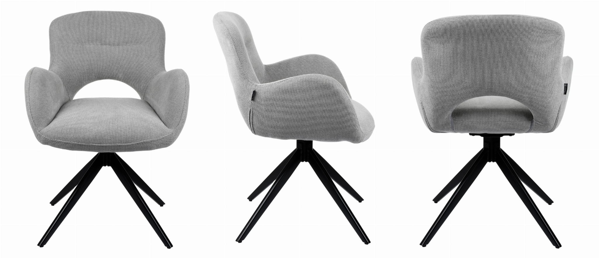 FILO w odcieniu szarości to krzesło, które łączy minimalizm i wyrafinowanie. Szara tkanina tapicerska wprowadza do wnętrza spokój i harmonię, doskonale współgrając z różnorodnymi dodatkami. Metalowy stelaż w kolorze czarnym nadaje mu stabilność i nowoczesny wygląd, a mechanizm obrotowy 180° to funkcjonalne rozwiązanie, które docenisz każdego dnia.