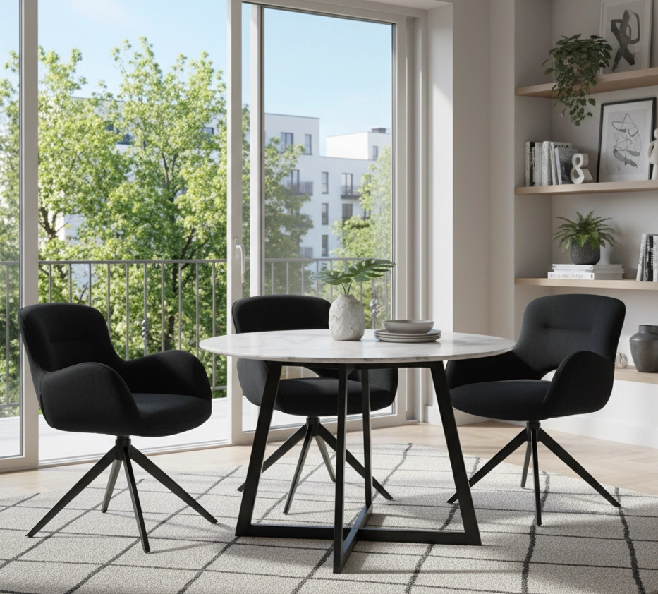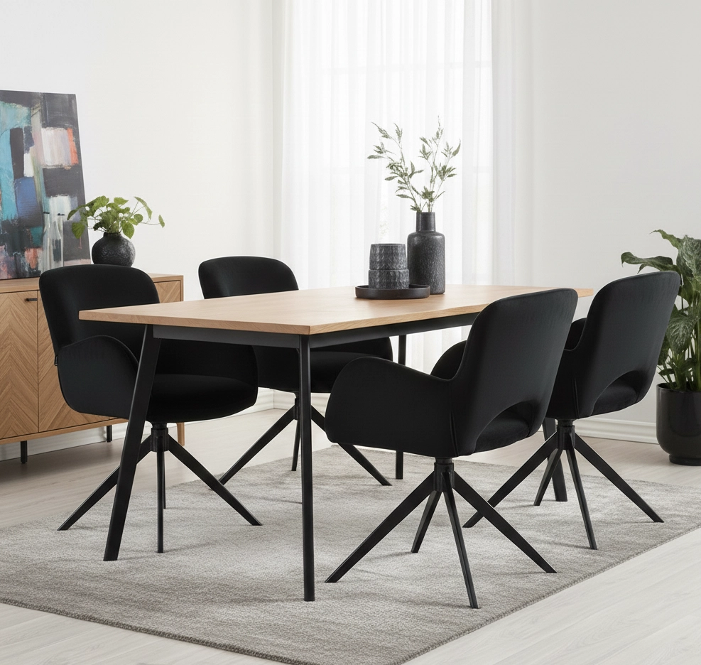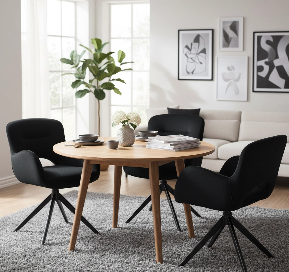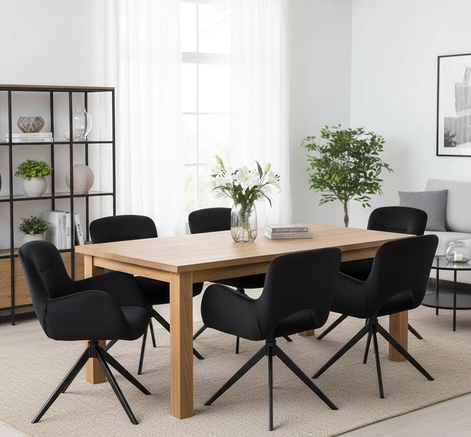 Krzesło obrotowe FILO to funkcjonalny i stylowy wybór dla każdego, kto ceni wygodę, jakość i nowoczesny wygląd. Jego subtelna elegancja sprawia, że świetnie prezentuje się zarówno w jadalni, salonie, jak i w domowym biurze. Obrotowy mechanizm 180° zapewnia wygodę podczas pracy, spotkań przy stole czy codziennego relaksu.