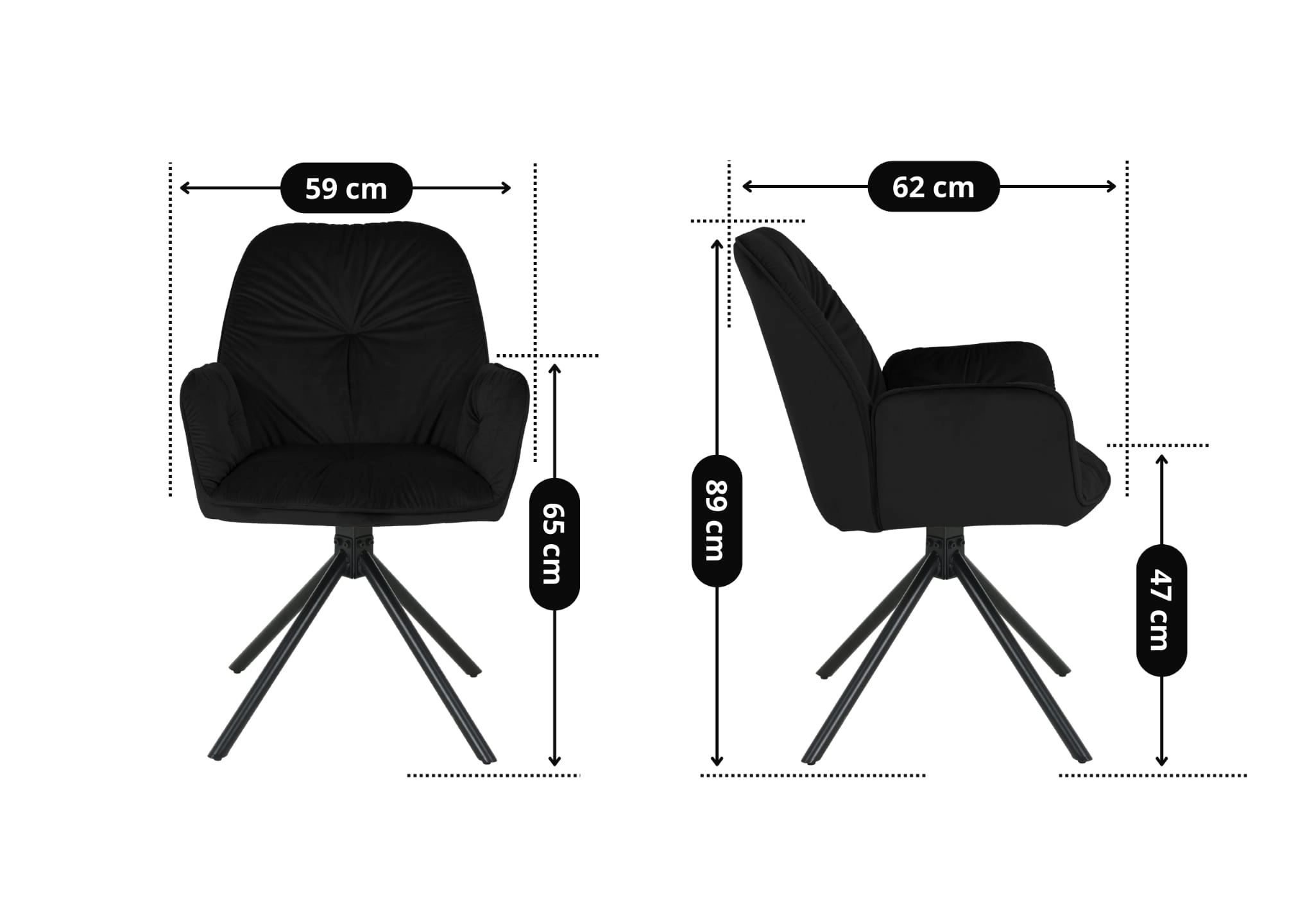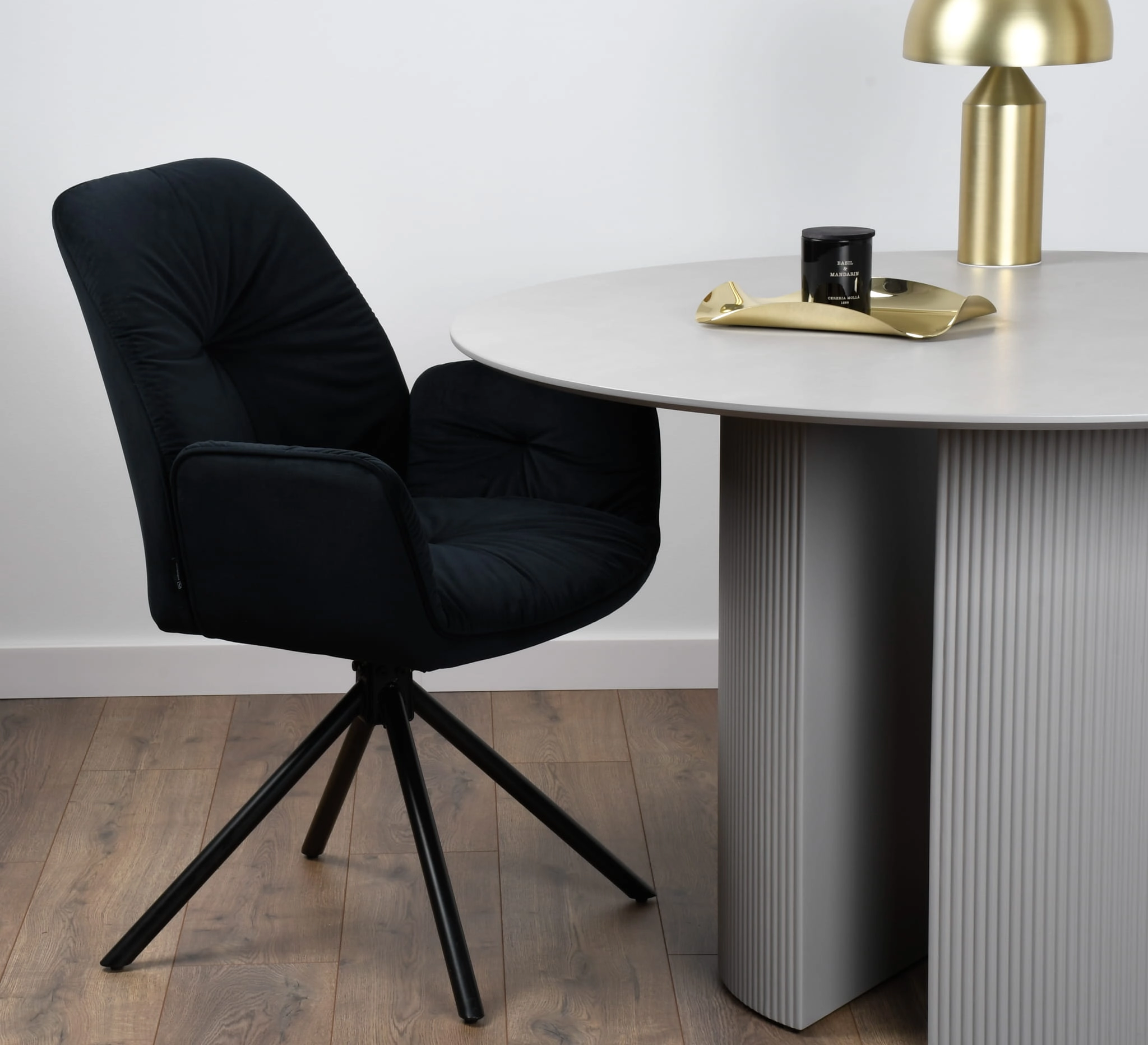 Krzesło tapicerowane obrotowe z podłokietnikami KOEN velvet czarne G-77
