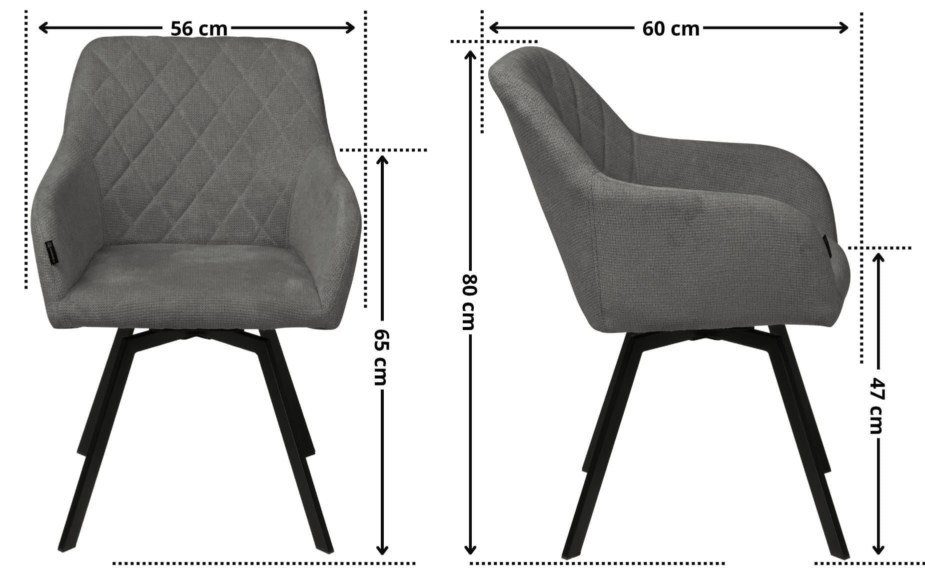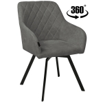 Obrotowy mechanizm 360° gwarantuje wygodę i elastyczność w codziennym użytkowaniu. Metalowe nogi, malowane proszkowo, dodają stabilności i nadają całej konstrukcji lekko industrialnego charakteru, który doskonale wpisuje się w nowoczesne i loftowe aranżacje.