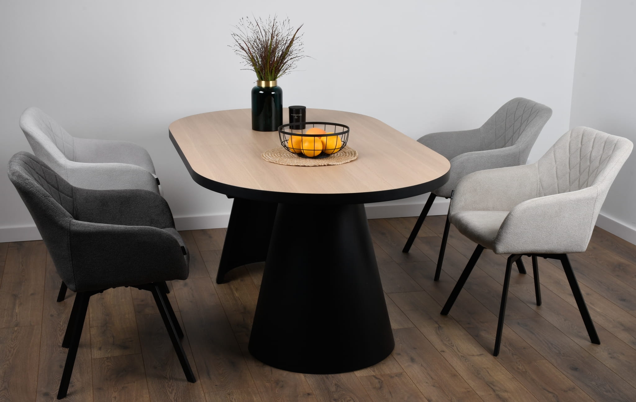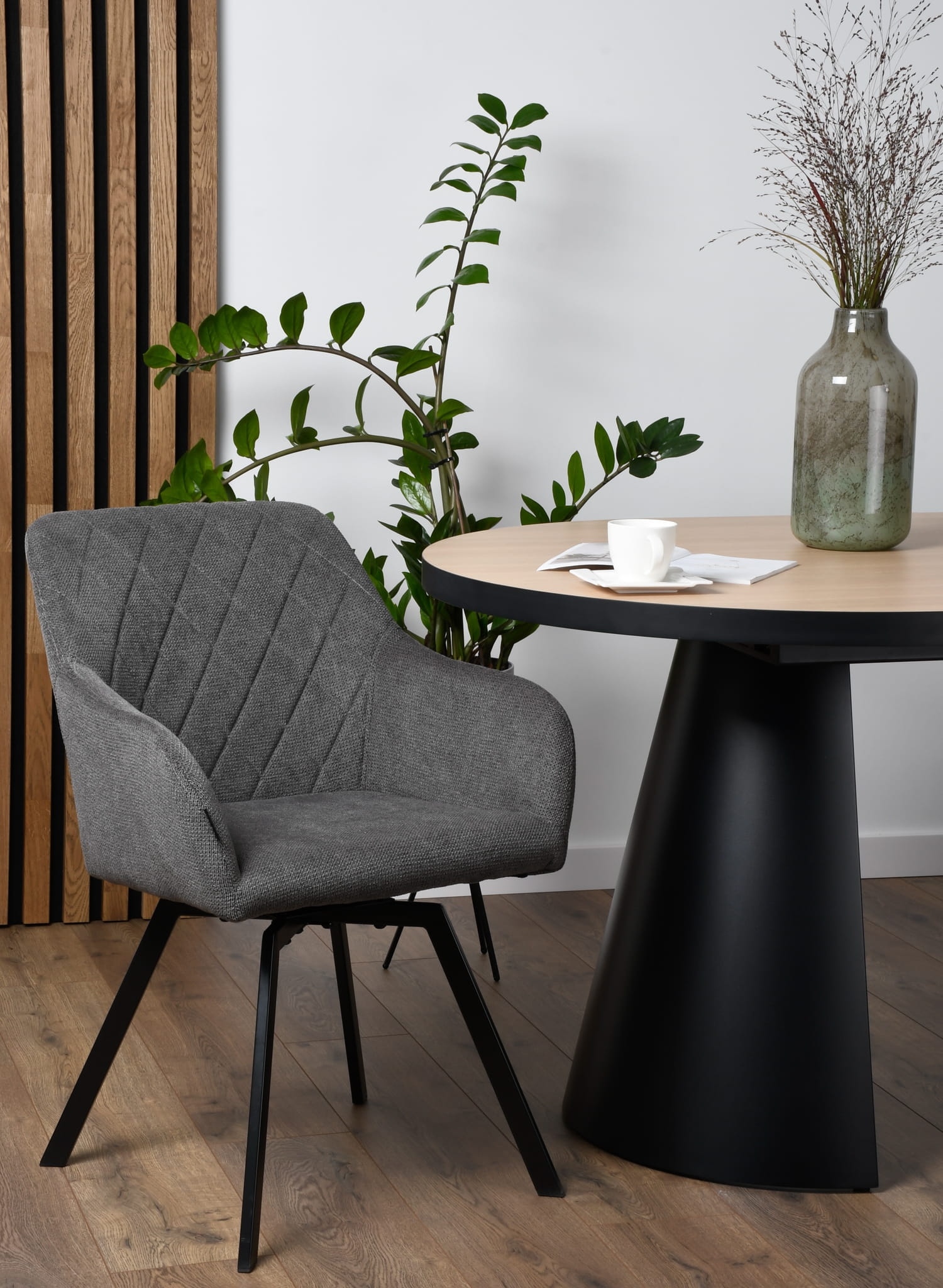 Dzięki ergonomicznemu kształtowi i komfortowemu oparciu, model PANKO sprawdzi się zarówno przy pracy przy biurku, jak i podczas długich posiłków w jadalni. Niskie podłokietniki pozwalają łatwo wsunąć krzesło pod blat, co dodatkowo oszczędza miejsce. Miękka tkanina tapicerska jest odporna na codzienne użytkowanie, a jednocześnie przyjemna w dotyku – idealna na każdą porę roku.