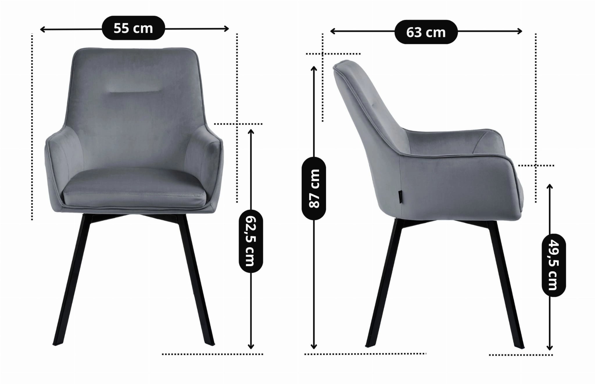 SWEN to więcej niż tylko nowoczesne krzesło – to funkcjonalny i stylowy element wyposażenia wnętrza, który spełnia potrzeby nawet najbardziej wymagających użytkowników. Jego szara welurowa tapicerka świetnie komponuje się z czarnym metalowym stelażem, tworząc spójną i elegancką całość.