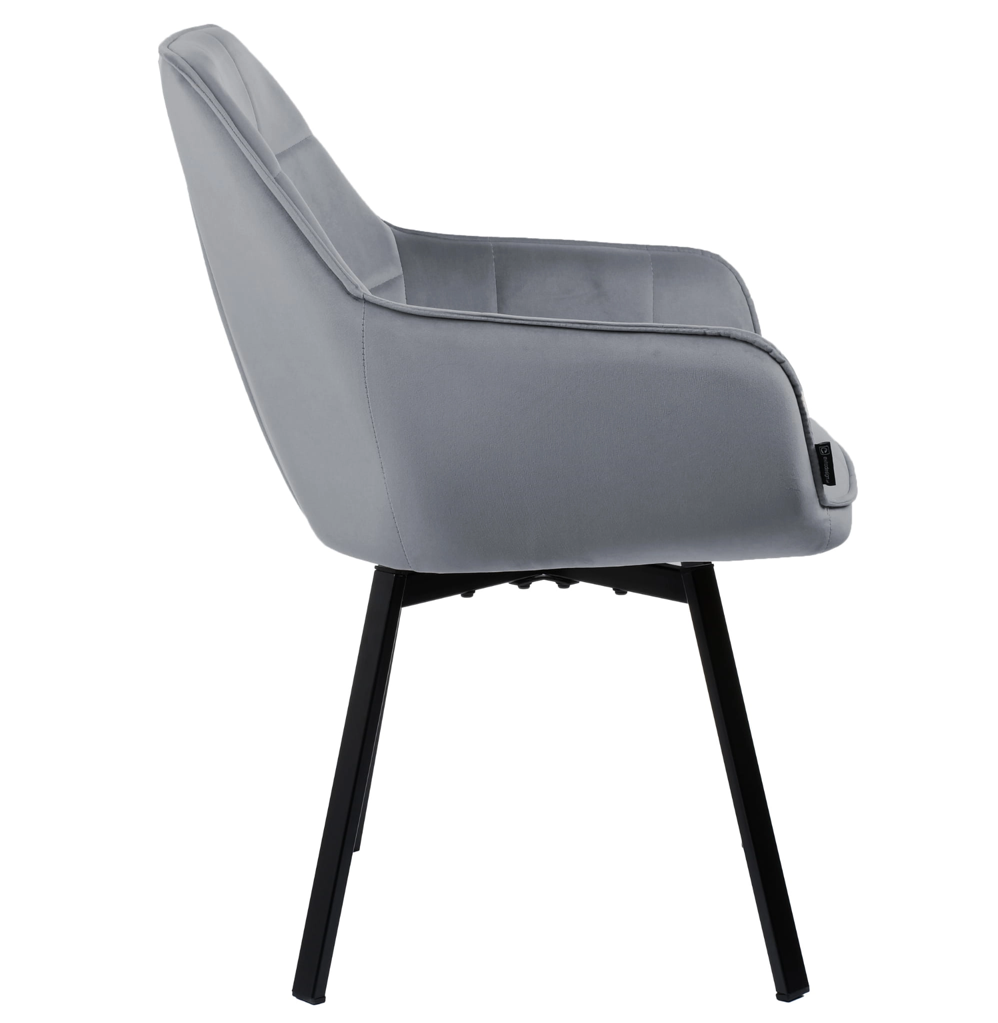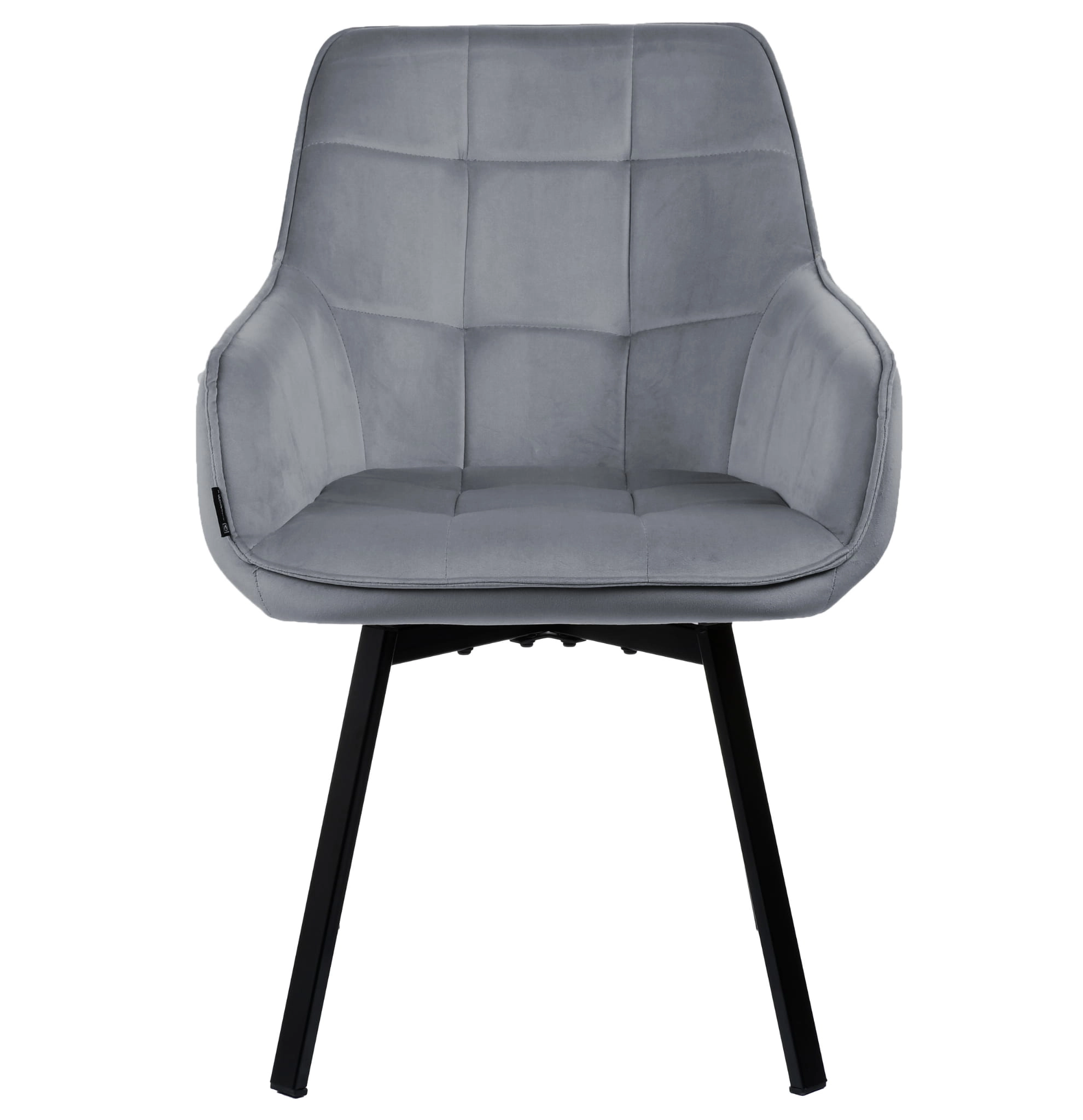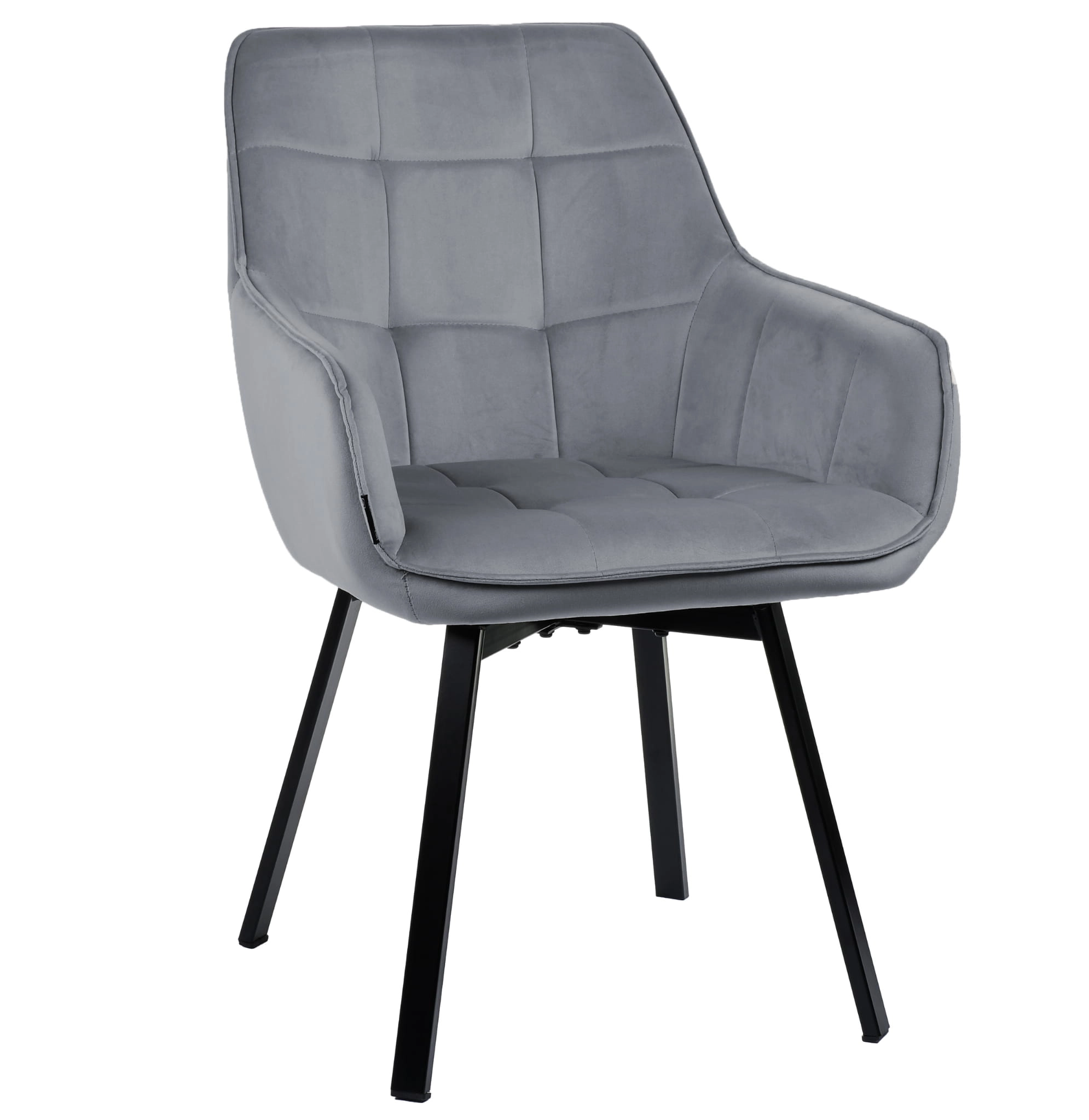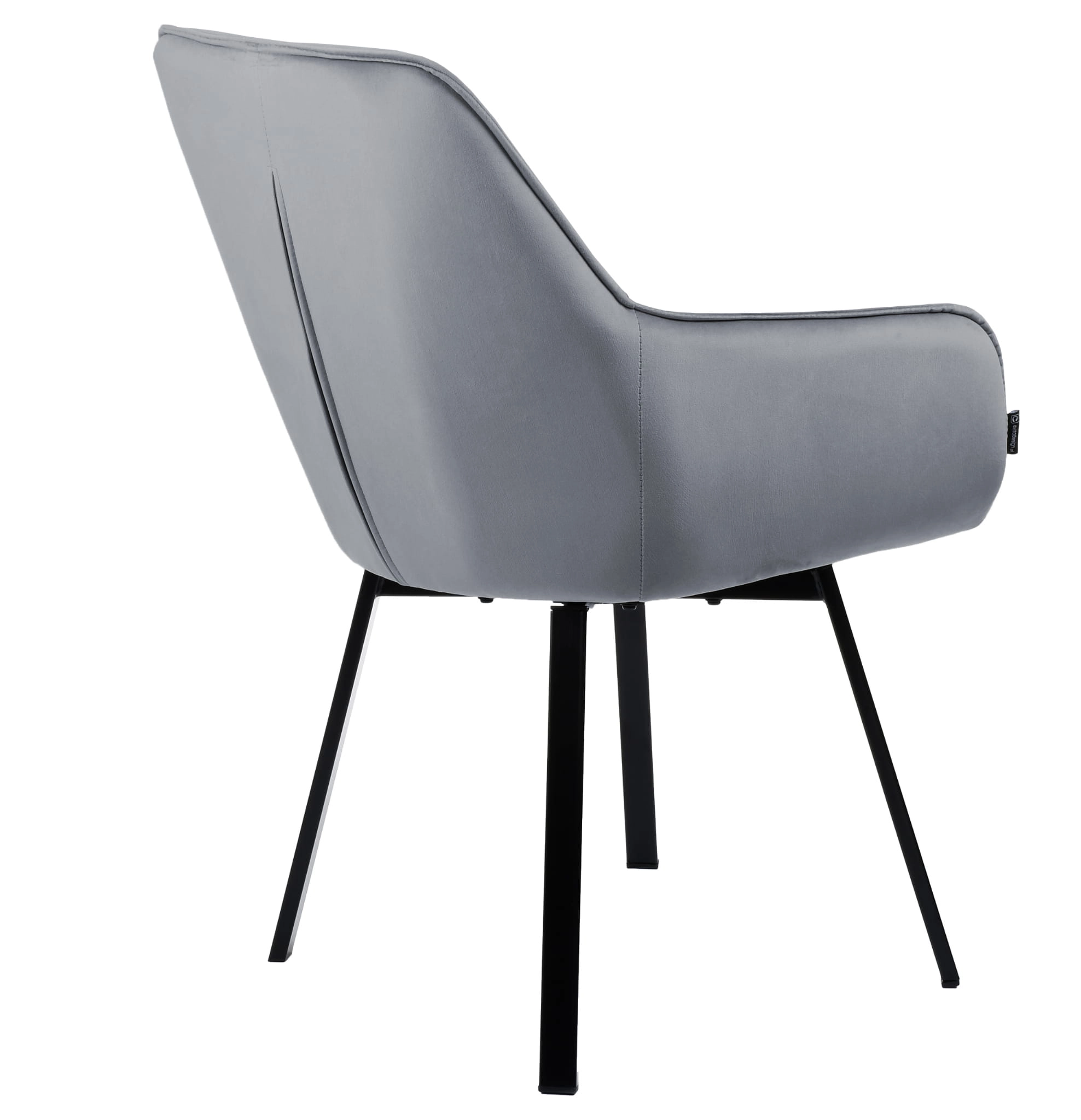 Krzesło tapicerowane TOGO w kolorze szarym to propozycja dla osób, które cenią sobie subtelne odcienie, nowoczesny design i wysoką jakość wykonania. Tapicerka z miękkiego weluru nie tylko prezentuje się elegancko, ale także gwarantuje komfort siedzenia na co dzień. Funkcja obrotu 360° sprawia, że krzesło jest niezwykle praktyczne – idealne do pracy przy biurku, relaksu w salonie czy przy toaletce.