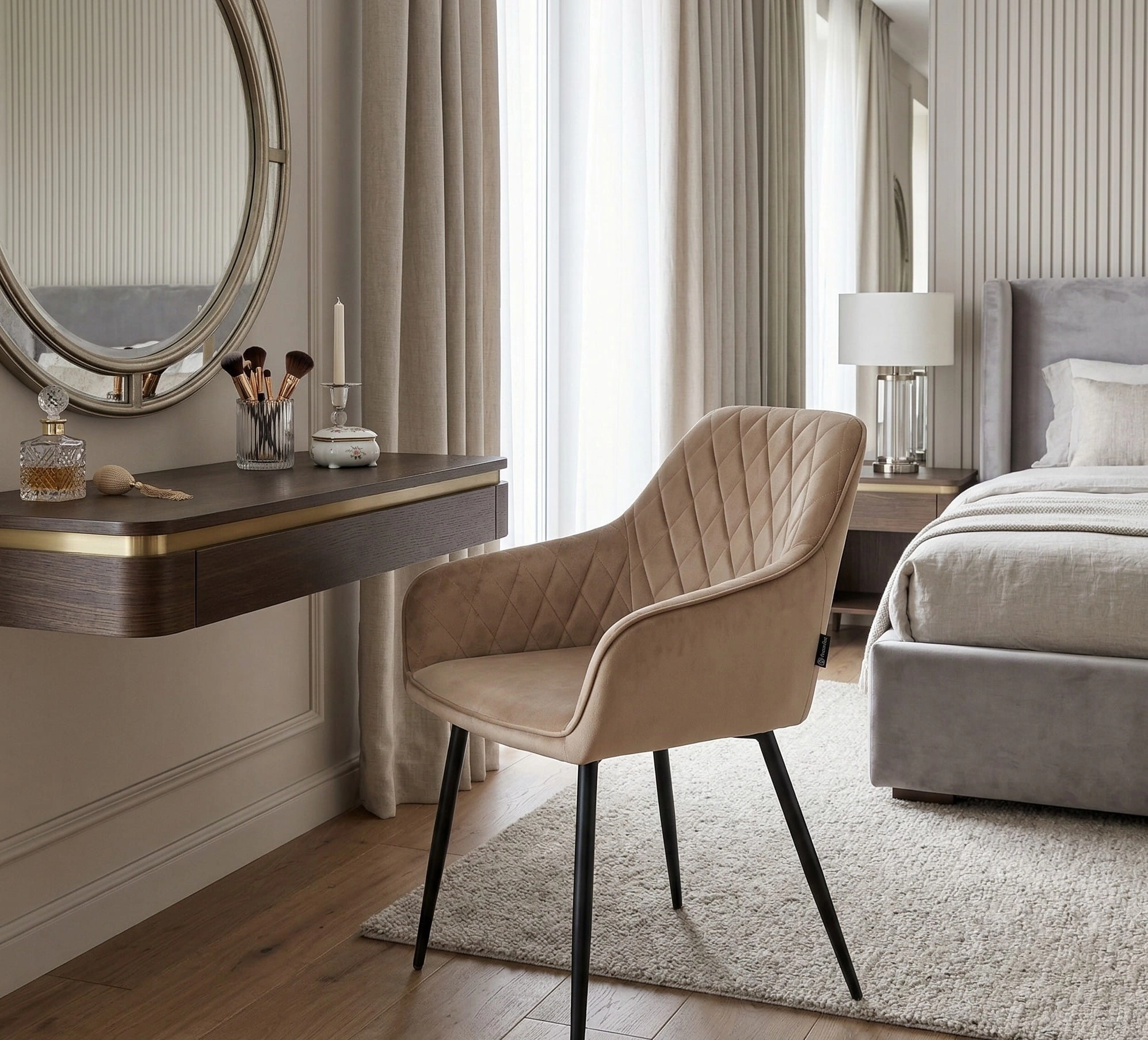 ✨ Krzesło tapicerowane RELLO beżowe welurowe z podłokietnikami – styl, komfort i funkcjonalność w nowoczesnej formie!