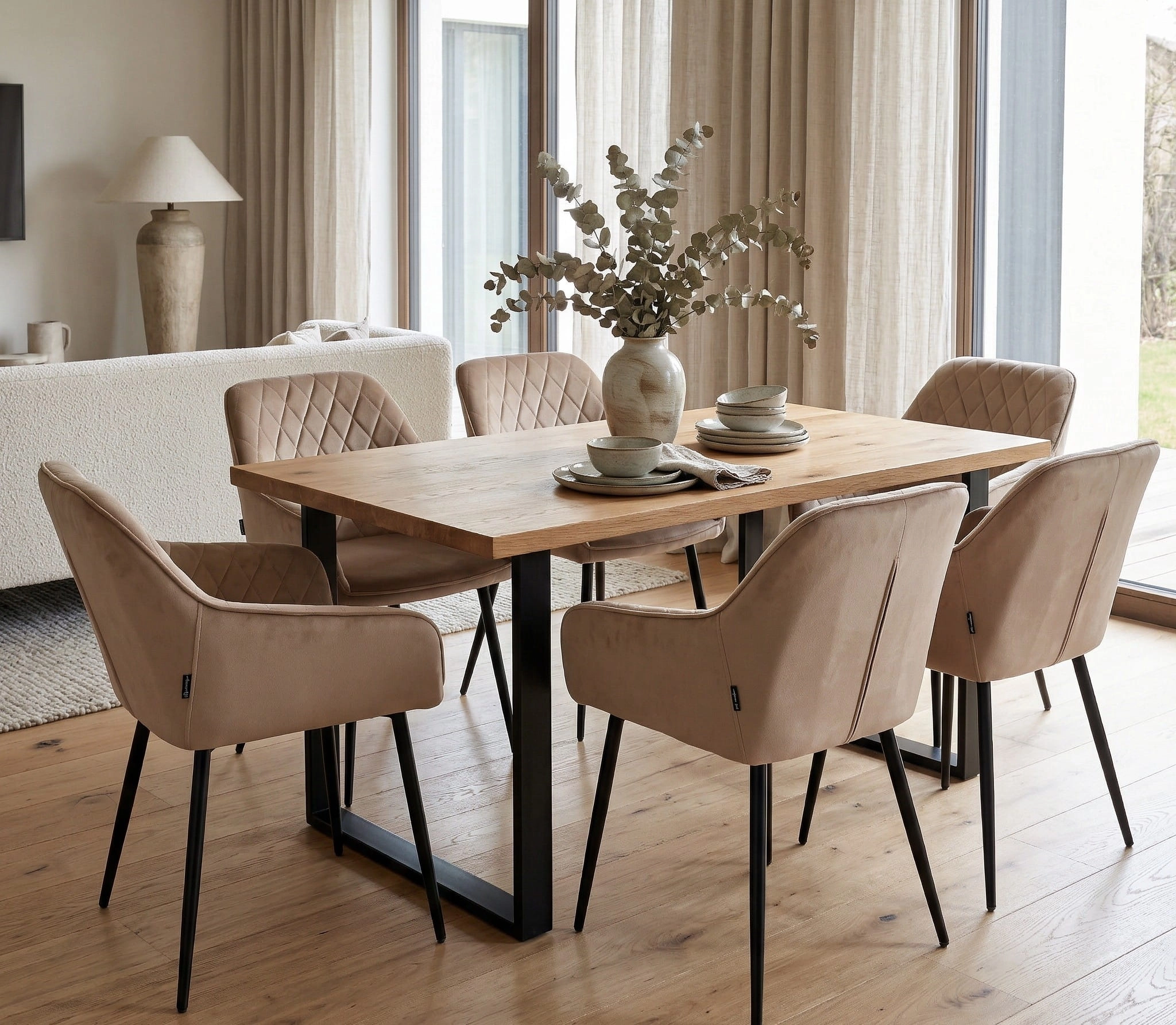 Beżowy kolor tapicerki to uniwersalna baza, która odnajdzie się zarówno we wnętrzach nowoczesnych, jak i skandynawskich czy boho. Świetnie współgra z drewnem, czernią, złotem oraz jasnymi dodatkami.