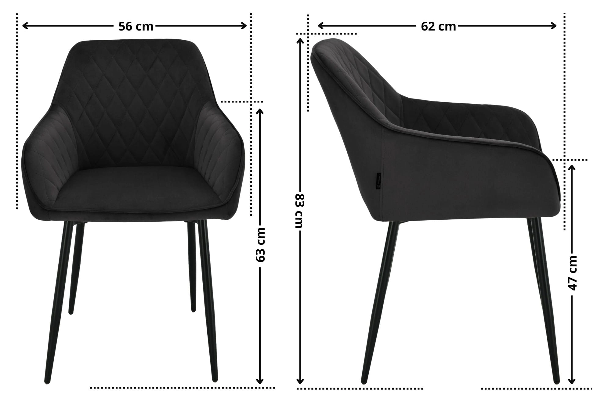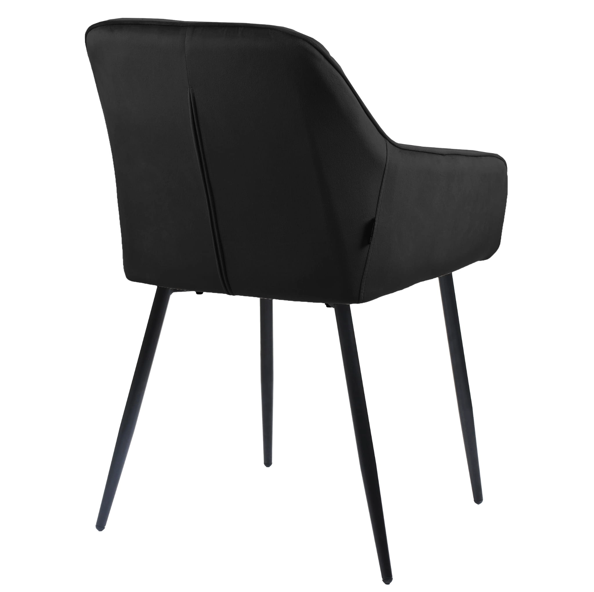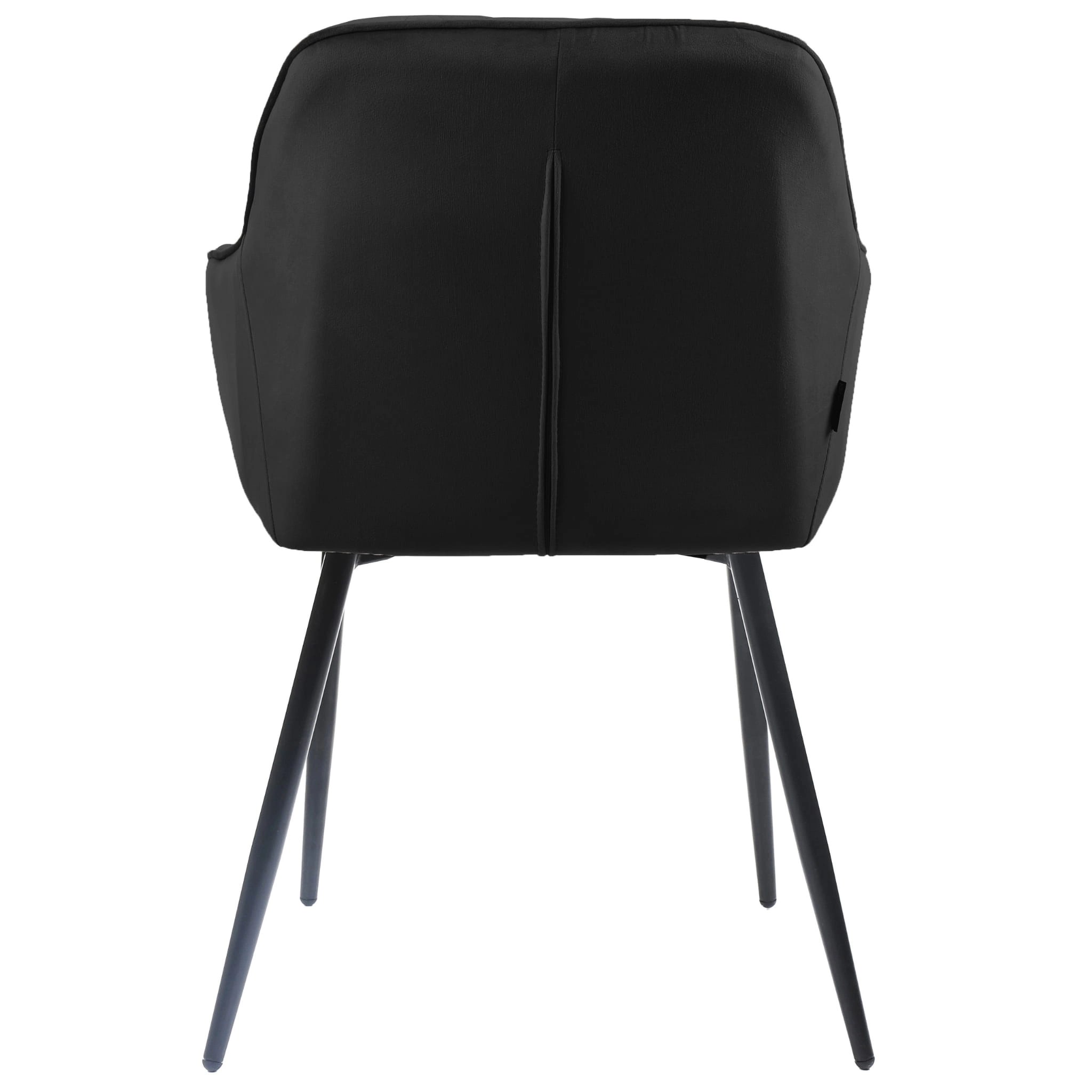 Krzesło tapicerowane RELLO łączy welur o miękkim chwycie z metalowym stelażem i smukłymi nogami. To nowoczesne krzesło do jadalni i salonu w eleganckiej czerni, które zachwyca pikowanym oparciem i komfortem siedzenia przy stole.