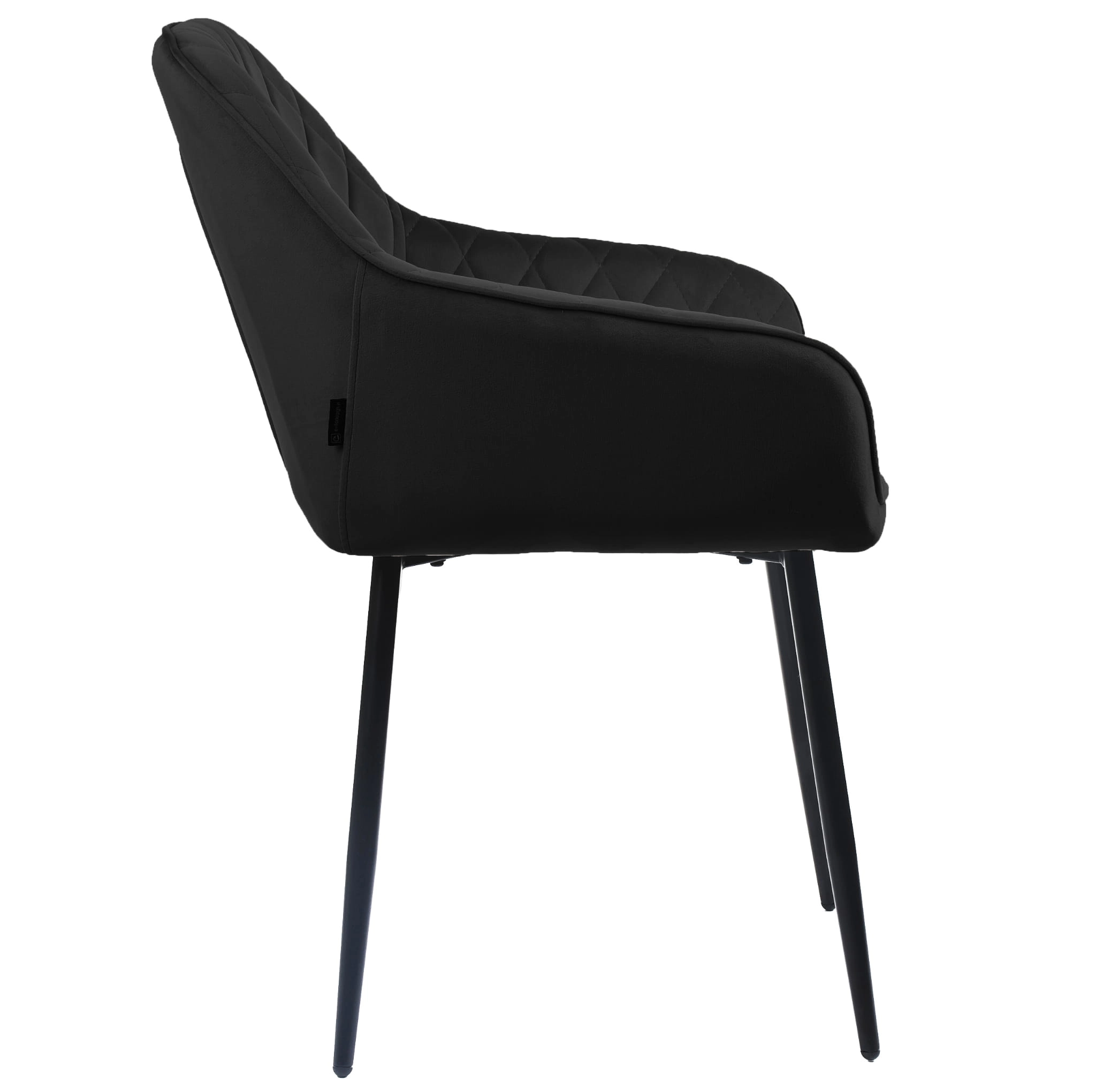 ✨ Krzesło tapicerowane RELLO – czarne welurowe krzesło z podłokietnikami na metalowych nogach do jadalni i salonu