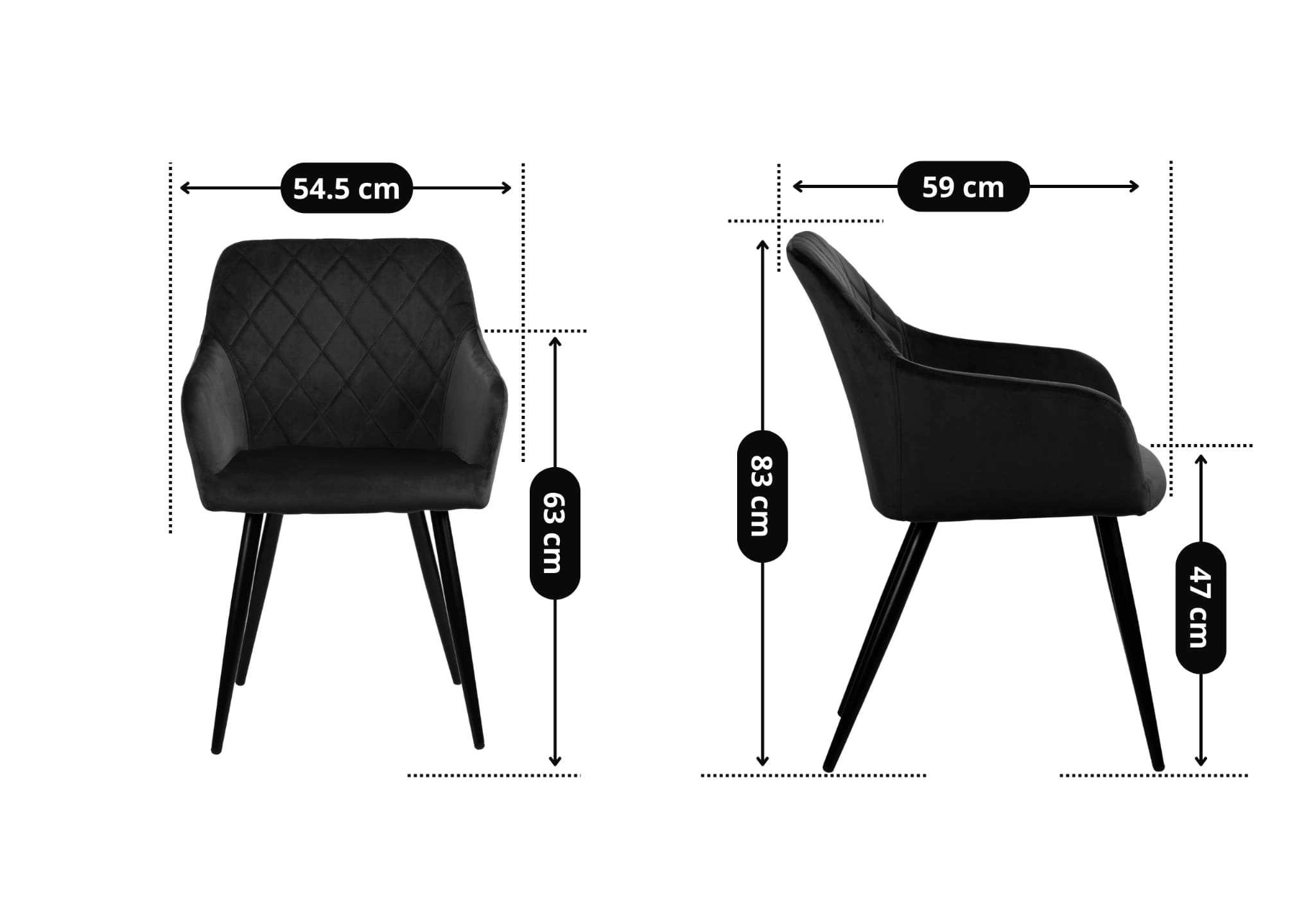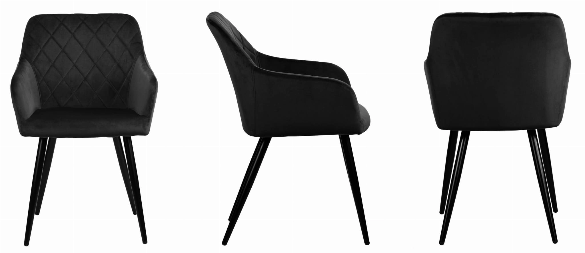 Krzesło tapicerowane pikowane z podłokietnikami MILTON velvet czarne G-77