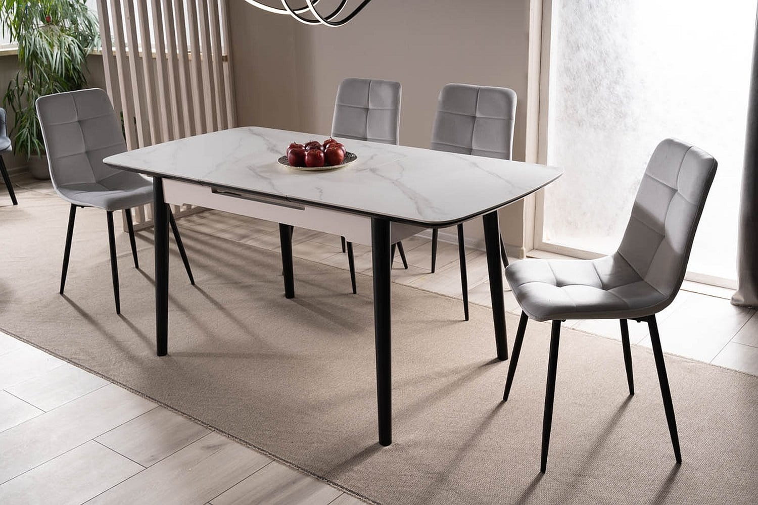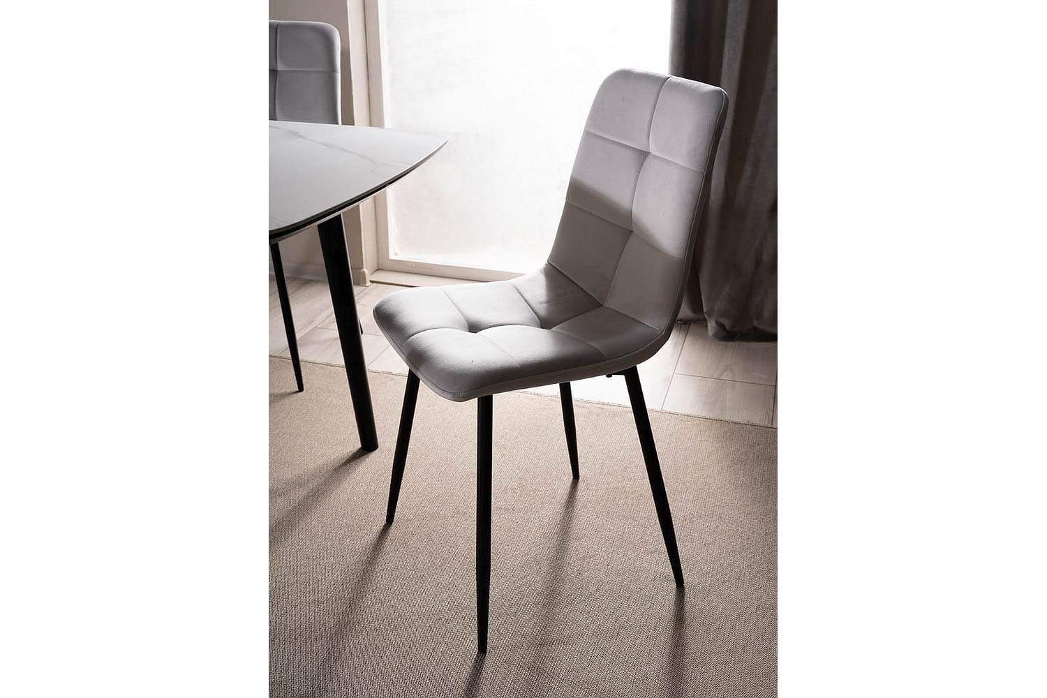Krzesło tapicerowane IVO szare to połączenie nowoczesnego designu, miękkiego w dotyku velvetu i solidnej konstrukcji z metalu. Wyprofilowane oparcie oraz komfortowe siedzisko gwarantują przyjemność użytkowania nawet podczas wielogodzinnych spotkań przy stole czy pracy przy biurku. Ten model doskonale sprawdzi się w modnych aranżacjach, wprowadzając nutę elegancji i lekkości do Twojego wnętrza. Szary welur Bluvel 14 w połączeniu z czarnym stelażem tworzy ponadczasowy duet, który harmonijnie komponuje się zarówno w salonie, jak i w jadalni. Jeśli szukasz nowoczesnego krzesła welurowego, które zachwyci jakością i stylem — IVO będzie strzałem w dziesiątkę.
