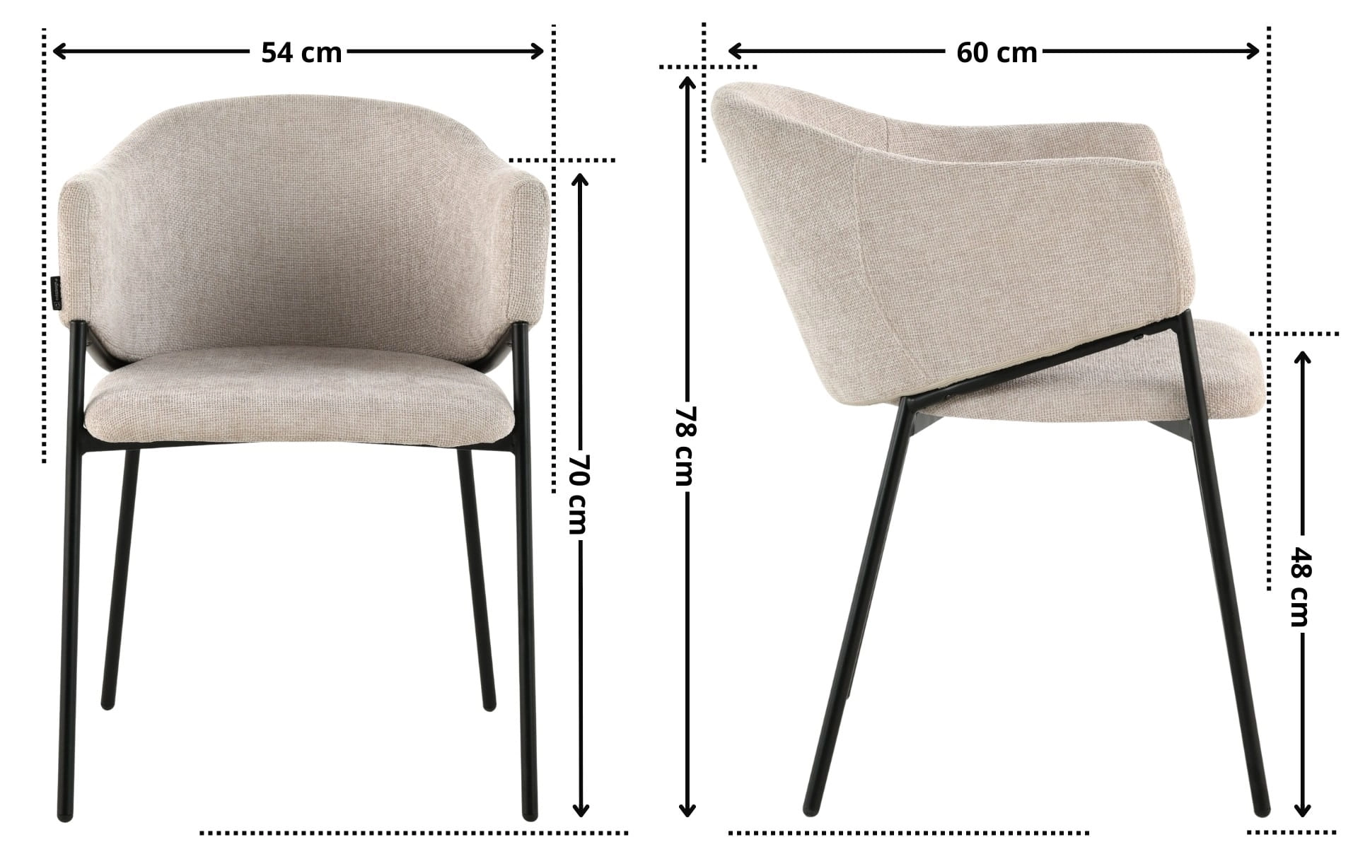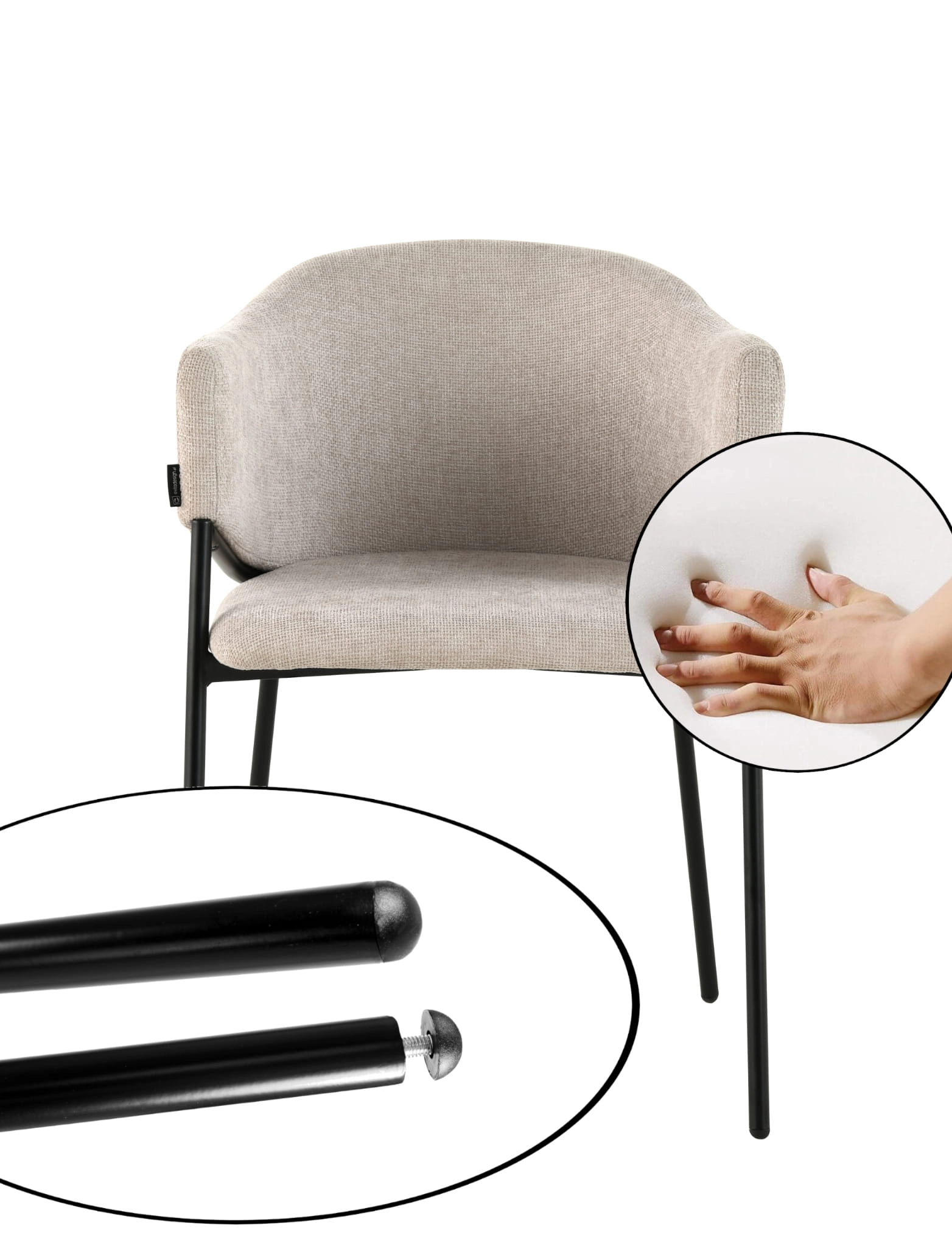 Krzesło tapicerowane ARGOS to połączenie wyjątkowej wygody, eleganckiego designu i solidnej konstrukcji. Dzięki kubełkowemu oparciu, beżowej tapicerce i metalowemu stelażowi, wygodne krzesło z podłokietnikami idealnie sprawdzi się w każdym nowoczesnym wnętrzu. Szukasz krzesła do jadalni loft, do biura, a może eleganckiego siedziska do toaletki? ARGOS dopasuje się do Twojej przestrzeni z klasą!
