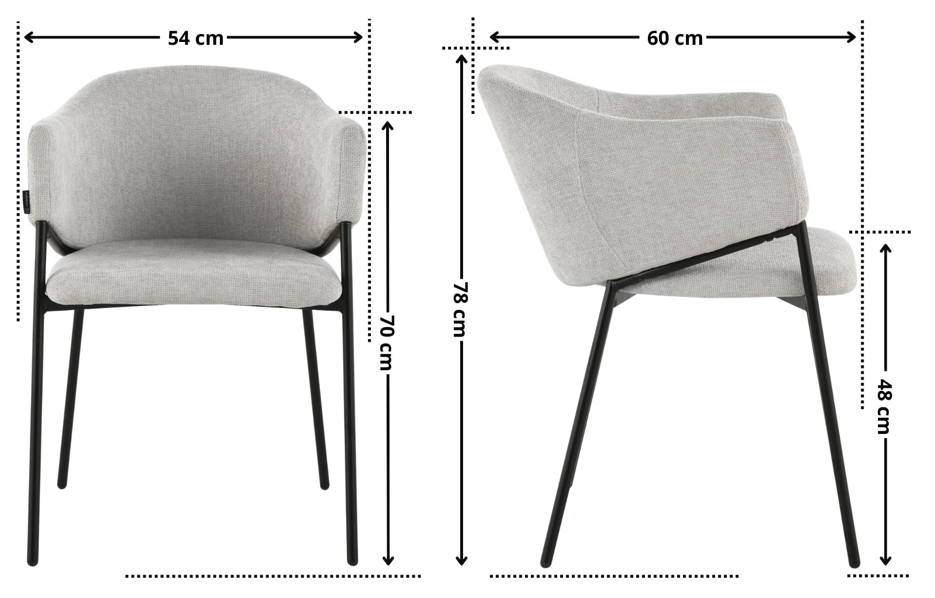 Krzesło tapicerowane ARGOS to połączenie wyjątkowej wygody, eleganckiego designu i solidnej konstrukcji. Dzięki kubełkowemu oparciu, szarej tapicerce i metalowemu stelażowi, wygodne krzesło z podłokietnikami idealnie sprawdzi się w każdym nowoczesnym wnętrzu. Szukasz krzesła do jadalni loft, do biura, a może eleganckiego siedziska do toaletki? ARGOS dopasuje się do Twojej przestrzeni z klasą!