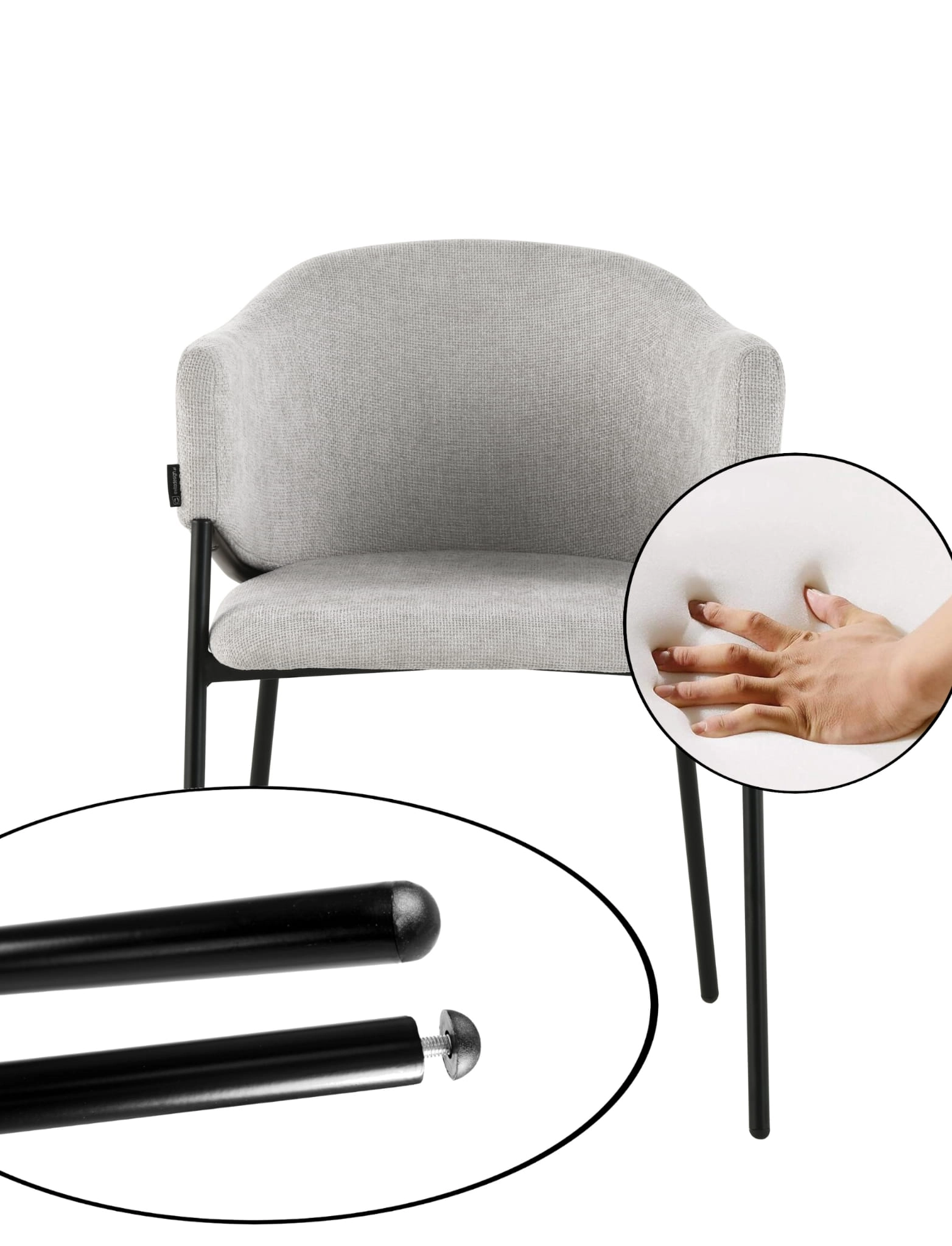 Tapicerka wykonana z miękkiej tkaniny zapewnia przyjemny kontakt ze skórą, a ergonomiczny kształt kubełkowego oparcia pozwala cieszyć się wygodą przez wiele godzin. Czarne metalowe nogi dodają konstrukcji stabilności i industrialnego charakteru, co czyni ARGOS idealnym wyborem także dla wnętrz loftowych.