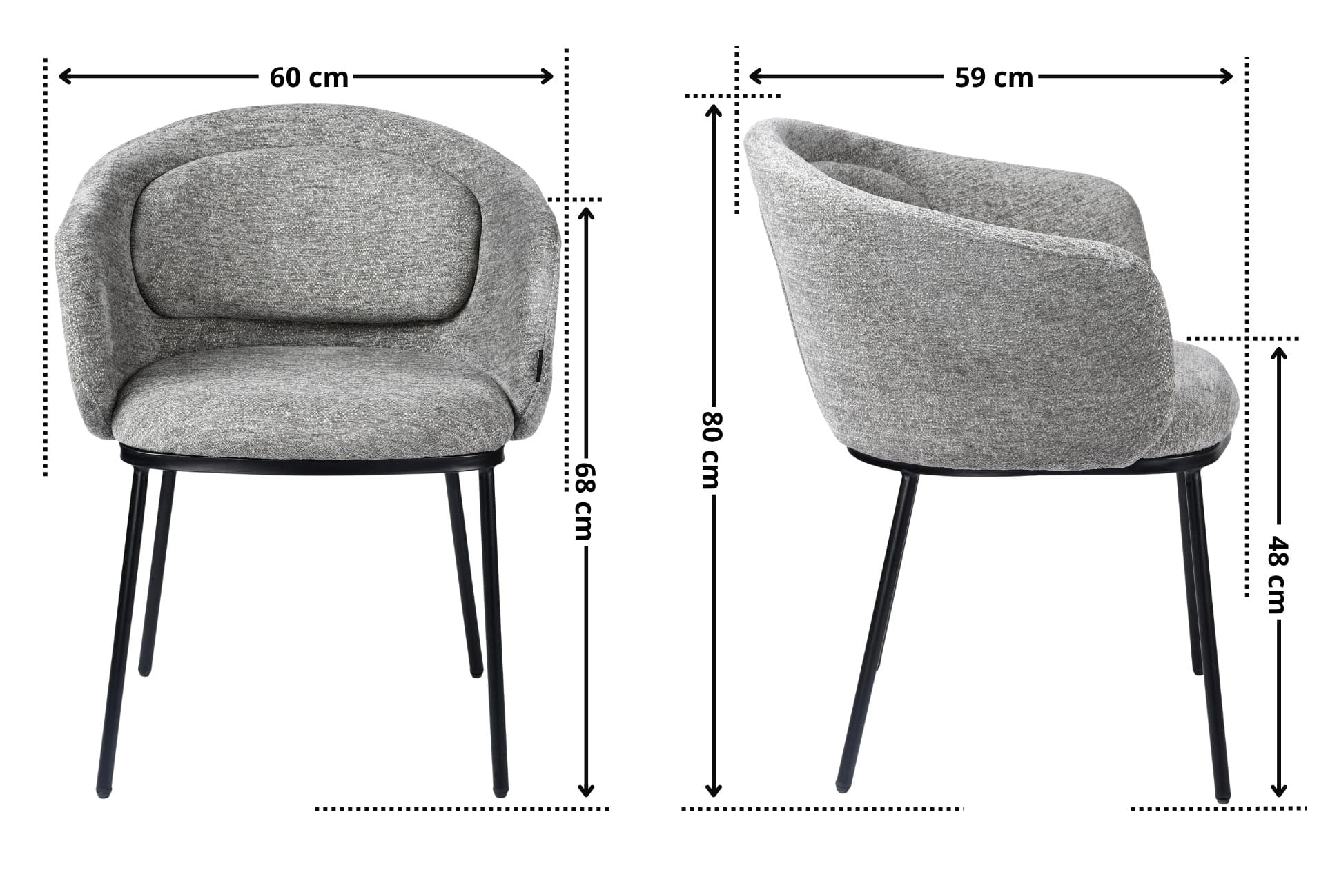 - Głębokość siedziska: 48 cm