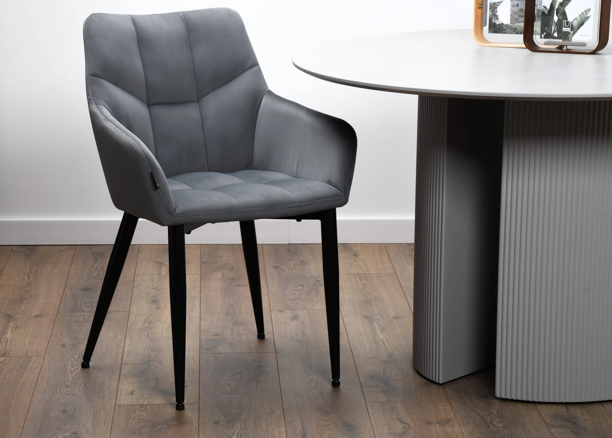 Krzesło tapicerowane z podłokietnikami EMIR velvet ciemnoszare G-12