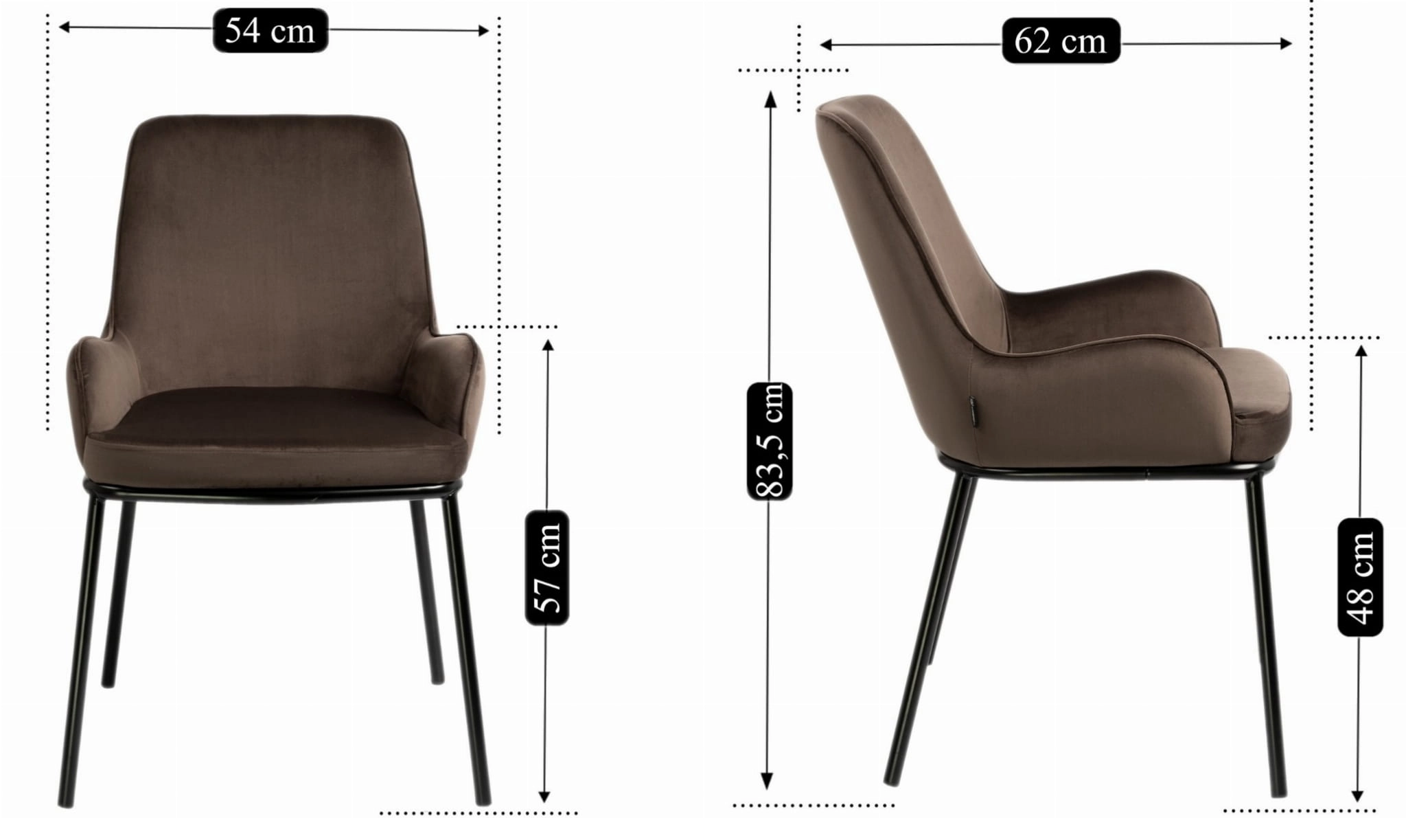 Krzesło tapicerowane z podłokietnikami SANTO velvet brąz G-76