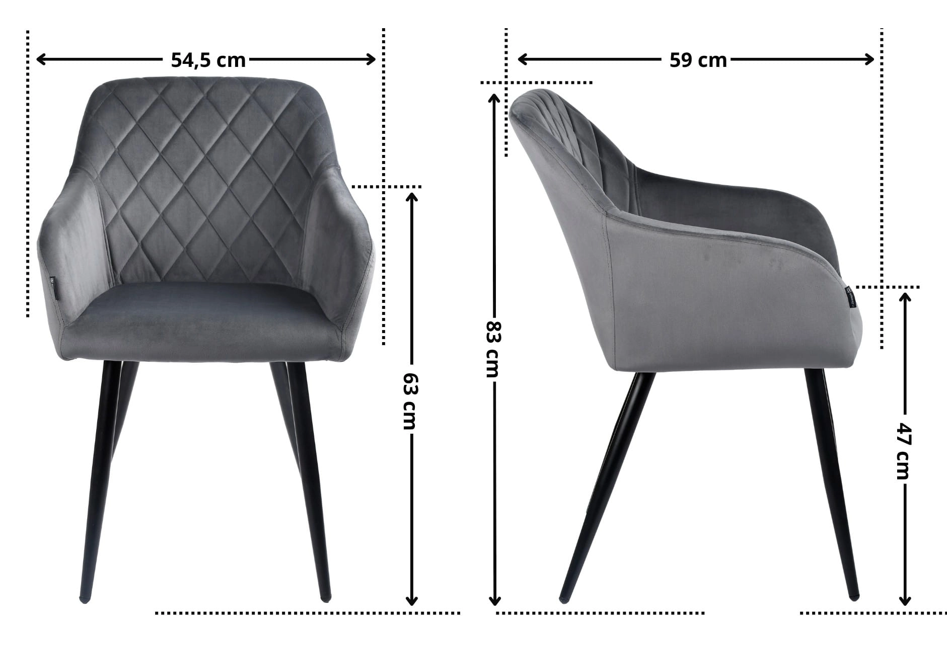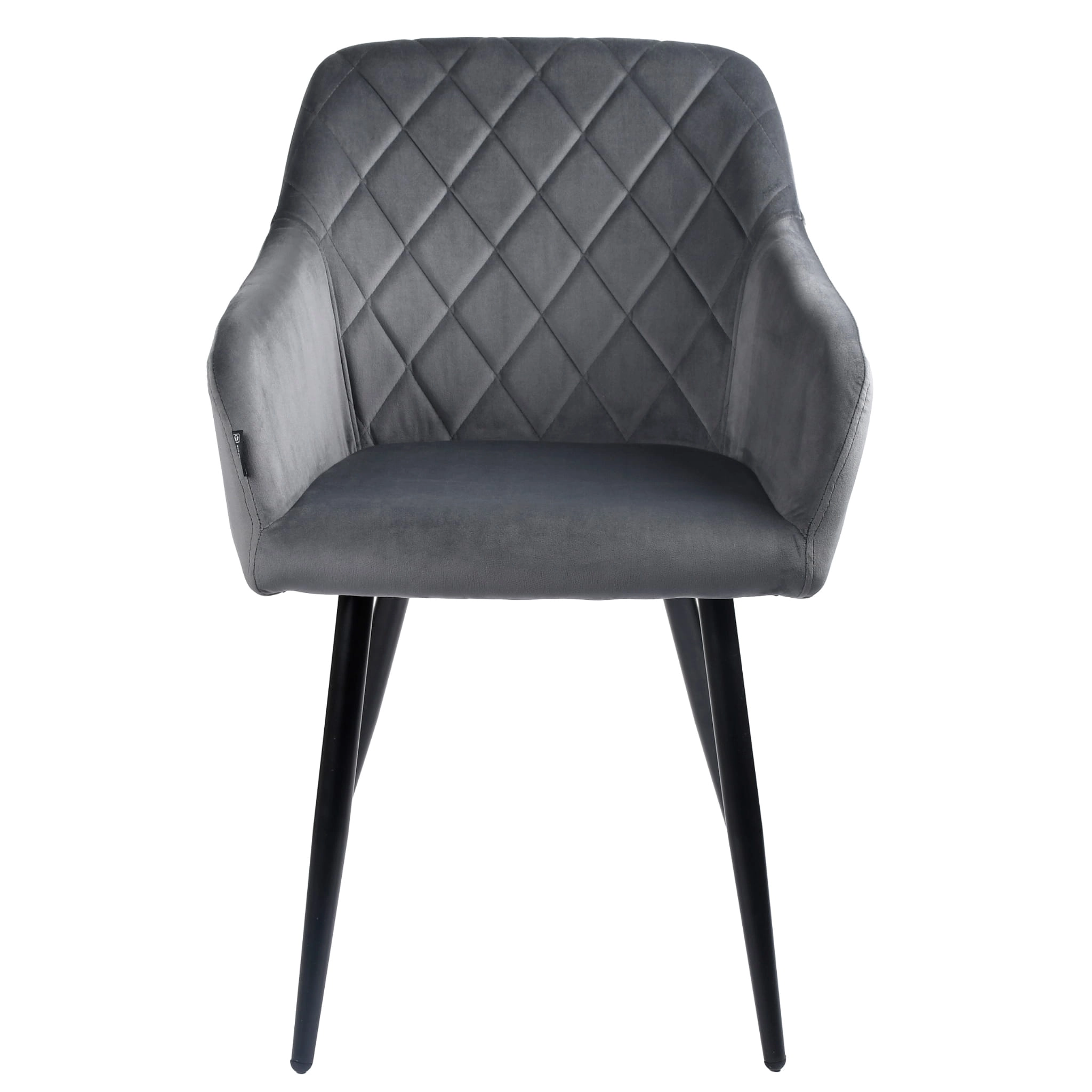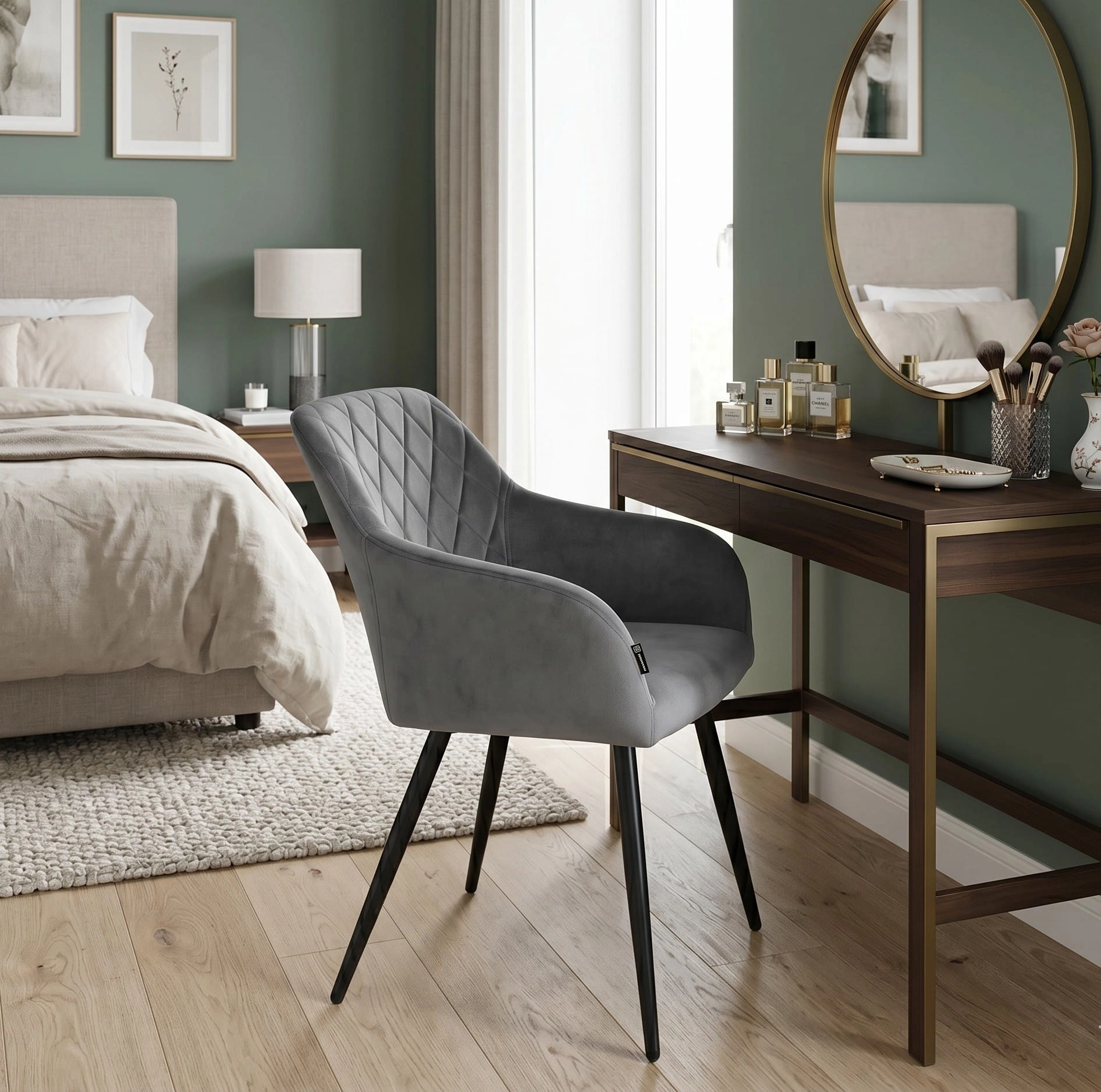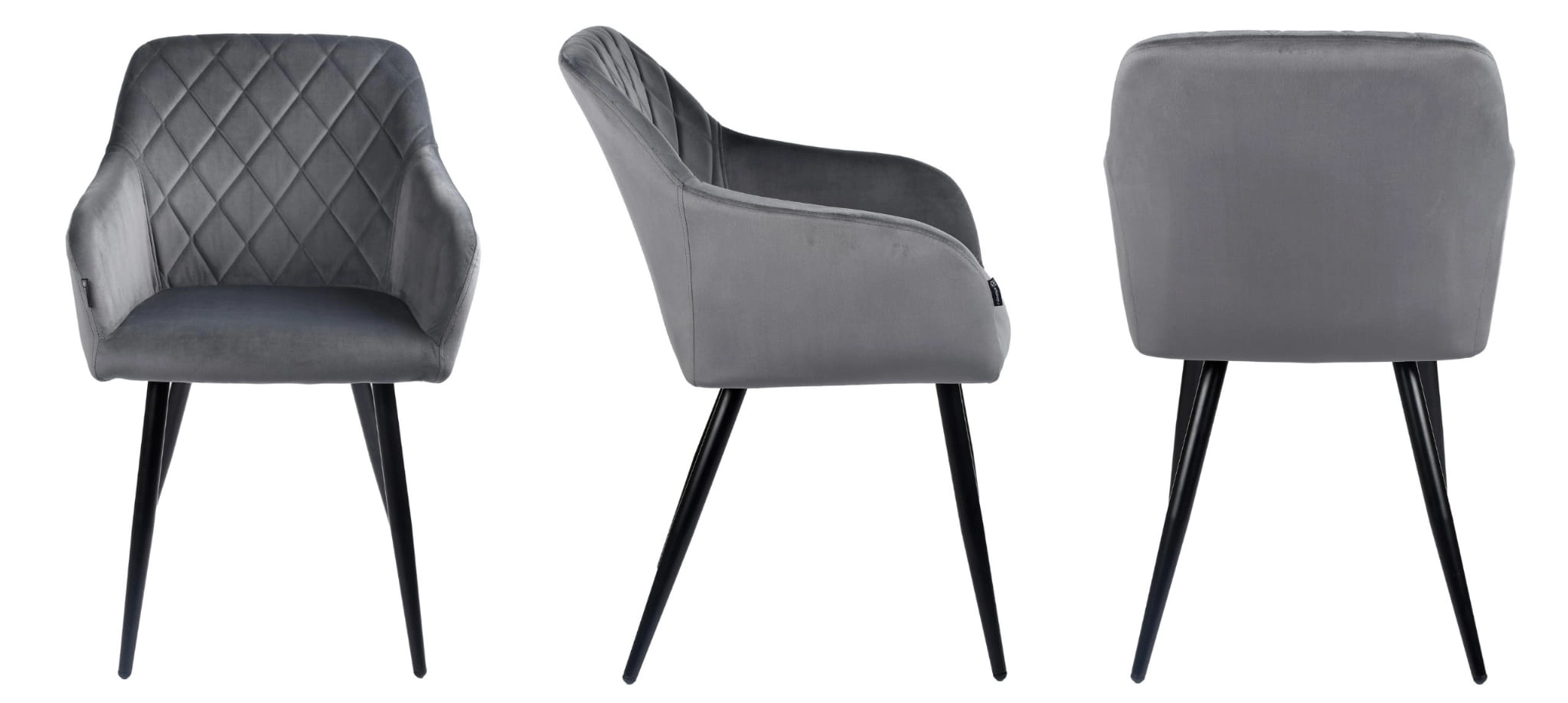 Krzesło tapicerowane z podlokietnikami pikowane MILTON velvet szary G-12