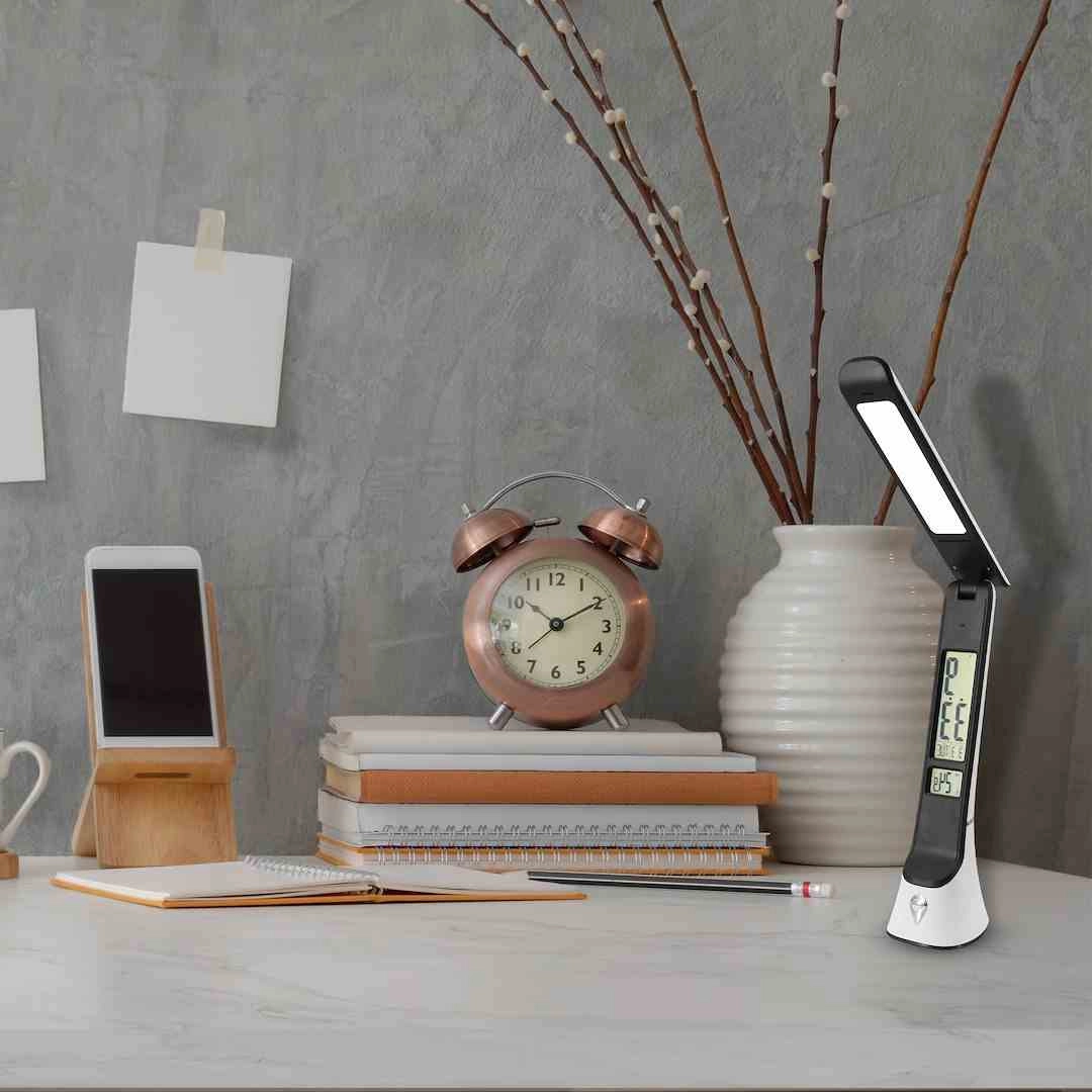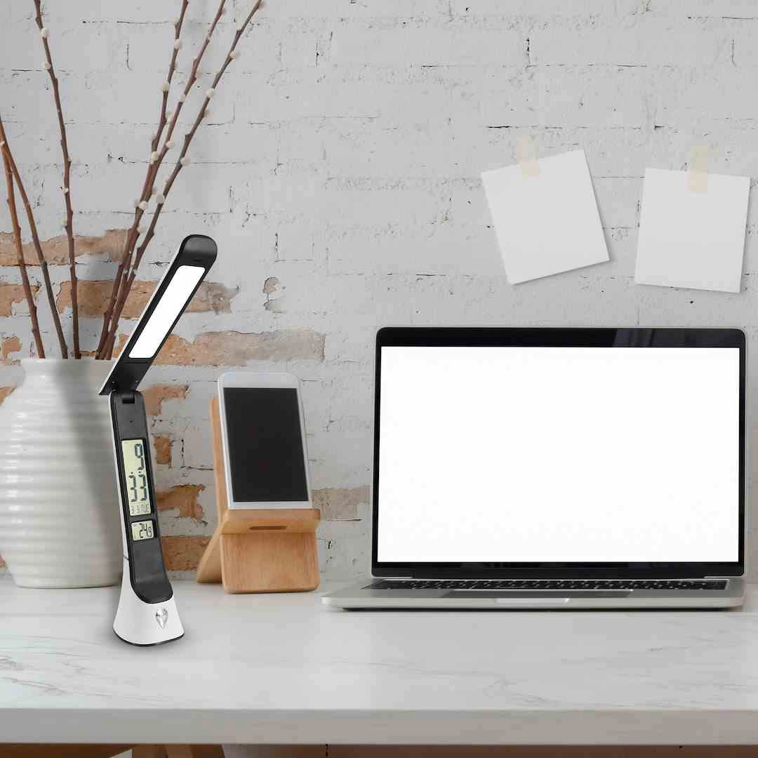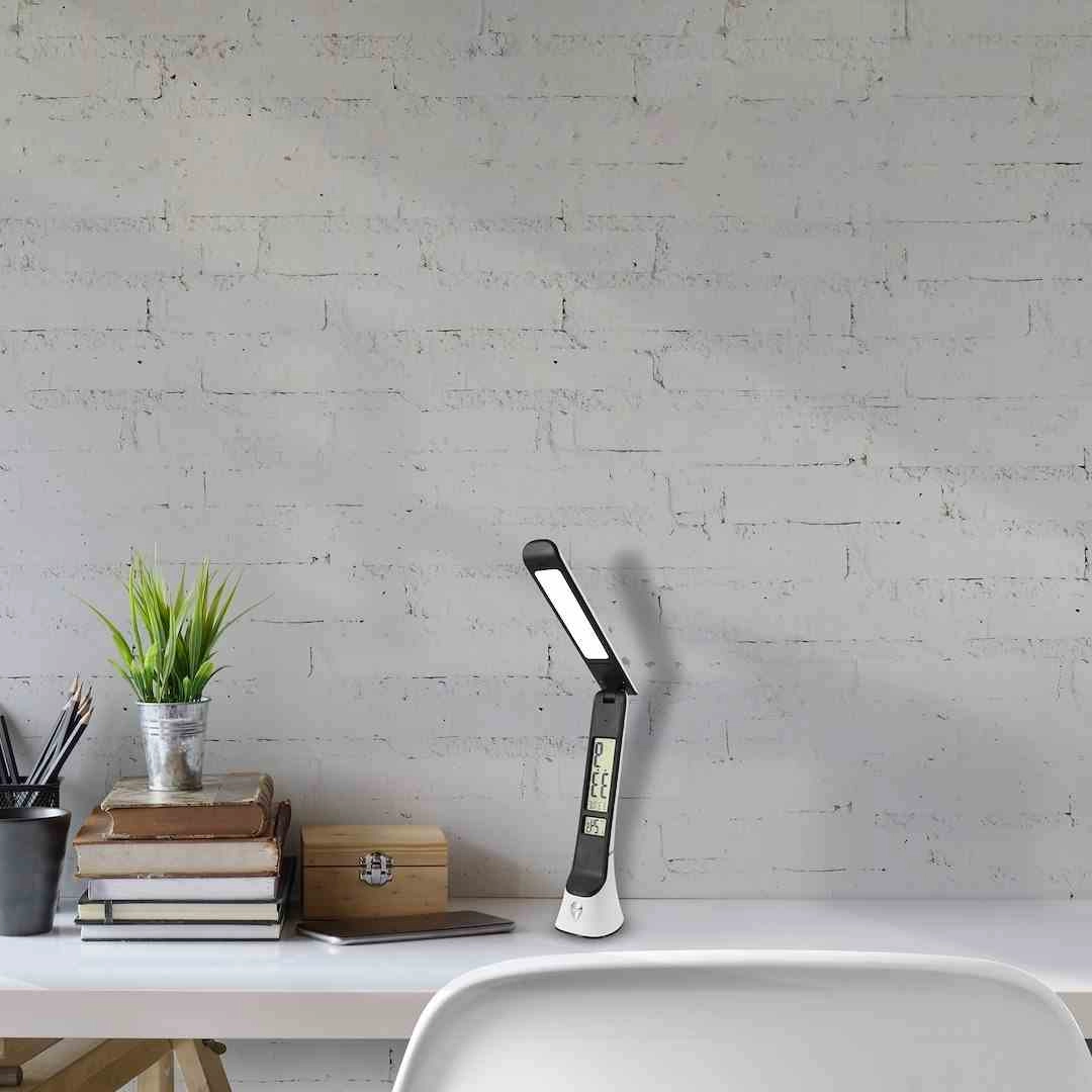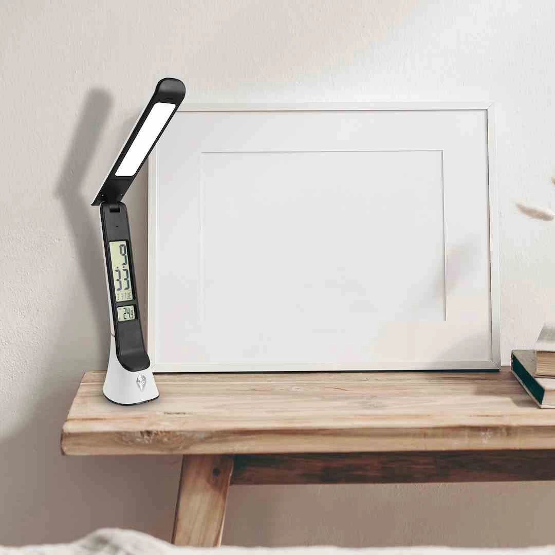 Ta wielofunkcyjna lampka stolikowa to idealne rozwiązanie dla osób, które cenią organizację czasu i porządek w swojej przestrzeni roboczej. Dzięki zintegrowanym wyświetlaczom LCD, biała lampka na biurko staje się inteligentnym asystentem, dostarczającym informacji o godzinie i temperaturze, jednocześnie oferując regulację barwy do pory dnia dla maksymalnego komfortu Twoich oczu.