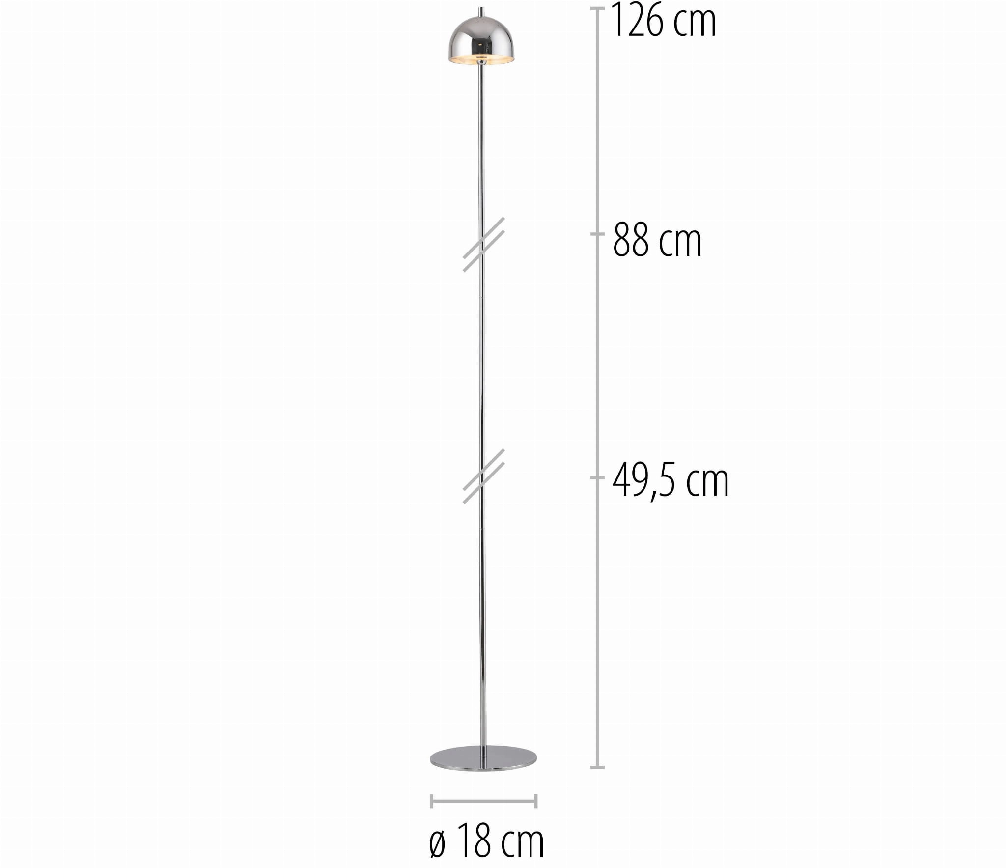 - Smukła konstrukcja 126 cm – chromowany słupek świetlny zajmuje minimalną ilość miejsca na podłodze, idealnie pasując do ciasnych narożników.