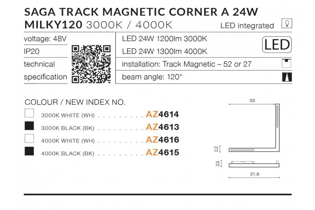 Lampa reflektor SAGA MAGNETIC 24W CORNER A 4000K czarna