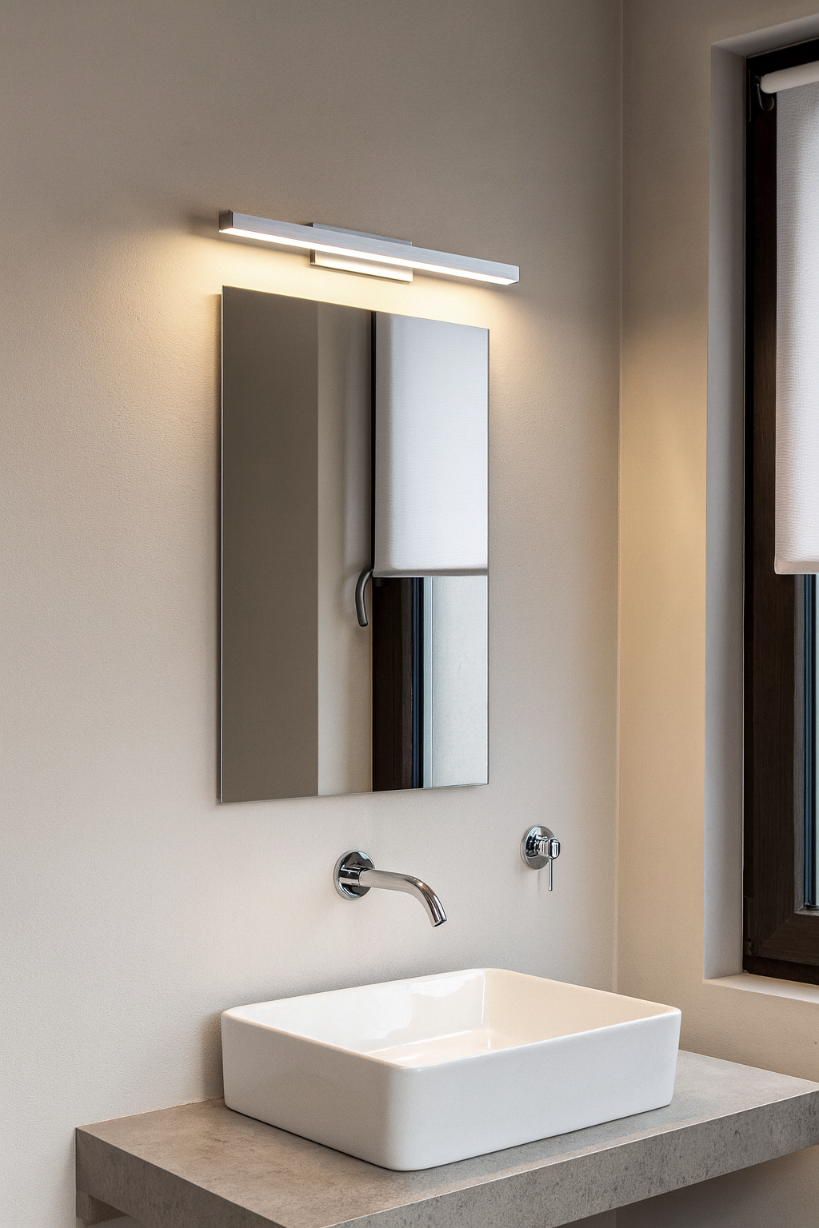 Ten kinkiet LED świetnie sprawdzi się także jako oświetlenie lustra w łazience lub toaletce, dodając wnętrzu nowoczesnego charakteru i subtelnego blasku. Dzięki kompaktowym wymiarom można go łatwo wkomponować w różne przestrzenie, nie zaburzając harmonii wystroju.