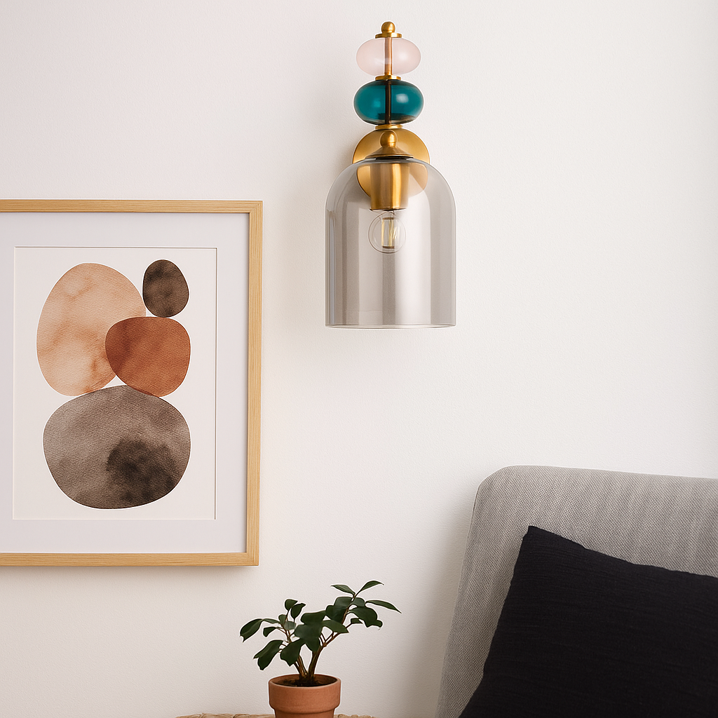 ✨Kinkiet BUSCO złoty z kolorowym szkłem – elegancka lampa ścienna do wnętrz glamour
