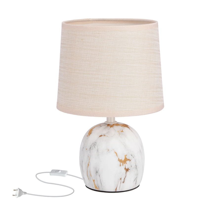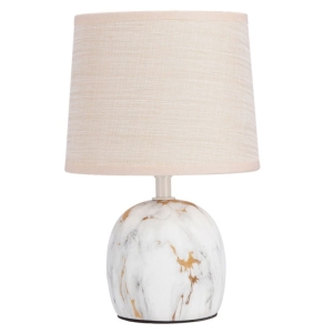 Odkryj lampę stołową ADELINA – połączenie subtelnego beżu z eleganckim motywem złotego marmuru, które doda wnętrzu wyjątkowego charakteru. To idealny wybór dla osób poszukujących stylowego, a zarazem funkcjonalnego oświetlenia, które stworzy przytulny klimat w każdym pomieszczeniu. Dzięki uniwersalnemu designowi i kompaktowym wymiarom, lampa świetnie sprawdzi się jako lampa nocna, oświetlenie dekoracyjne na komodzie czy stylowy akcent na biurku.